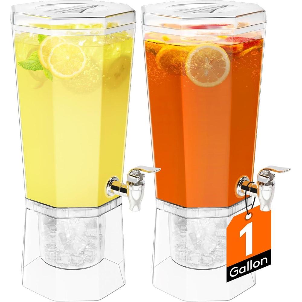 Dual 1-Gallon Capacity: With 1-gallon/4L volume for each container, it effortlessly handles drinks like lemonade, iced tea, juice, and cocktails, perfect for small gathering . Dimensions: 6.3'' x 6.3'' x 15.4'' (16 x 16 x 39 cm); NOTE: NOT for hot liquids
