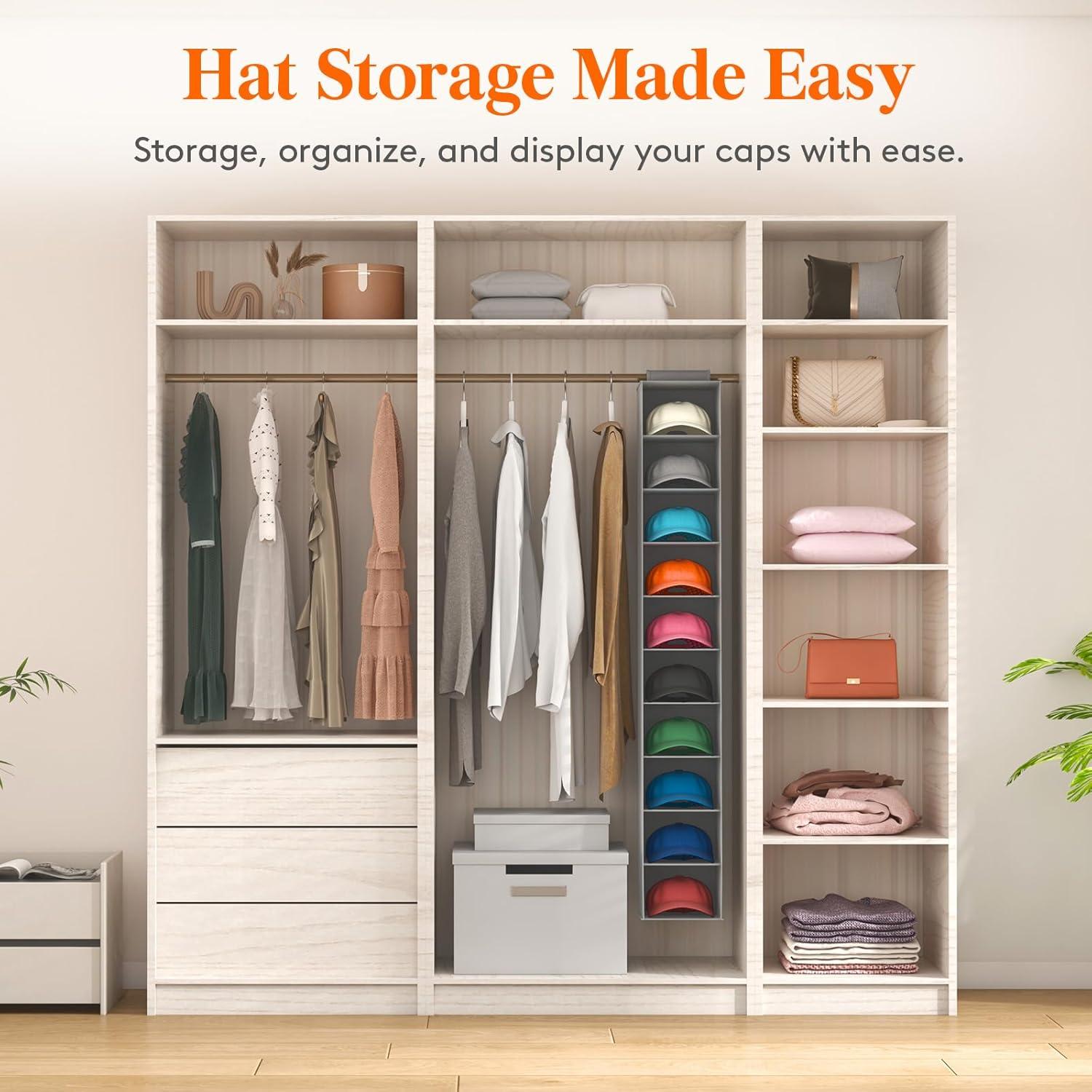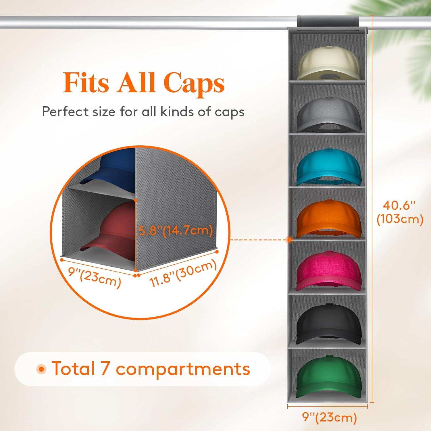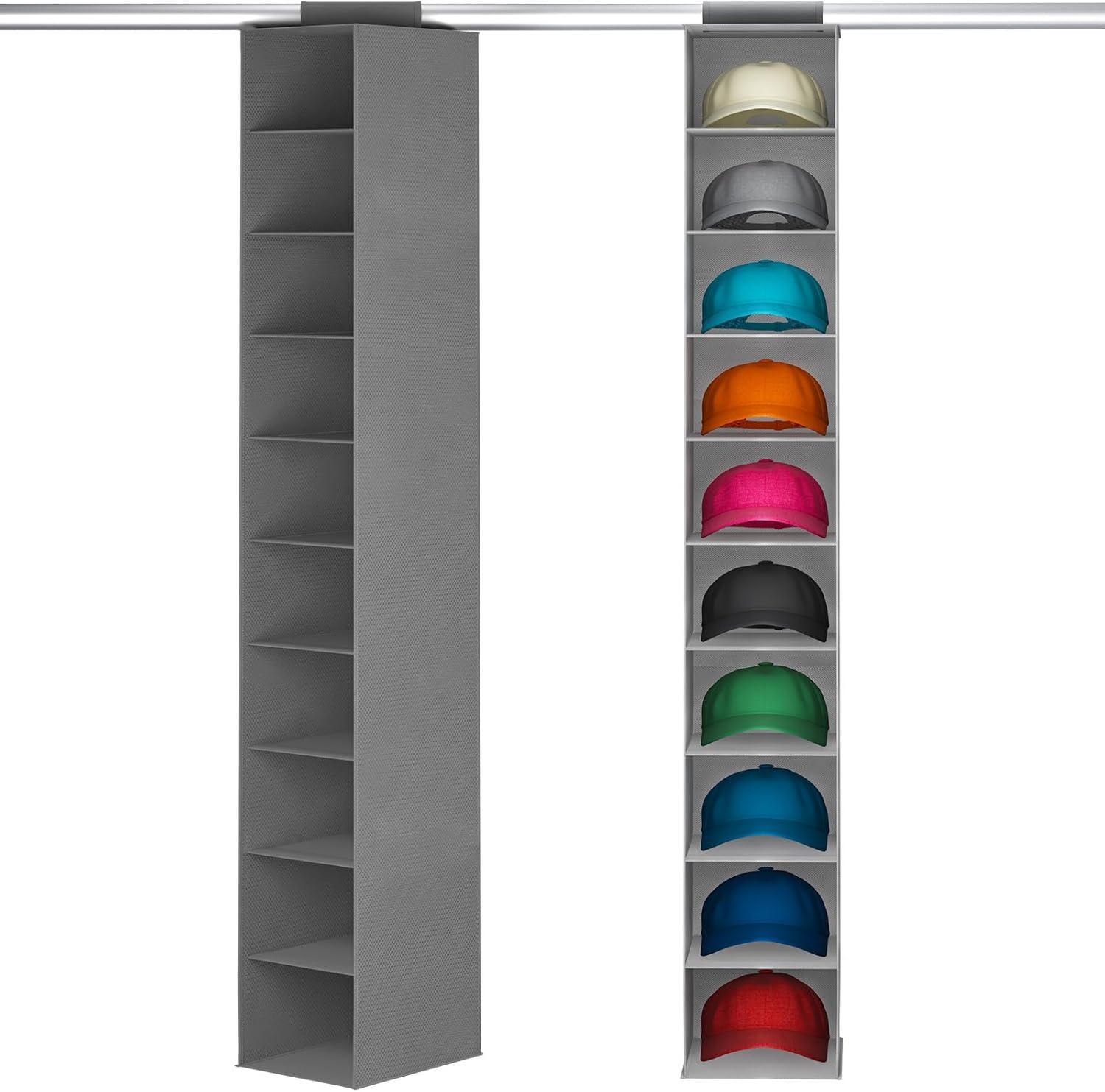 Large Capacity: Each hat organizer for baseball caps measures 9*11.8*57.9 inches (23*30*147cm) and has 10 perfectly sized compartments to accommodate your expanding hat collection. If you stack the hats in rows, each compartment can easily hold 3-4 hats.