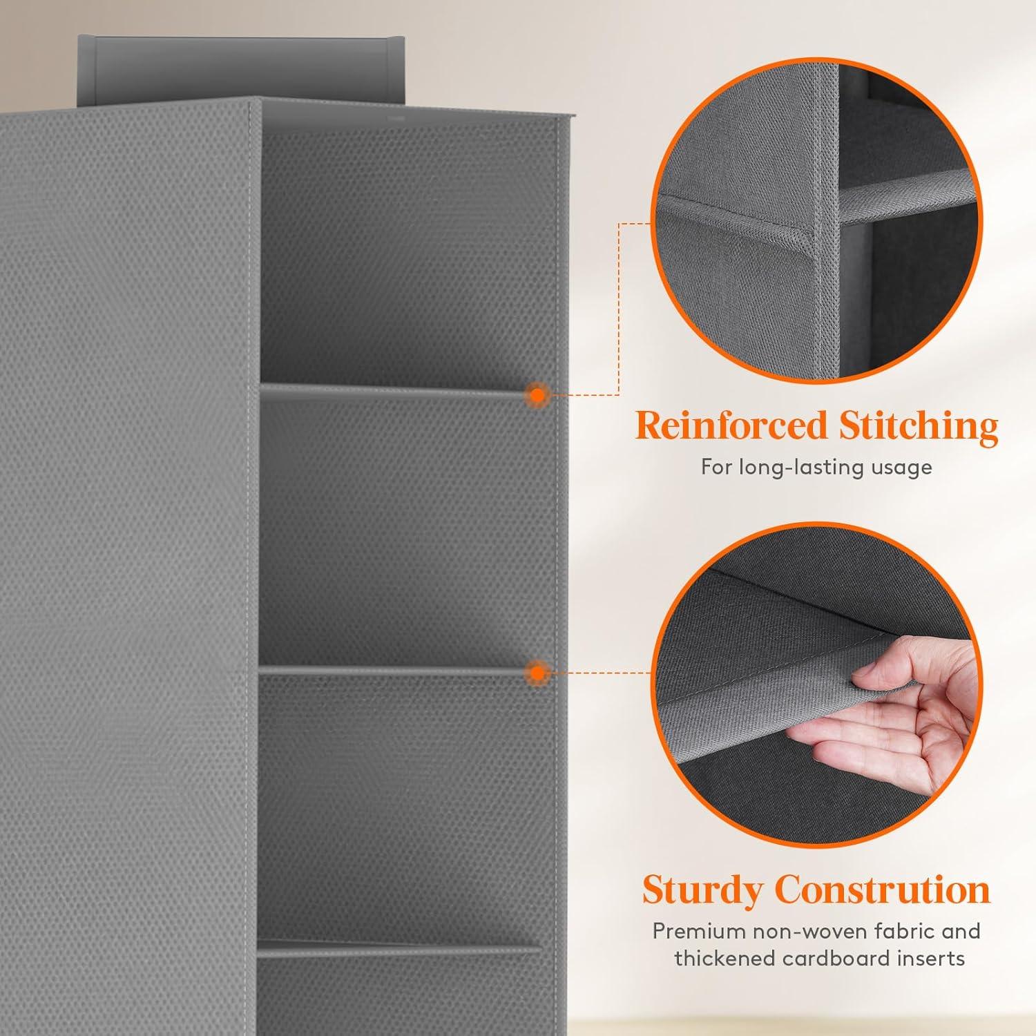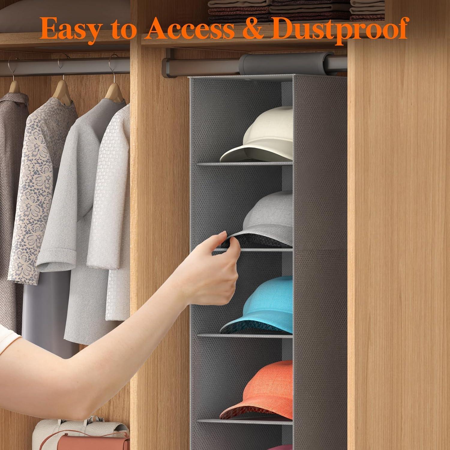 Easy to Use: The top fastening strap can be connected to any type of pole and can be easily moved along the pole.To assemble, simply unfold the hat storage bag, secure the top hook-and-loop fasteners around the closet rod, and it is ready to use in no time.