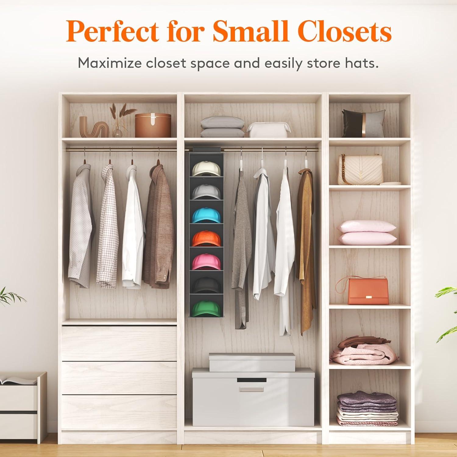 Efficiently Store Hats: The slim and open hat rack is designed for easy hat storage, display, and organization in a space-saving manner, making it convenient and accessible while optimizing closet space.