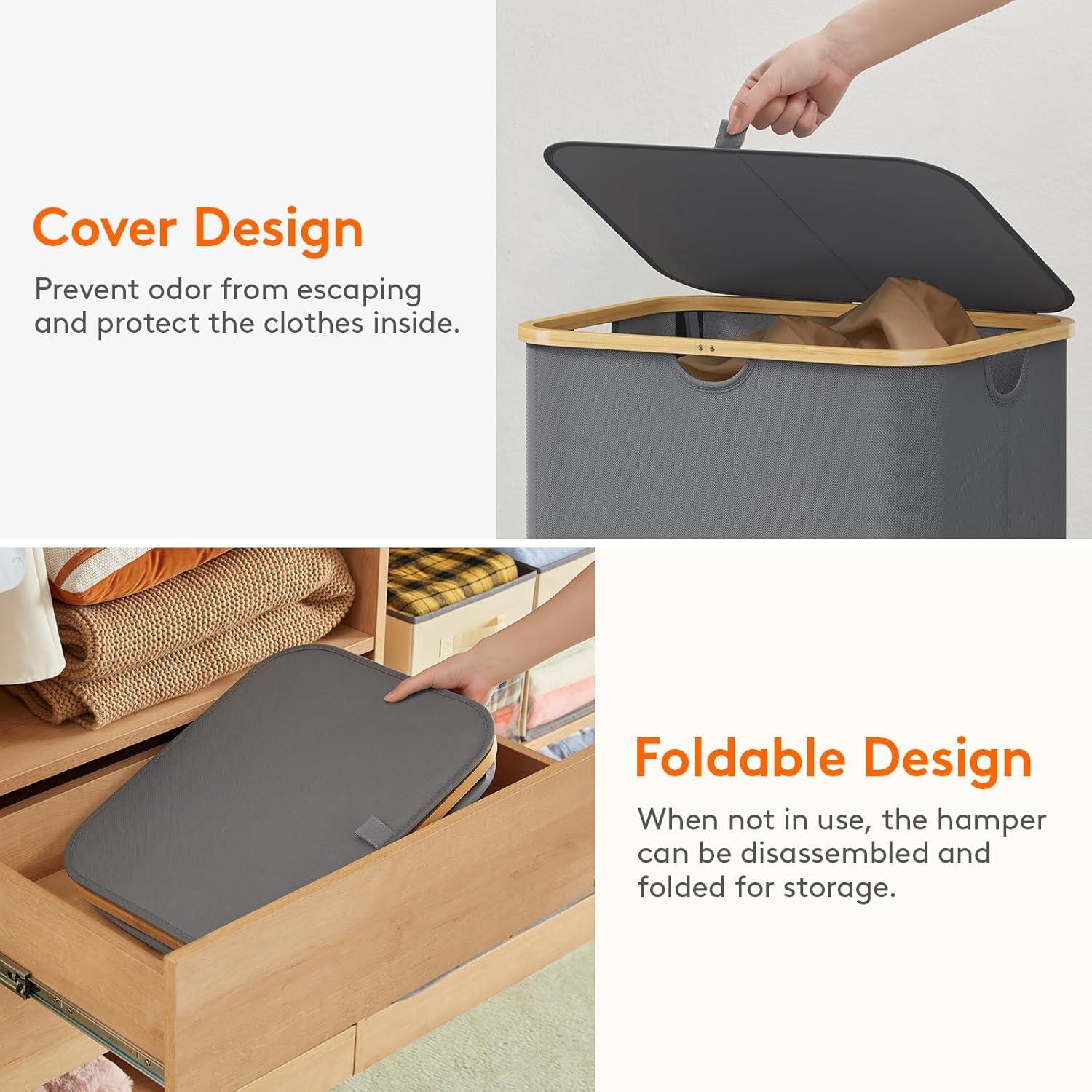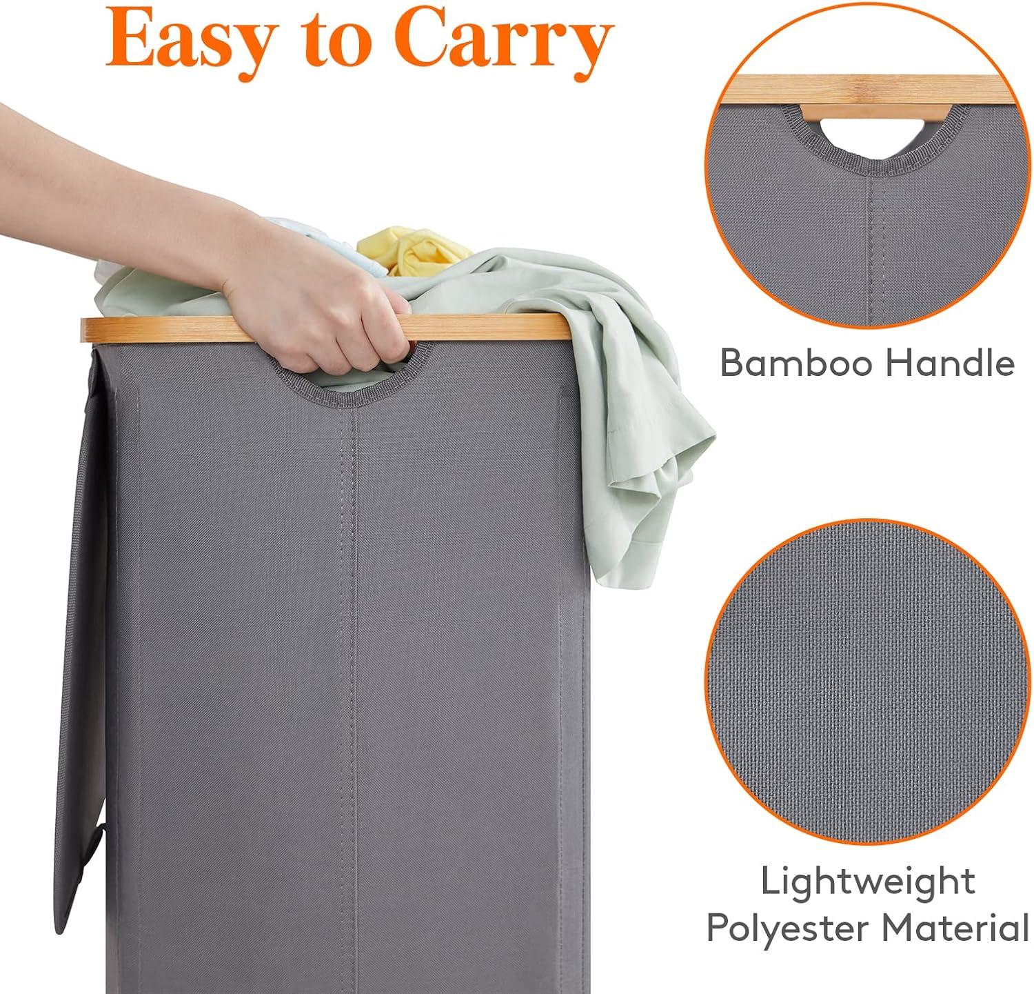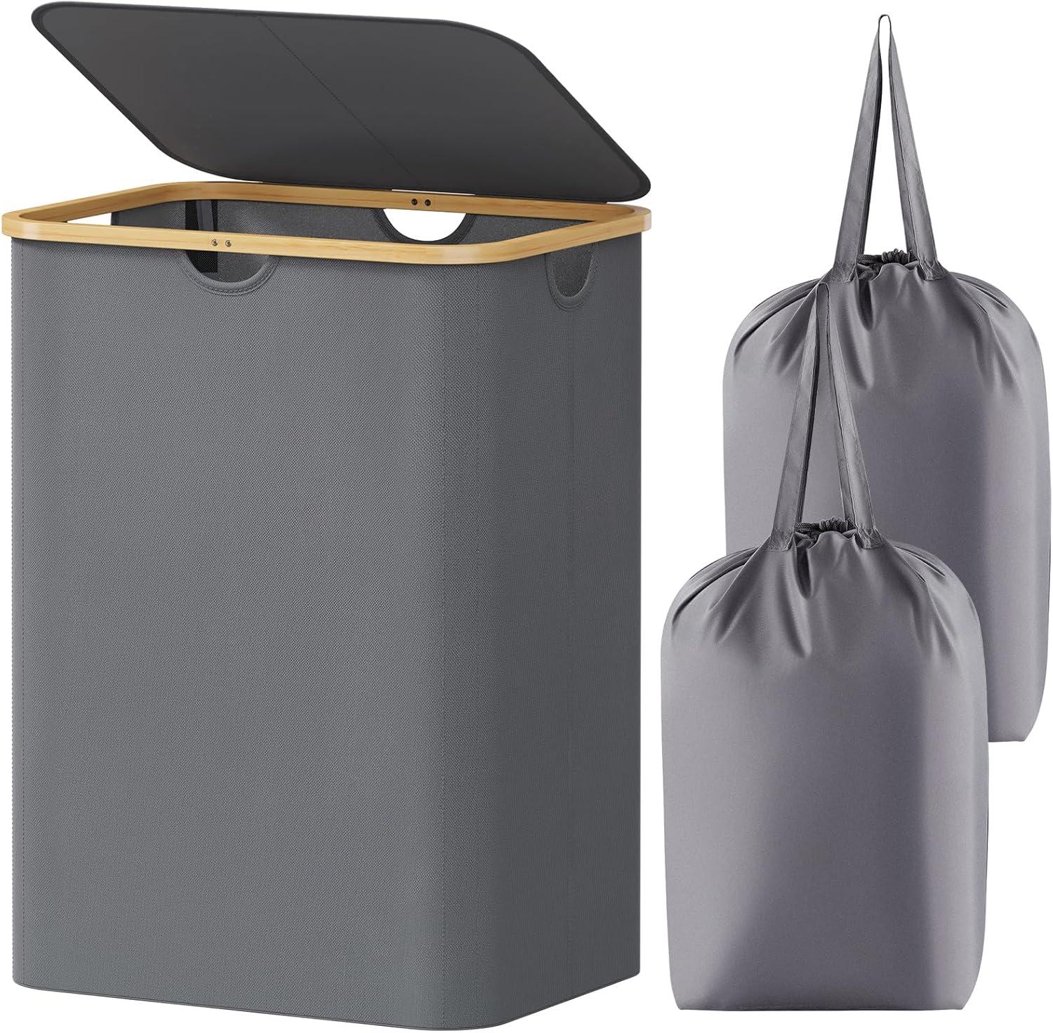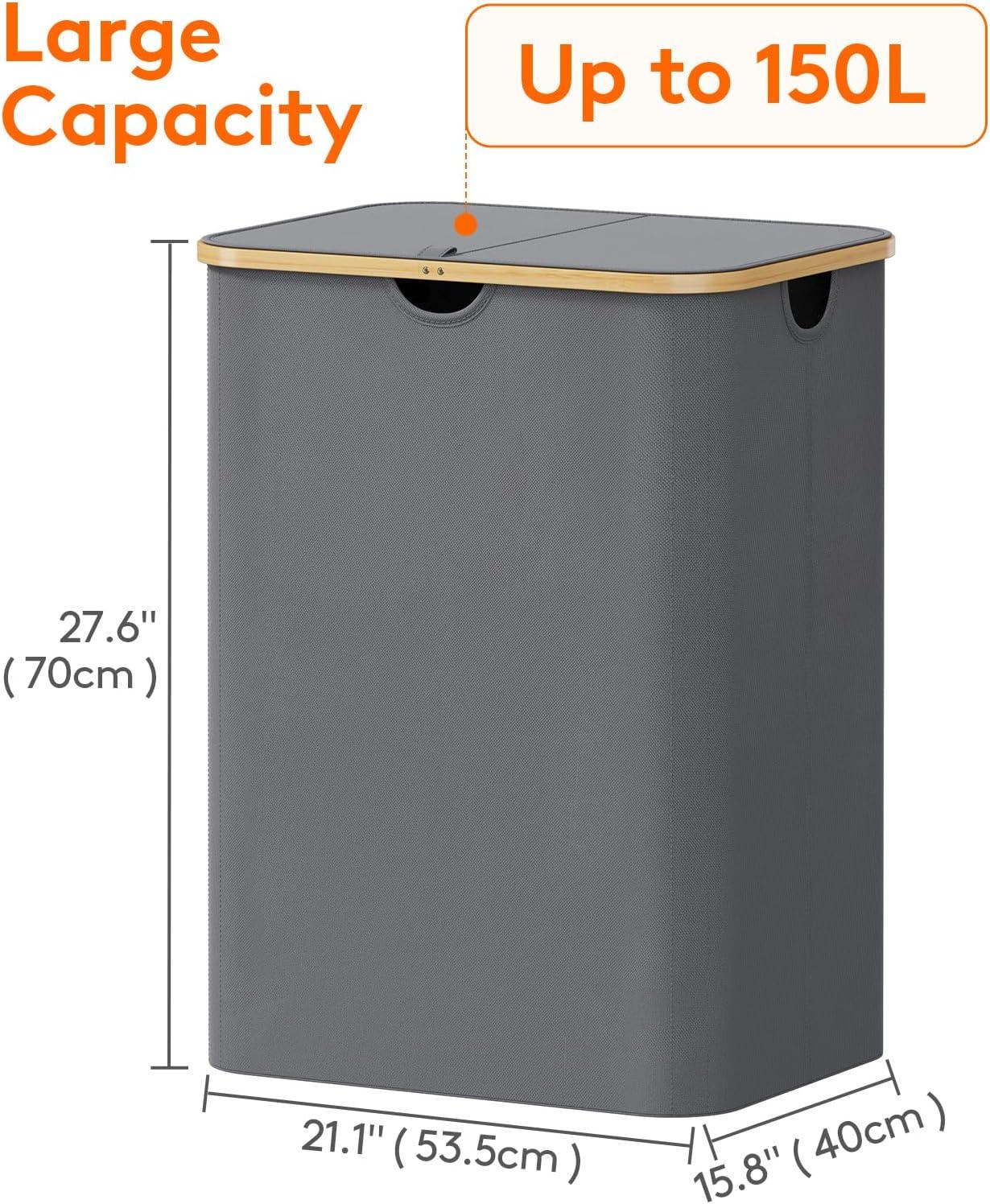 Lifewit 100L Laundry Basket with Lid, Clothes Hampers for Laundry with Bamboo Handles and A Removable Bag, Large Foldable Laundry Hamper for Bedroom, Bathroom, Dorm, Laundry Room, Gray(Gray)