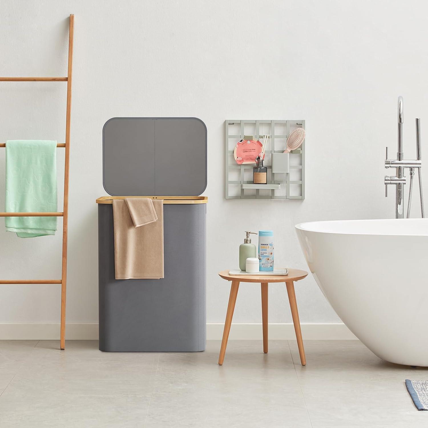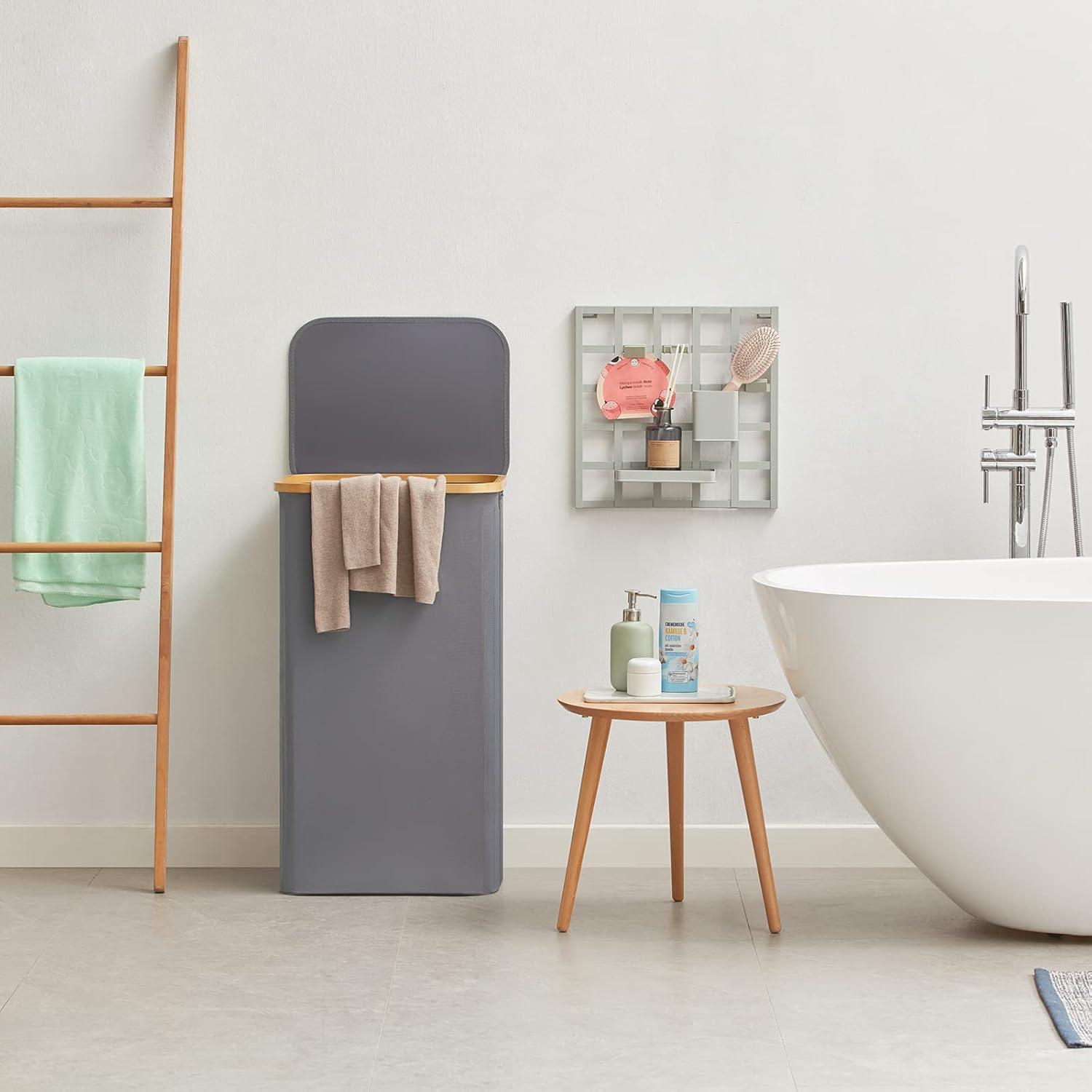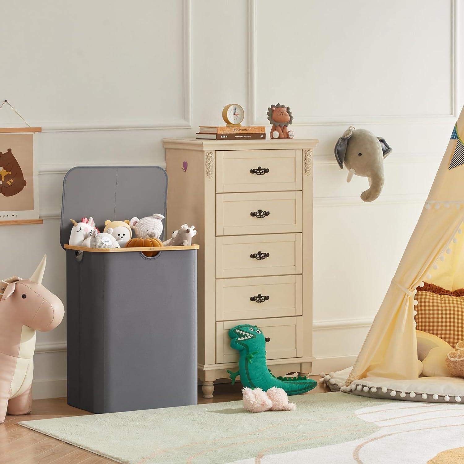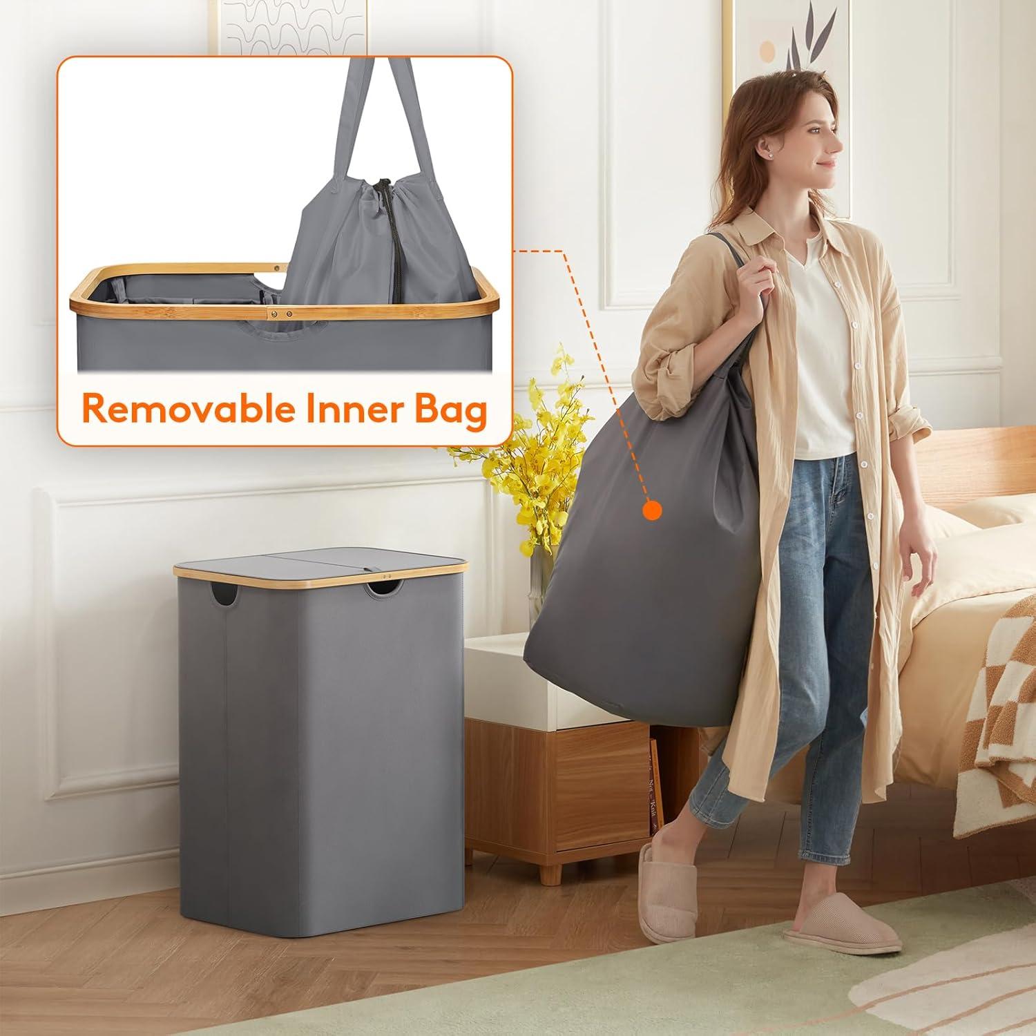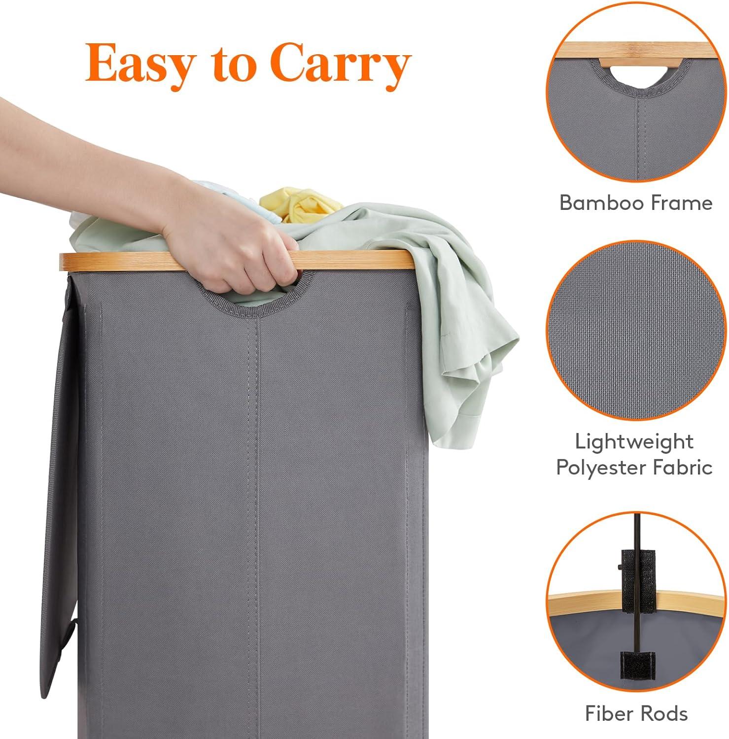 Lifewit 100L Laundry Basket with Lid, Clothes Hampers for Laundry with Bamboo Handles and A Removable Bag, Large Foldable Laundry Hamper for Bedroom, Bathroom, Dorm, Laundry Room, Gray(Gray)