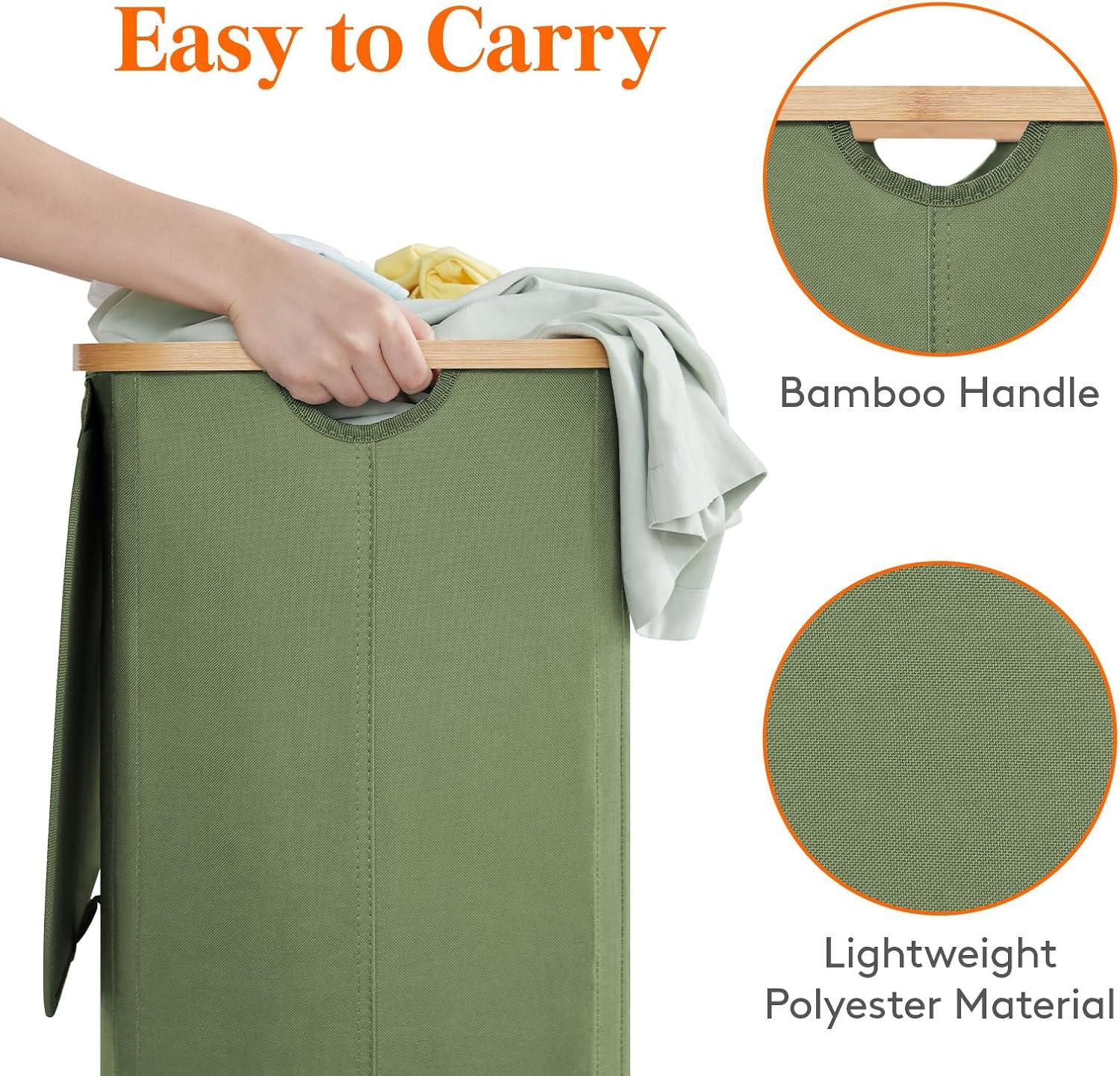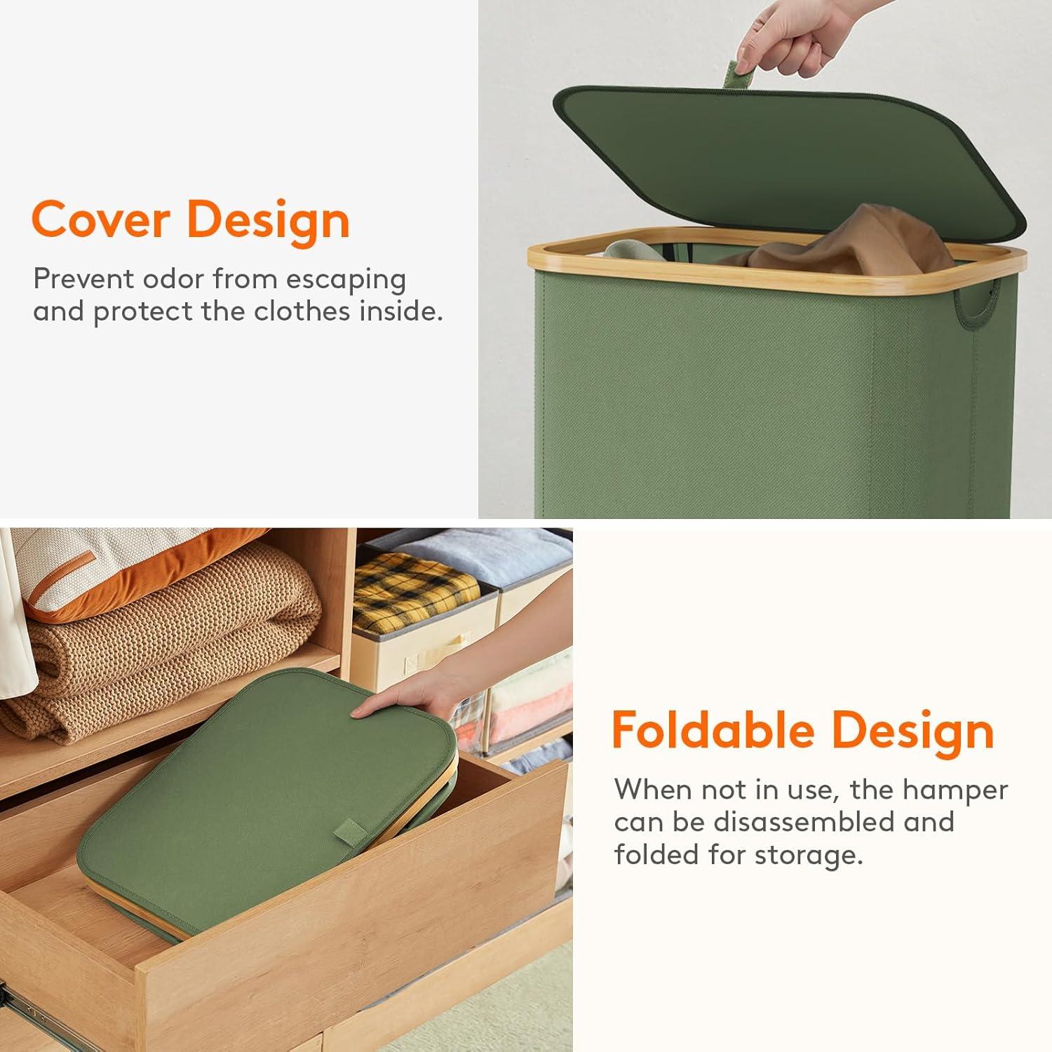 Lifewit 100L Laundry Basket with Lid, Clothes Hampers for Laundry with Bamboo Handles and A Removable Bag, Large Foldable Laundry Hamper for Bedroom, Bathroom, Dorm, Laundry Room, Gray(Green)