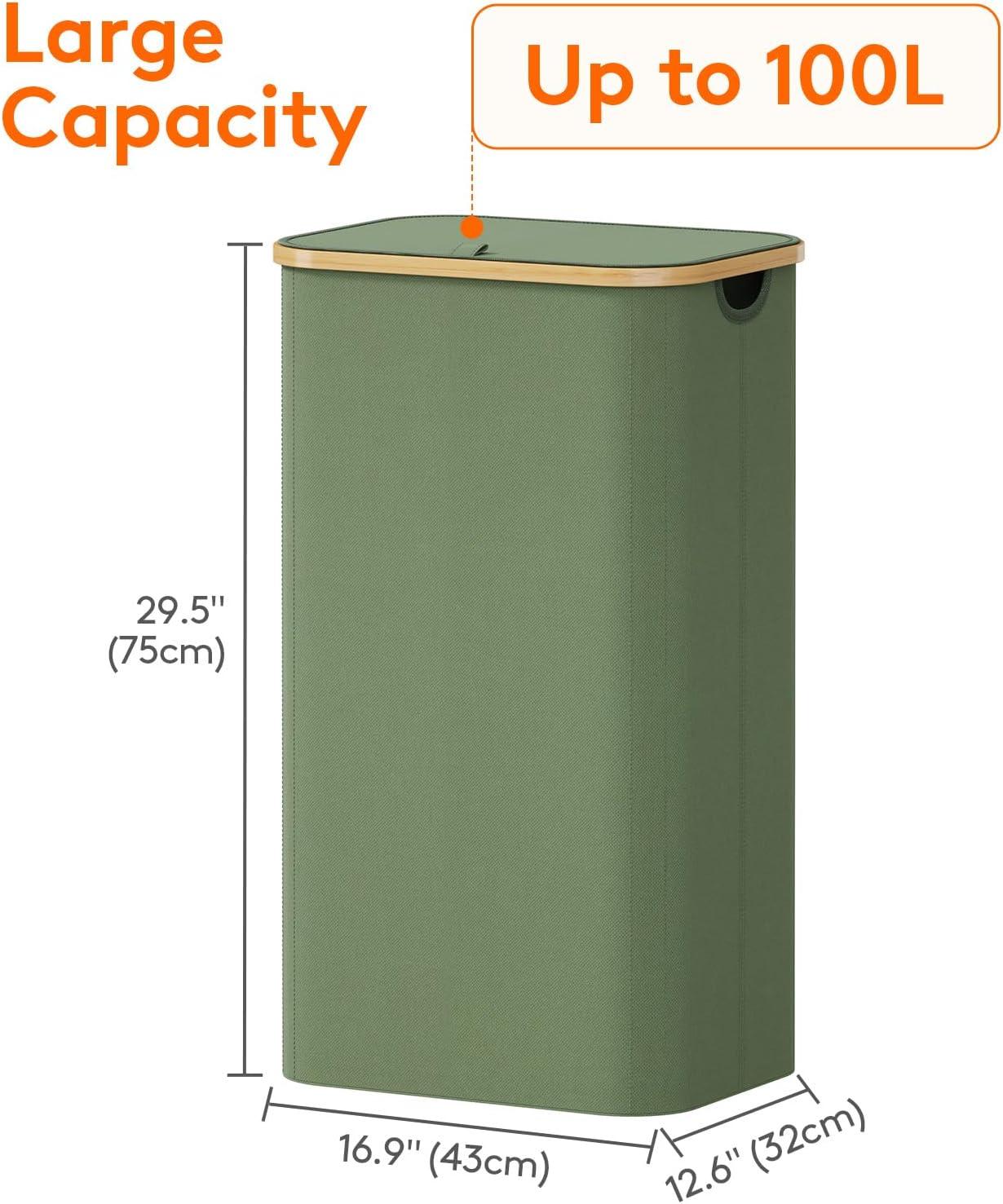 imageLifewit 100L Laundry Basket with Lid Clothes Hampers for Laundry with Bamboo Handles and A Removable Bag Large Foldable Laundry Hamper for Bedroom Bathroom Dorm Laundry Room GrayGreen