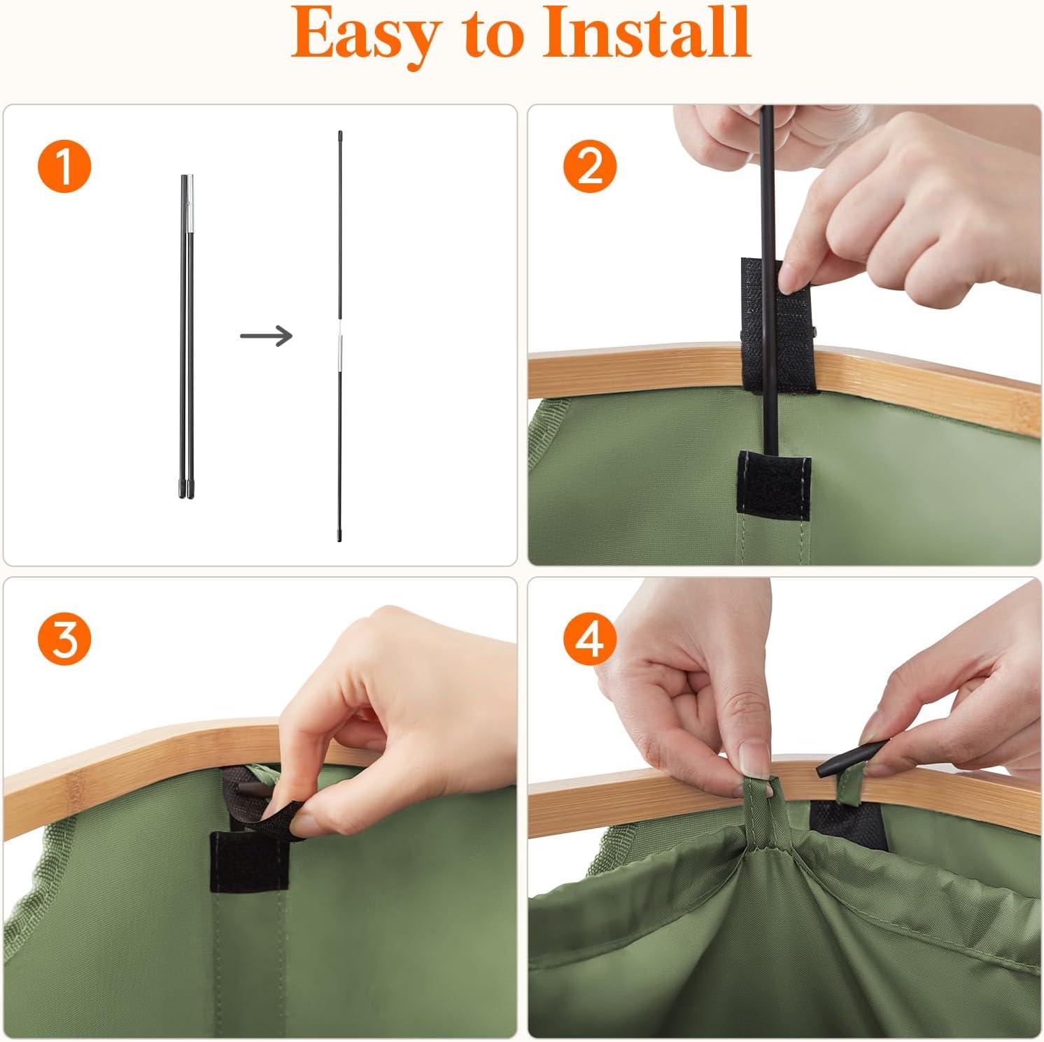 Easy to Carry: Made of high quality polyester fabric and bamboo, this laundry bin is lightweight and easy to carry. Two bamboo handles provide firm and steady grip when moving from one room to another.