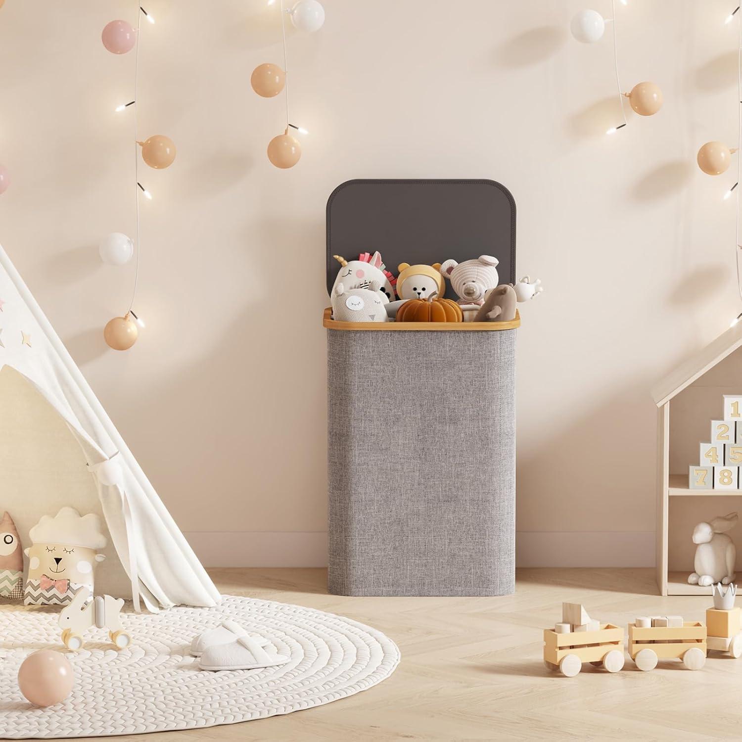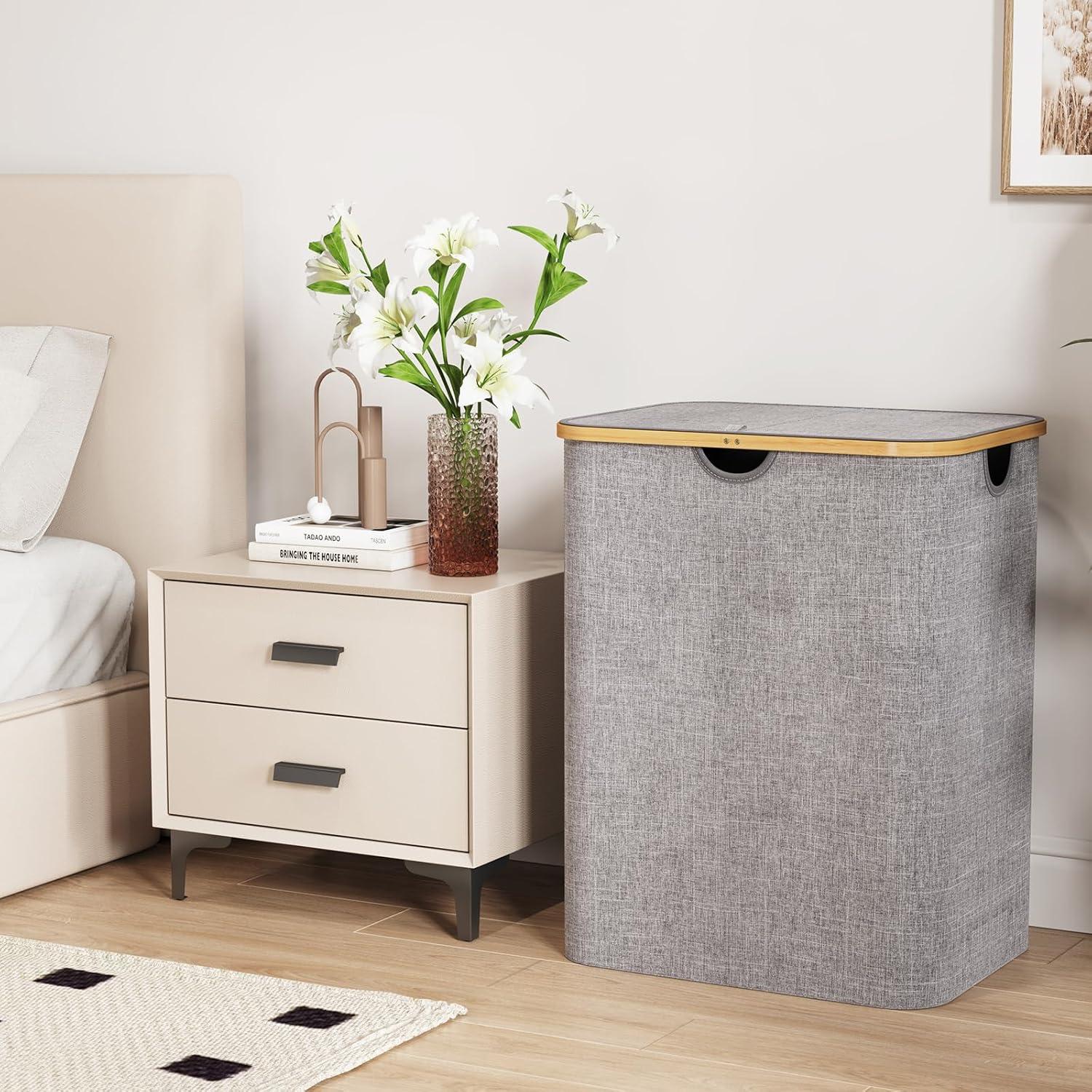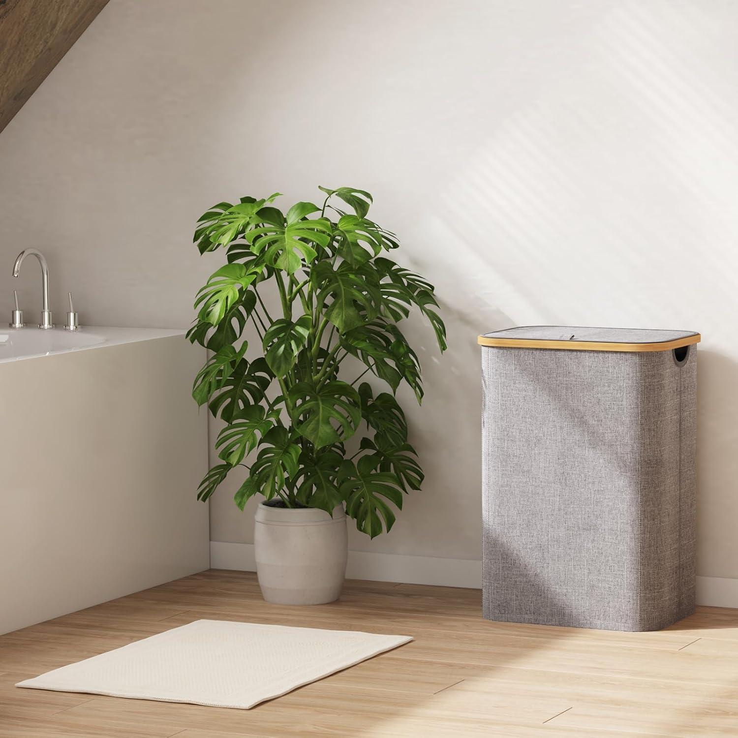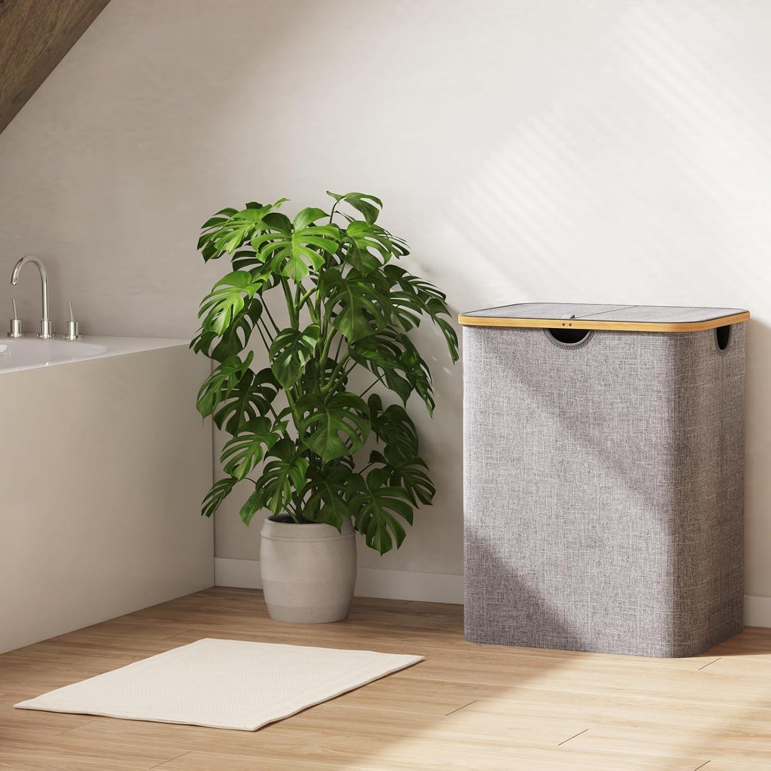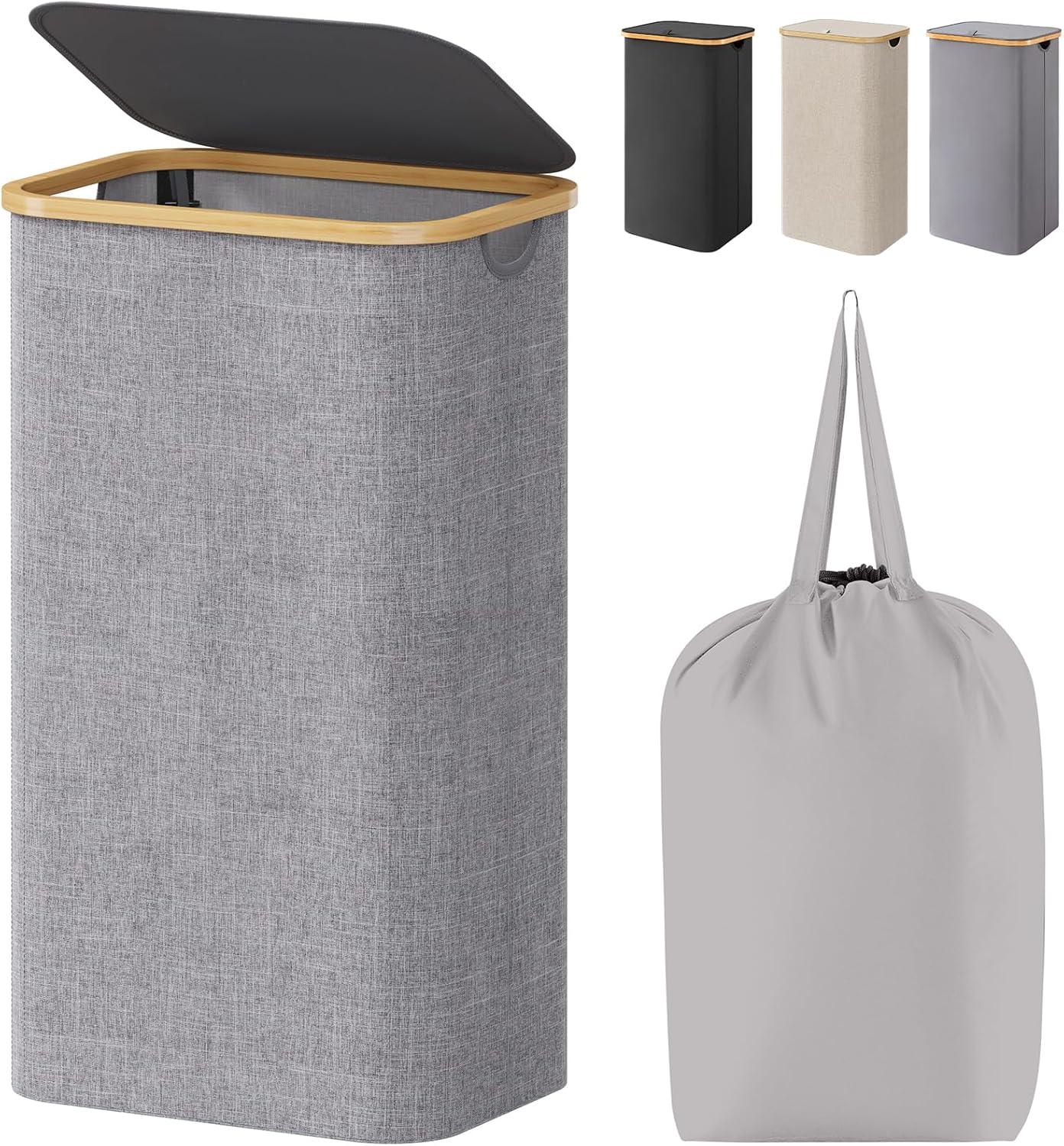 Lifewit 100L Laundry Basket with Lid, Clothes Hampers for Laundry with Bamboo Handles and A Removable Bag, Large Foldable Laundry Hamper for Bedroom, Bathroom, Dorm, Laundry Room, Gray(Light Gray)