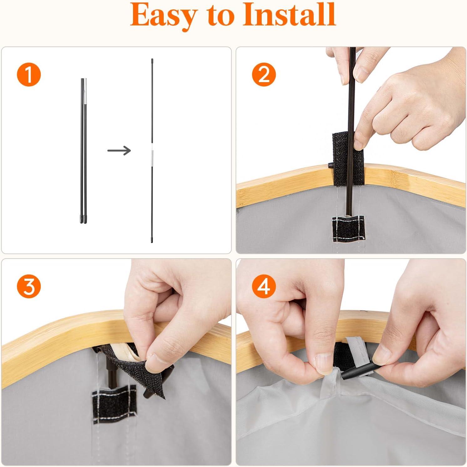 Easy to Install & Fold: Our clothes hamper with lid is designed with easy assembly in mind. Just insert 4 included support rods into the corners and the basket will stand upright. Likewise, remove the poles when not in use and fold for easy storage.