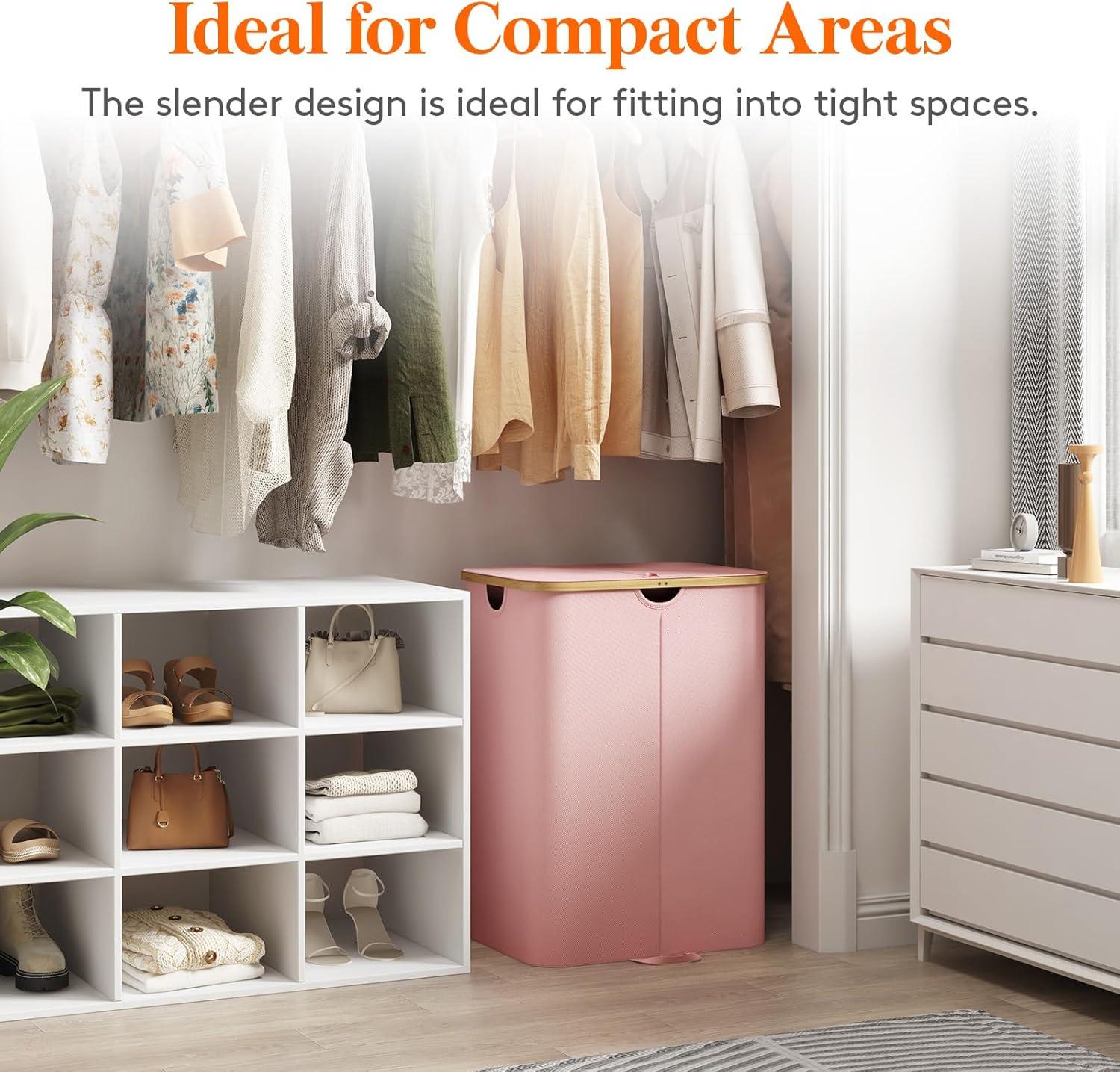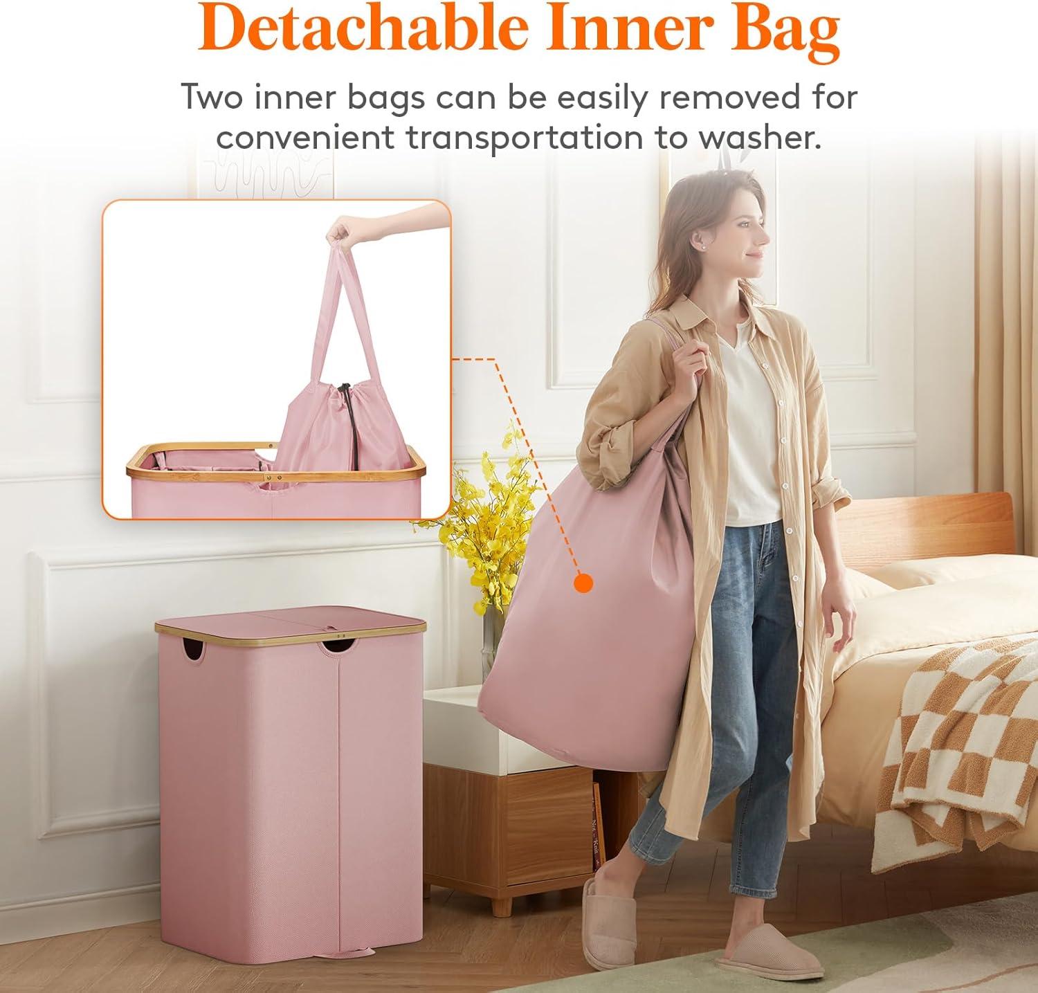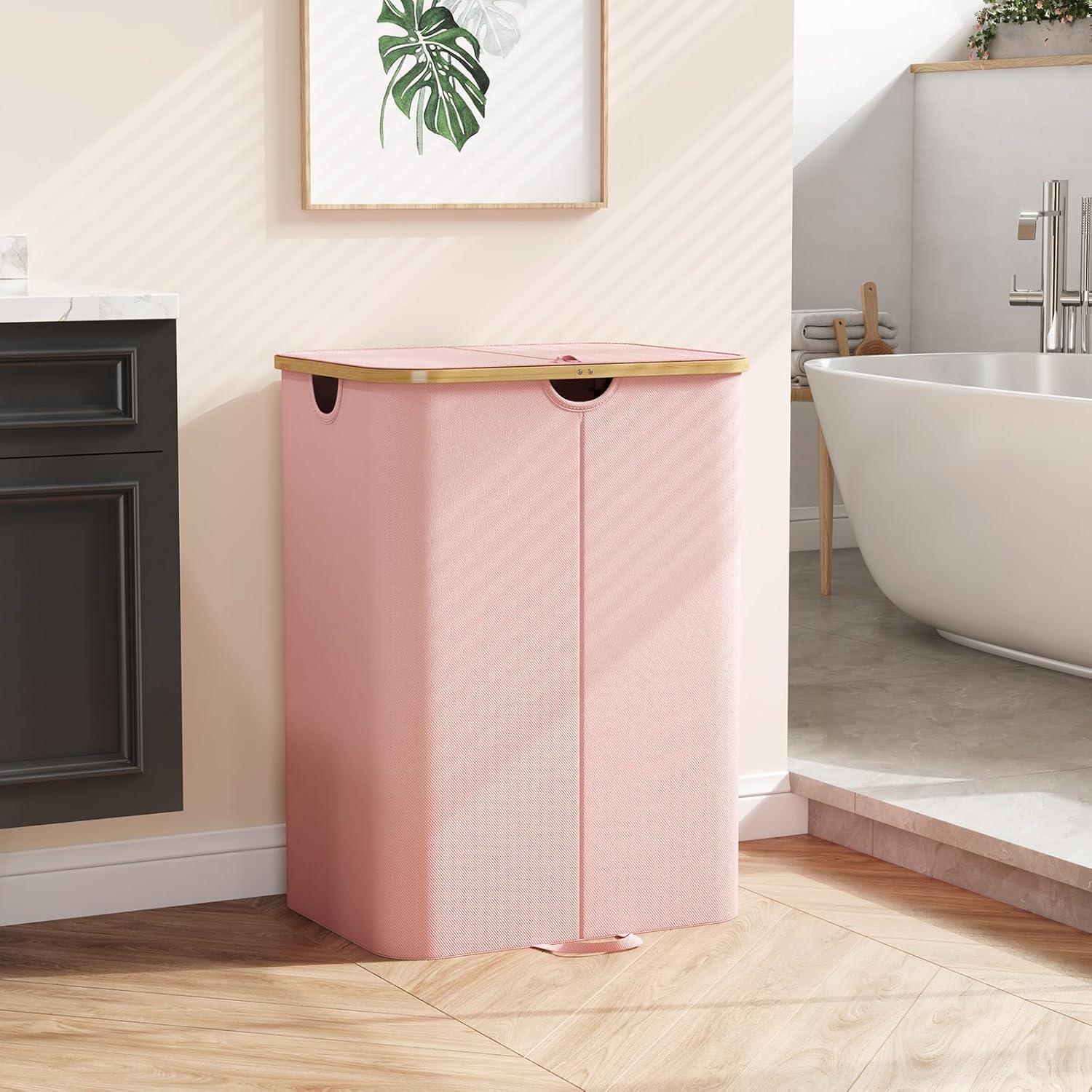 Get the Lifewit 120L Double Laundry Hamper with Lid, Large Dual Laundry Basket Removable Bags, 2 Sections Aesthetic Clothes Hampers for Laundry with Bamboo Handles for Bedroom Bathroom Dorm, Black(Pink) you want at a discounted price during our markdown sale event.