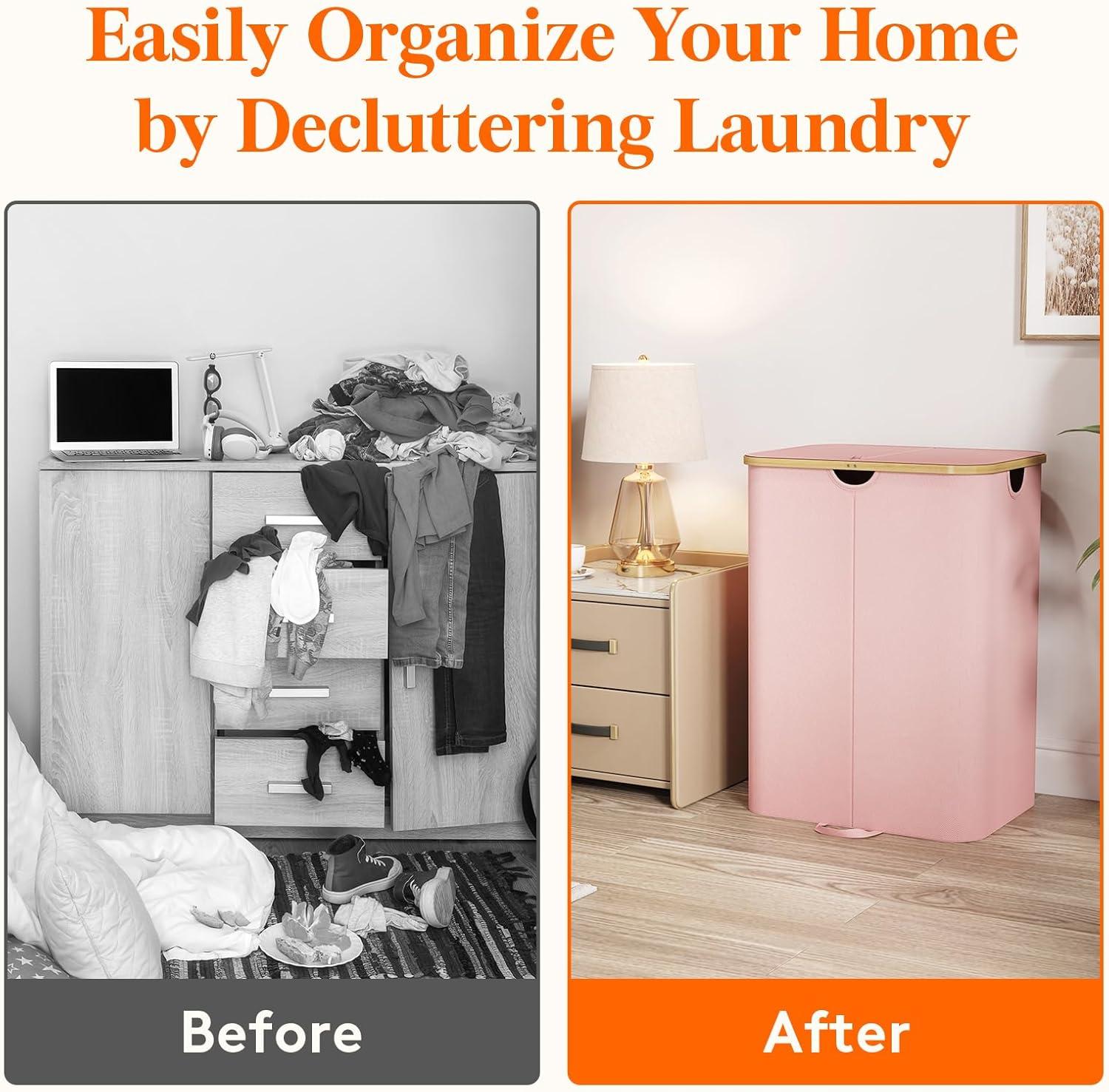 Lid Design: The lid blocks odors and hides laundry mess. Just toss clothes in, snap the lid shut, and keep your space fresh and tidy. No more visible clutter