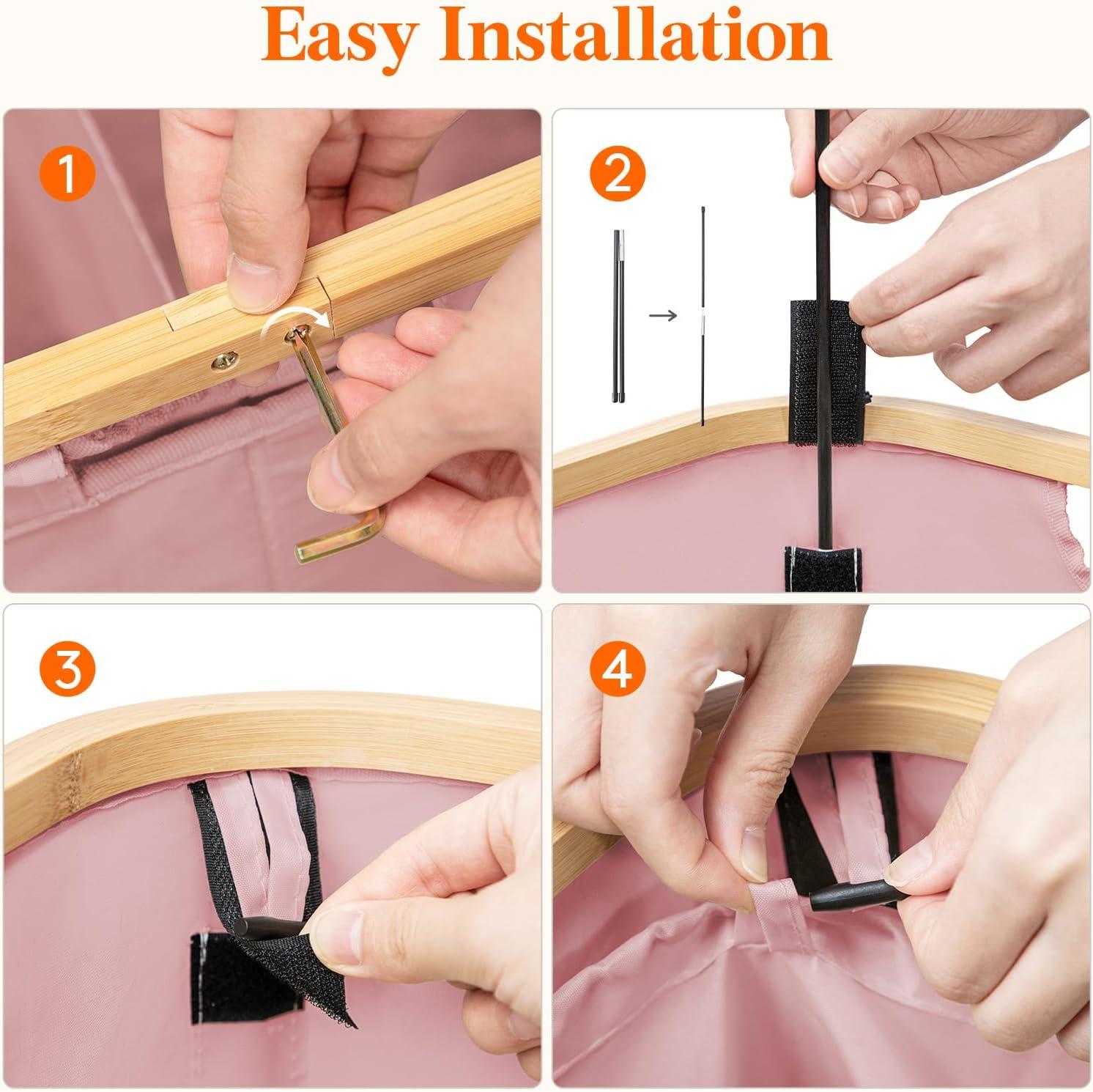 Easy Installation: Features 4 semi-built-in screws and included support rods – just secure the top frame, insert rods into corners, and your hamper stands ready quickly. Save your assembly time