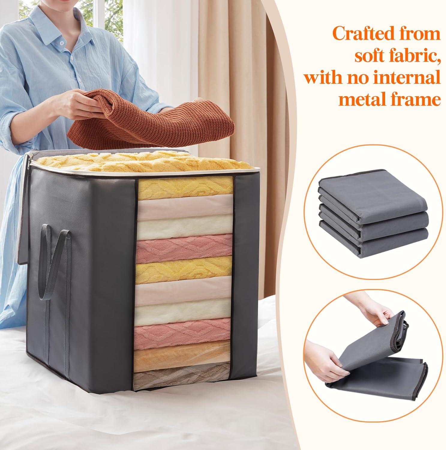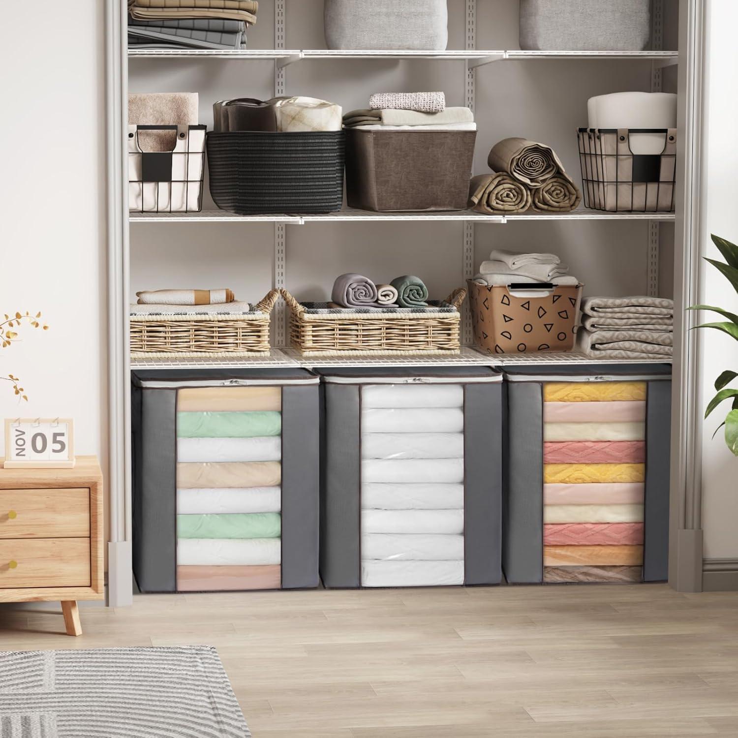 Lifewit 120L Extra Large Blanket Storage Bags, Foldable Comforter Storage with Reinforced Handles, Clothes Storage Containers for King Comforter, Bedding, Pillow, Sheet, Storage Bin with Lids 3 Pack(4)