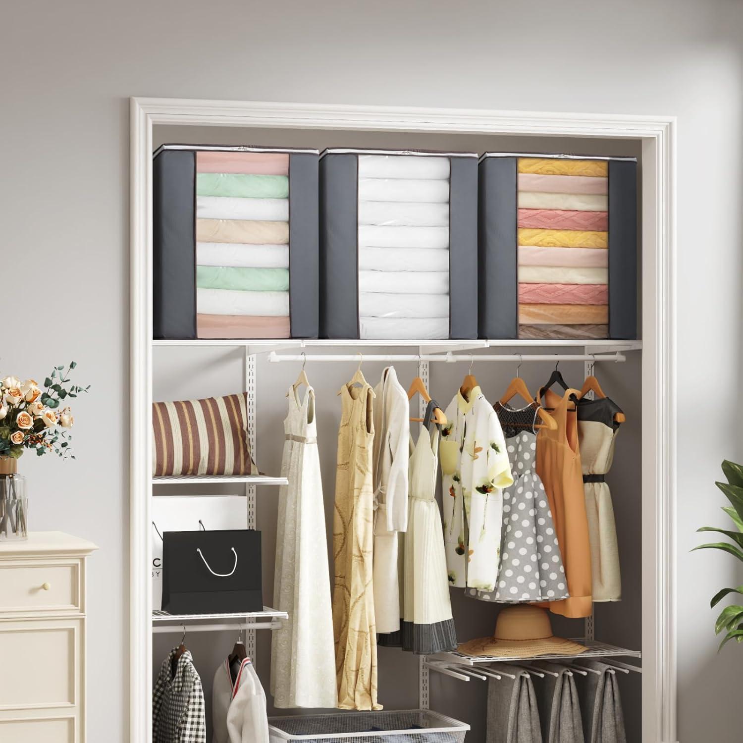 Lifewit 120L Extra Large Blanket Storage Bags, Foldable Comforter Storage with Reinforced Handles, Clothes Storage Containers for King Comforter, Bedding, Pillow, Sheet, Storage Bin with Lids 3 Pack(3)