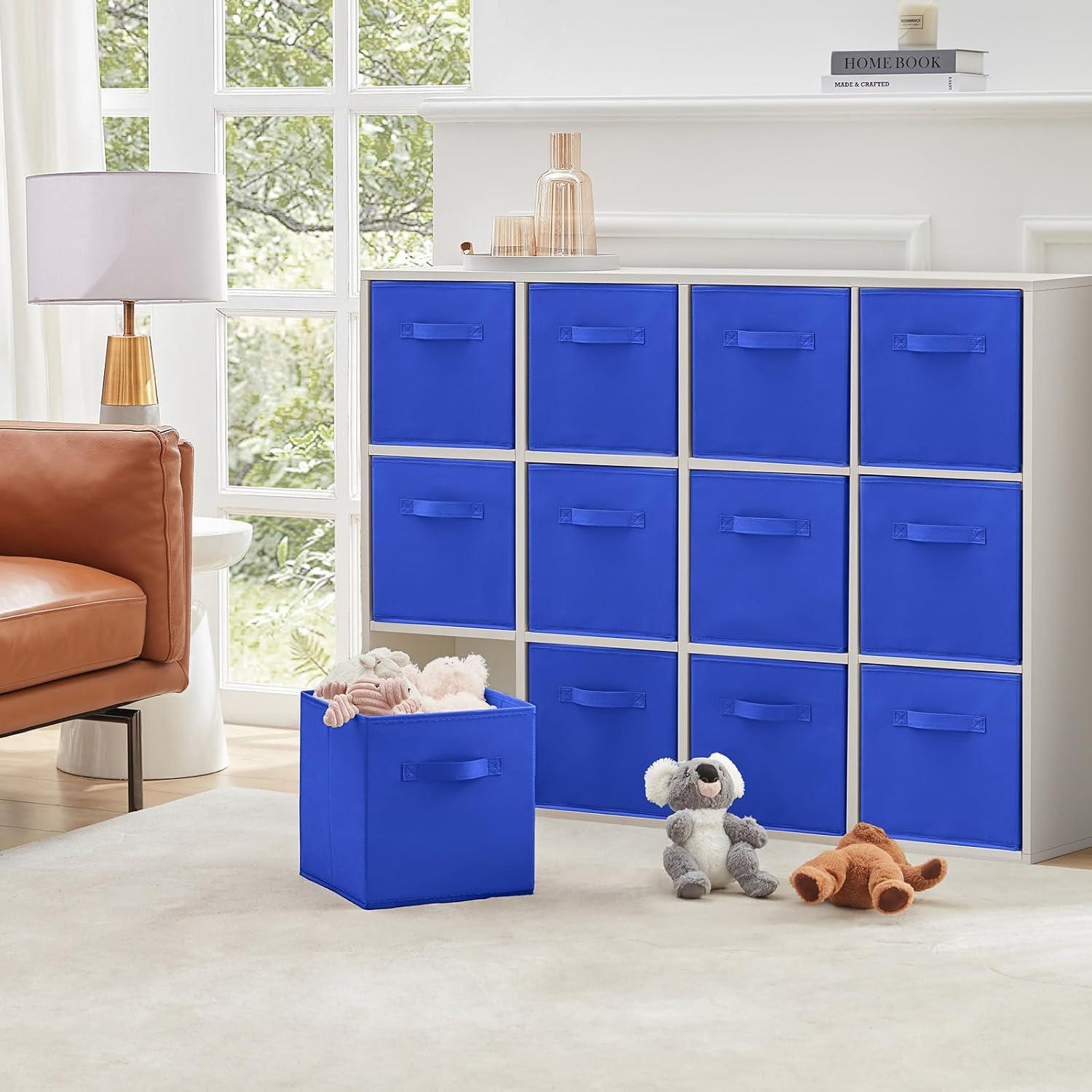 Lifewit 13 Inch Cube Storage Bins, Storage Cubes Foldable Medium Decorative Fabric Storage Baskets for Organizing Home Organizers with Handles for Shelves, Closet, Set of 8, 36L Grey(Blue)