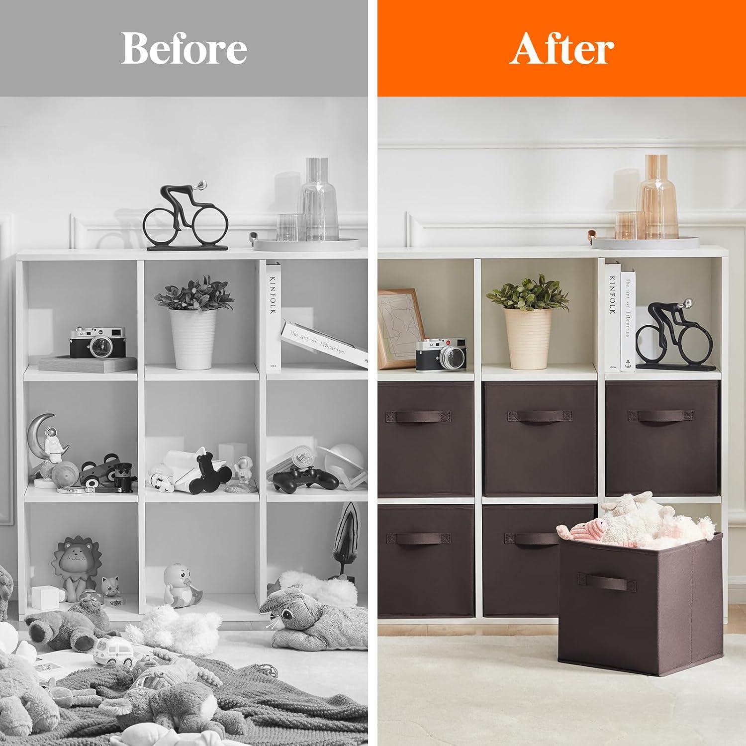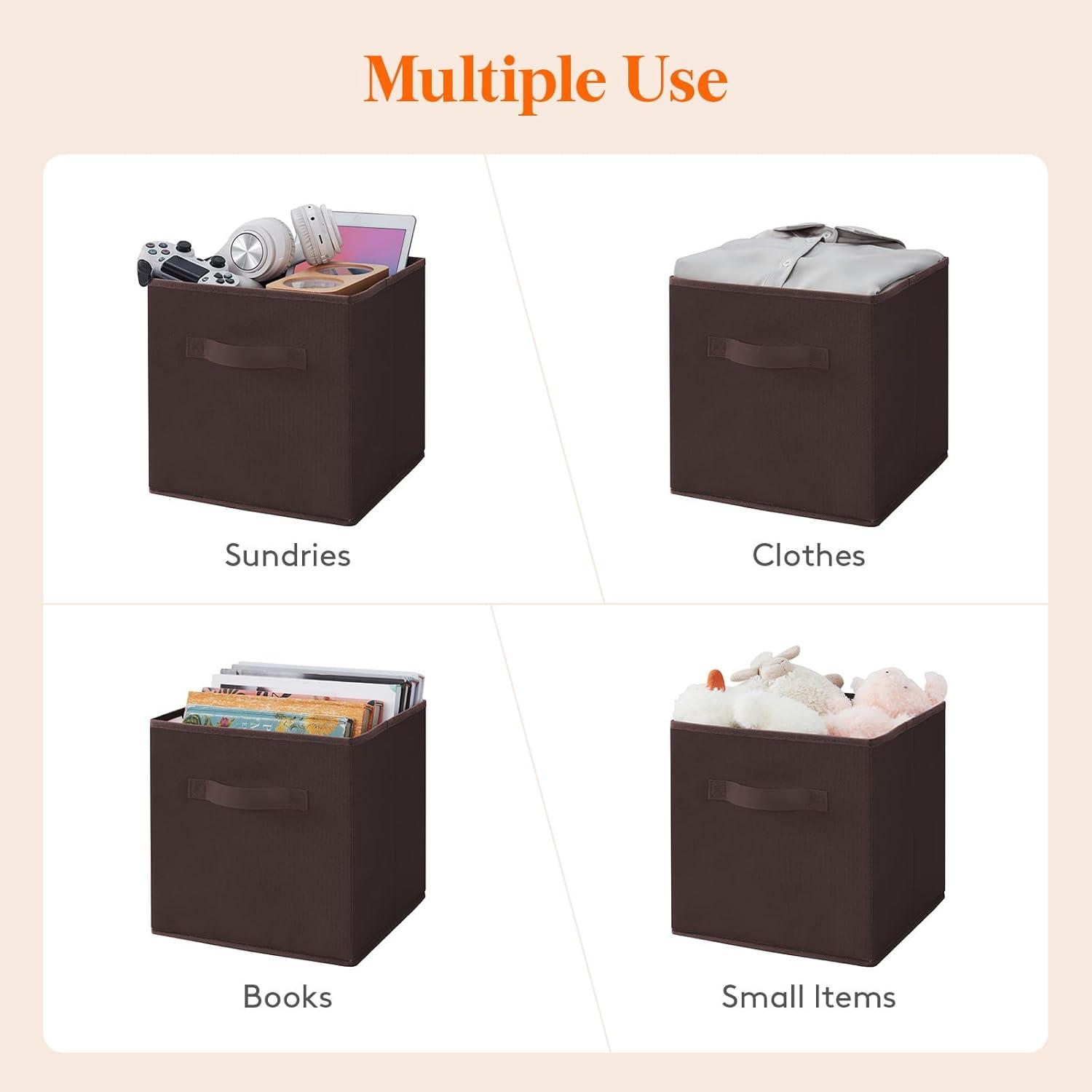 Lifewit 13 Inch Cube Storage Bins, Storage Cubes Foldable Medium Decorative Fabric Storage Baskets for Organizing Home Organizers with Handles for Shelves, Closet, Set of 8, 36L Grey(Brown)