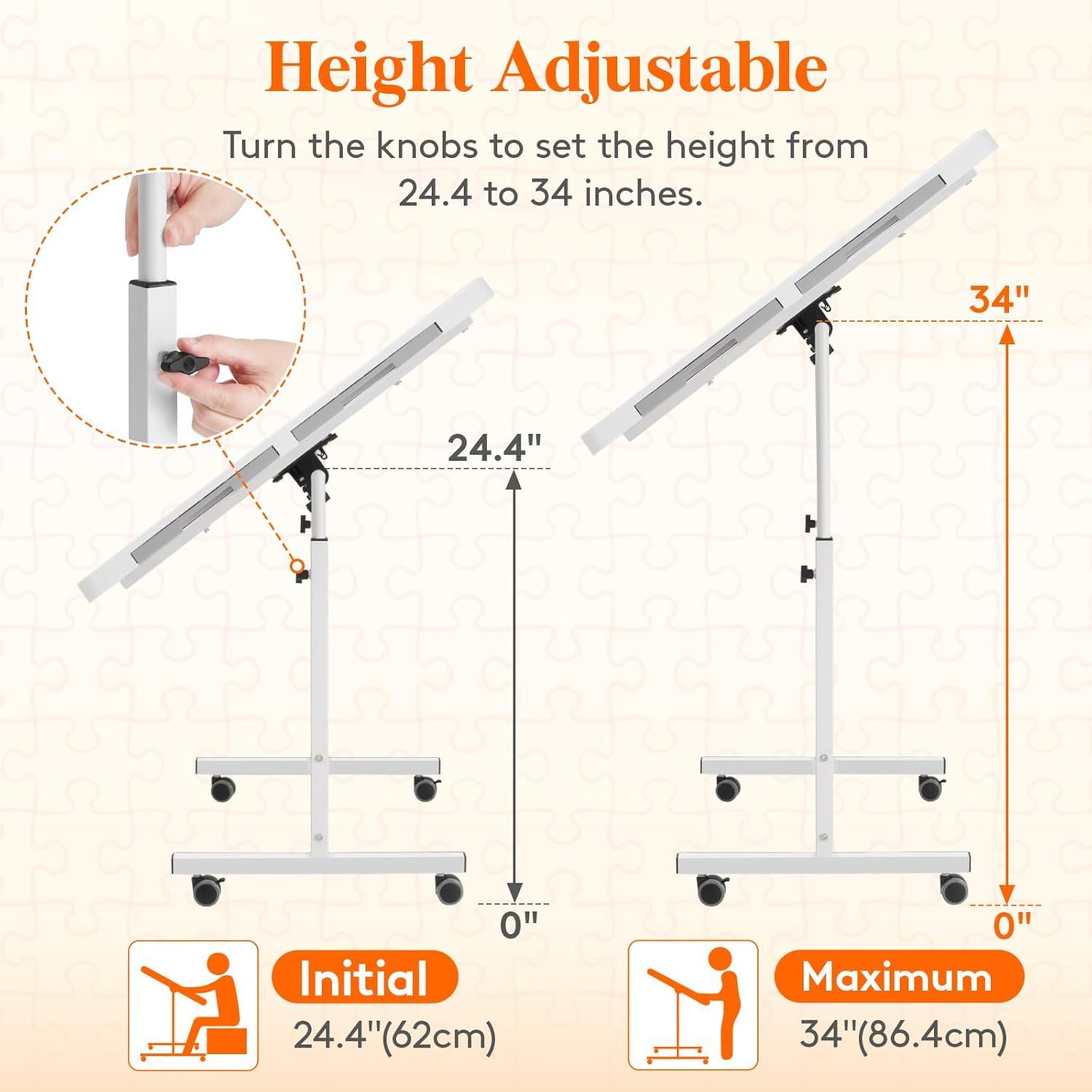 Adjustable Height and Angle: The puzzle board with drawers features a height adjustment range of 24.4-34 inches (62-88 cm) accommodating various height needs. The tabletop can be adjusted 360° to find the perfect angle for optimal comfort, reducing stress and pain on your neck and back