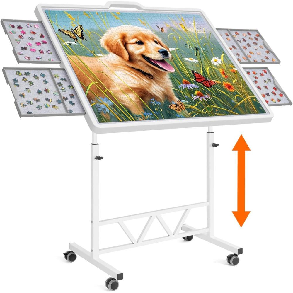 Lifewit 1500 Pieces Adjustable Jigsaw Puzzle Table with Wheels, 360-degree Angle/Height Adjustable, Puzzle Board with Metal Legs, Drawers, Felt Mat, Protective Cover, Ideal Gift, 33.3″ x 25.4″, White
