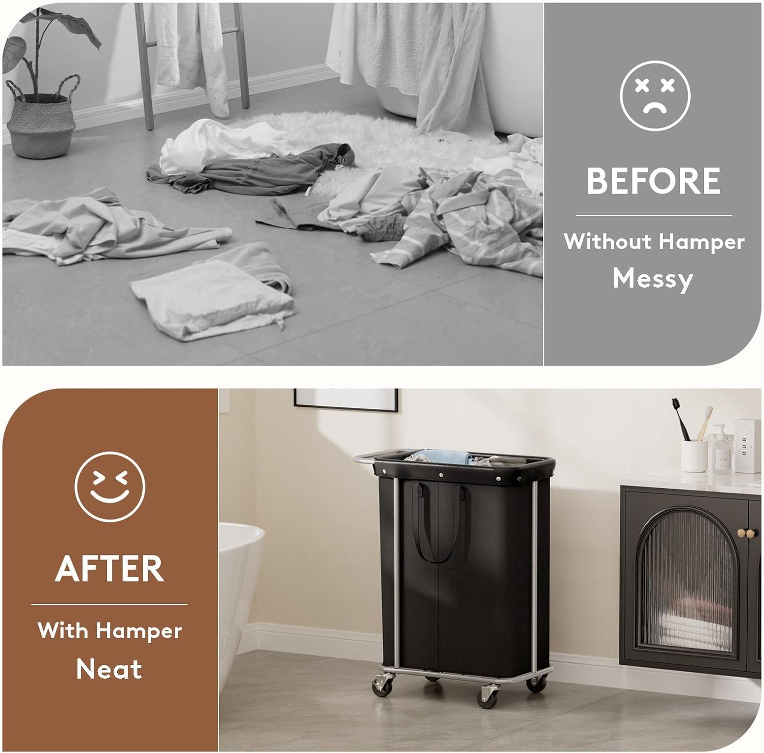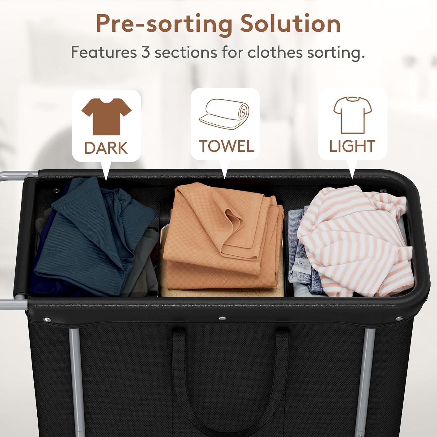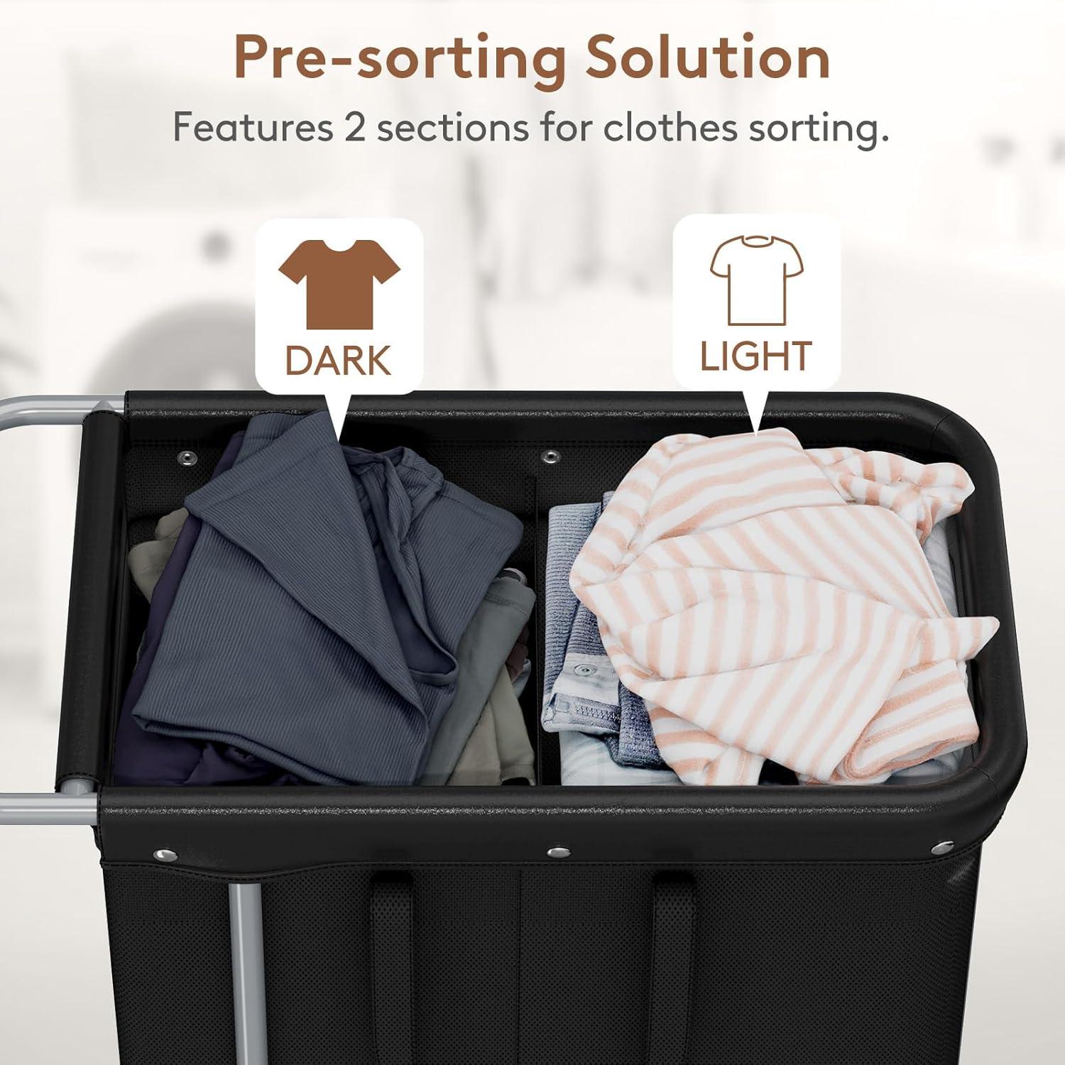 Lifewit 150L Large Laundry Basket with Wheels, Tall 2 Section Laundry Hamper Organizer, Rolling Laundry Cart with Steel Frame & Removable Bag for Luandry Room Bathroom Bedroom, White(Black)
