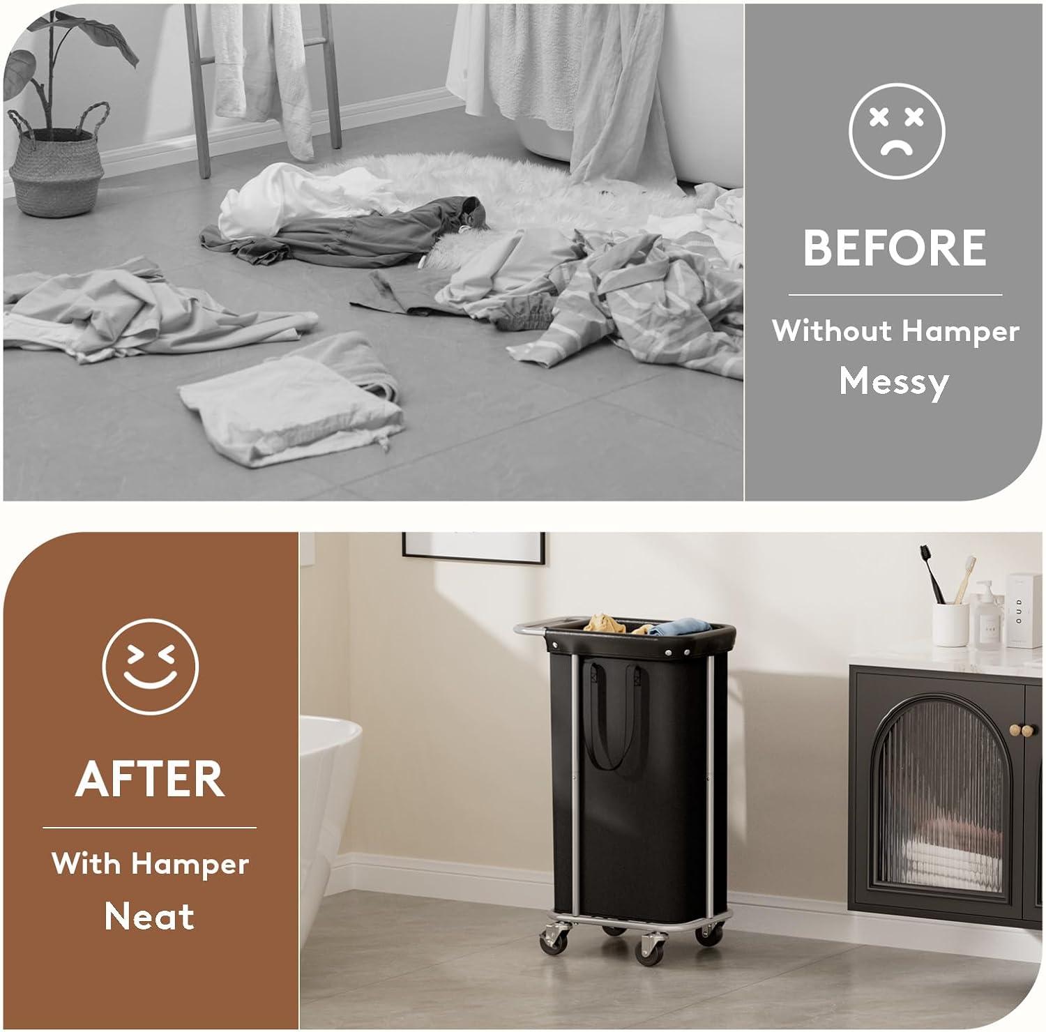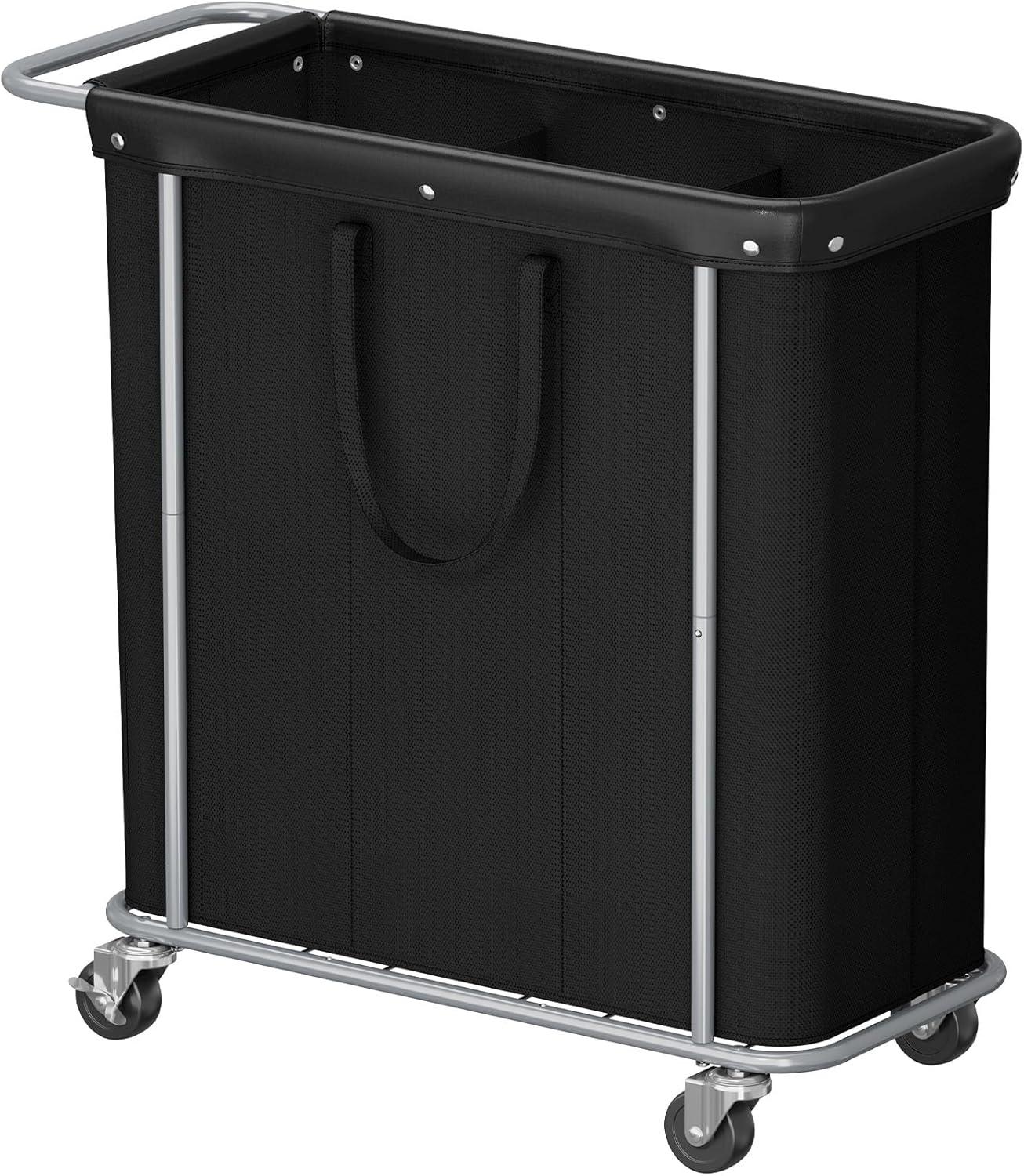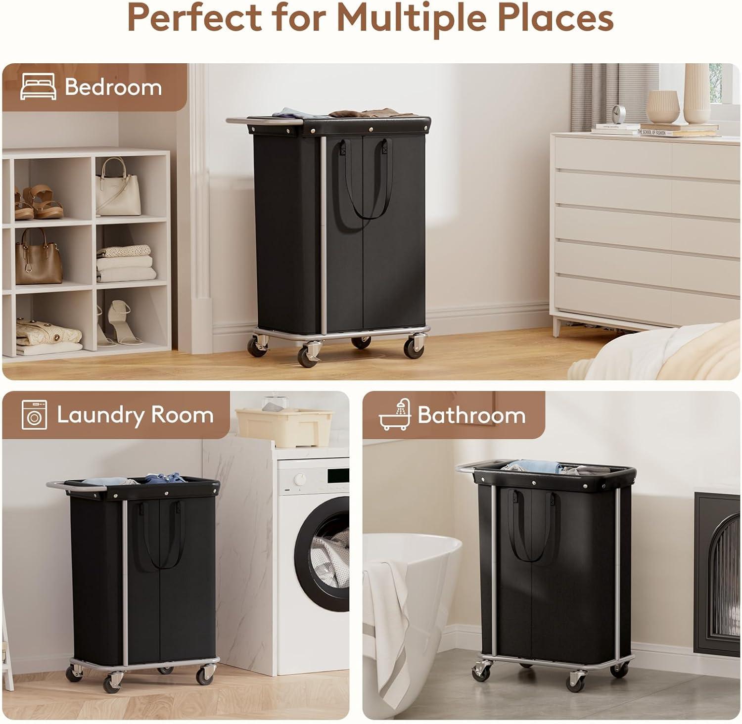 Lifewit 150L Large Laundry Basket with Wheels, Tall 2 Section Laundry Hamper Organizer, Rolling Laundry Cart with Steel Frame & Removable Bag for Luandry Room Bathroom Bedroom, White(Black)