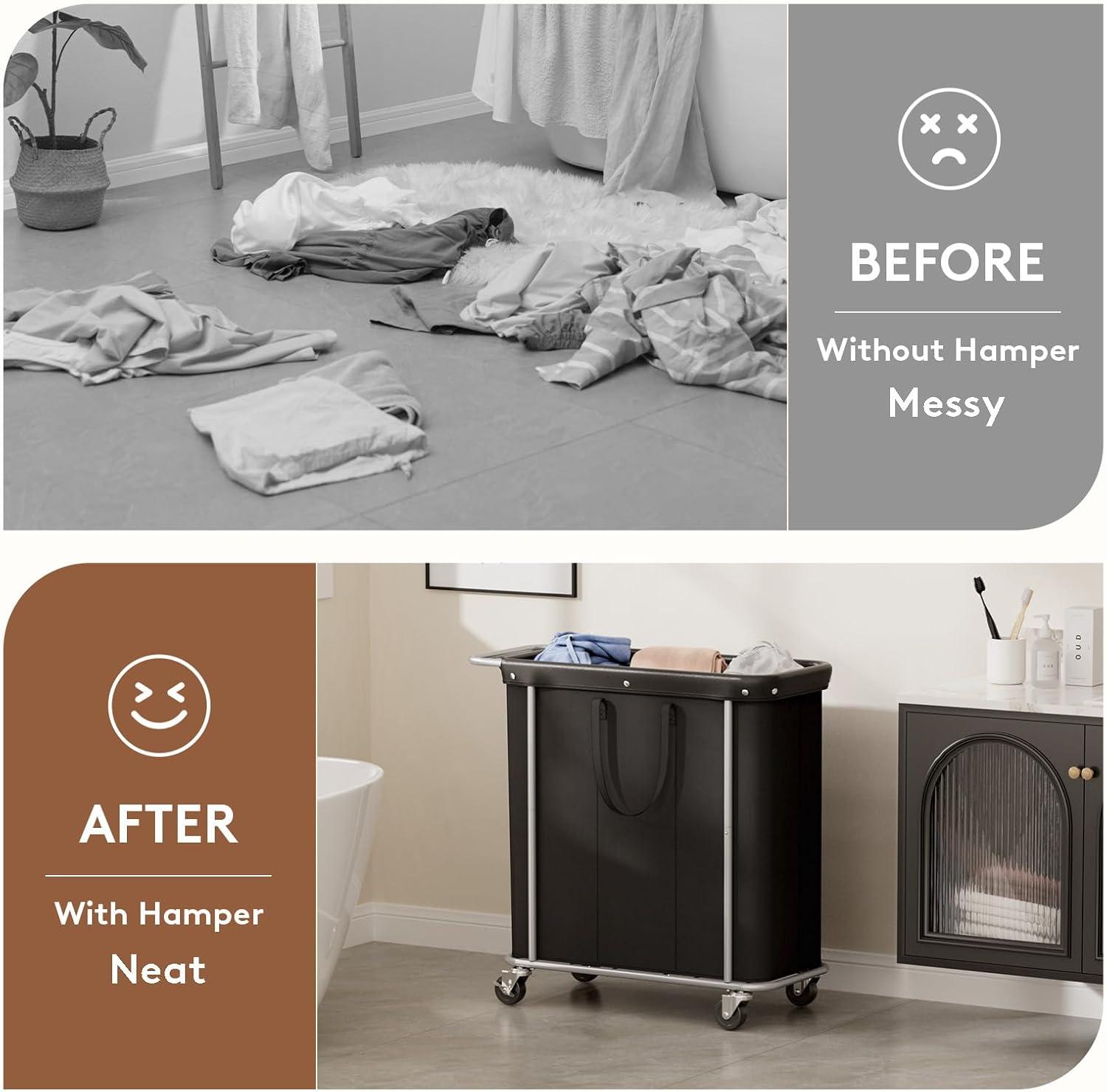 Dual-tier laundry sorter: Easily separate lights from darks to prevent dye transfer. Features durable 600D oxford fabric and a waterproof liner. Good for organizing wet and dry laundry. Stays neat and mess-free