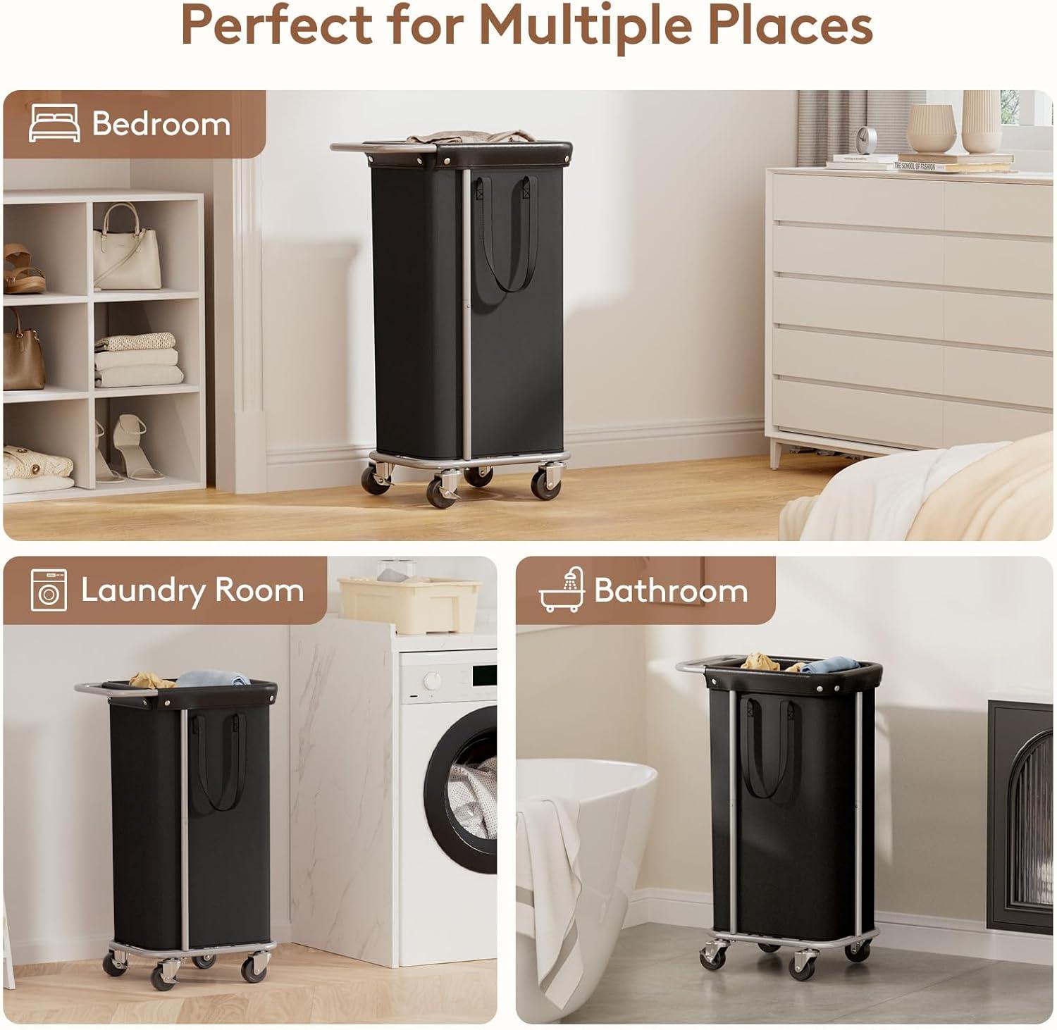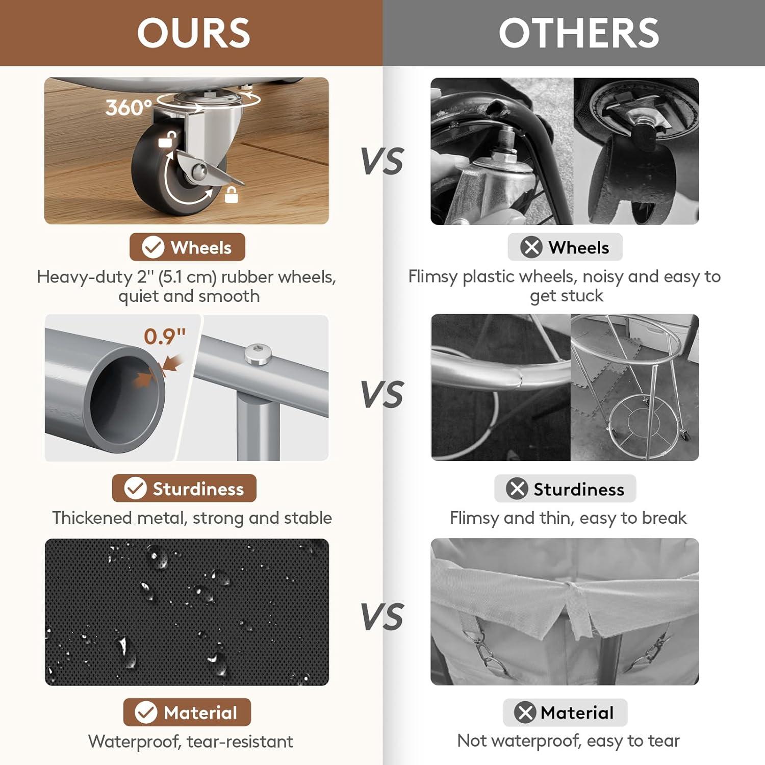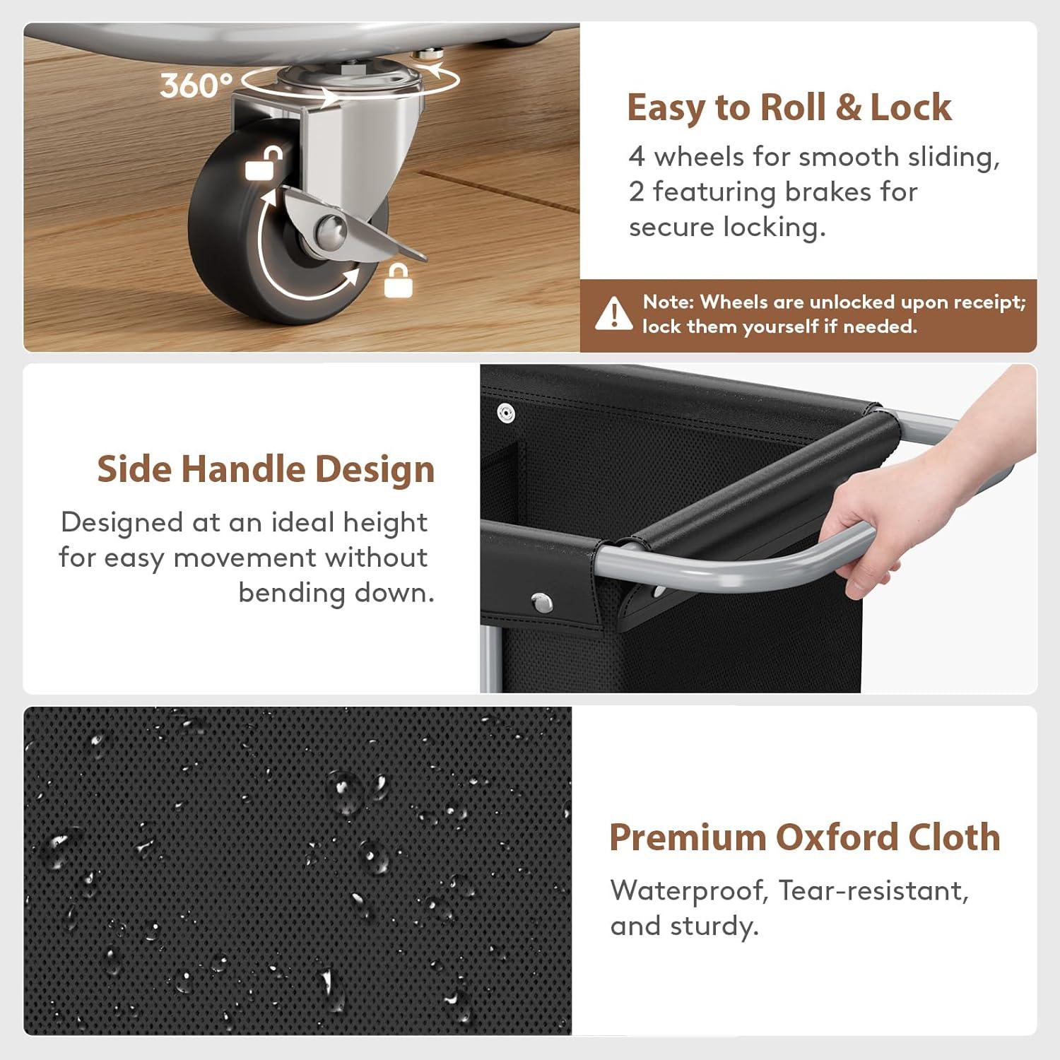 Easy to Move: Four 2-inch (5.1 cm) rubbe wheels and a side handle let you glide it anywhere—no bending. Built-in brakes lock for safety. Glide it from room to room to quickly tidy and store your items. Makes laundry day a breeze