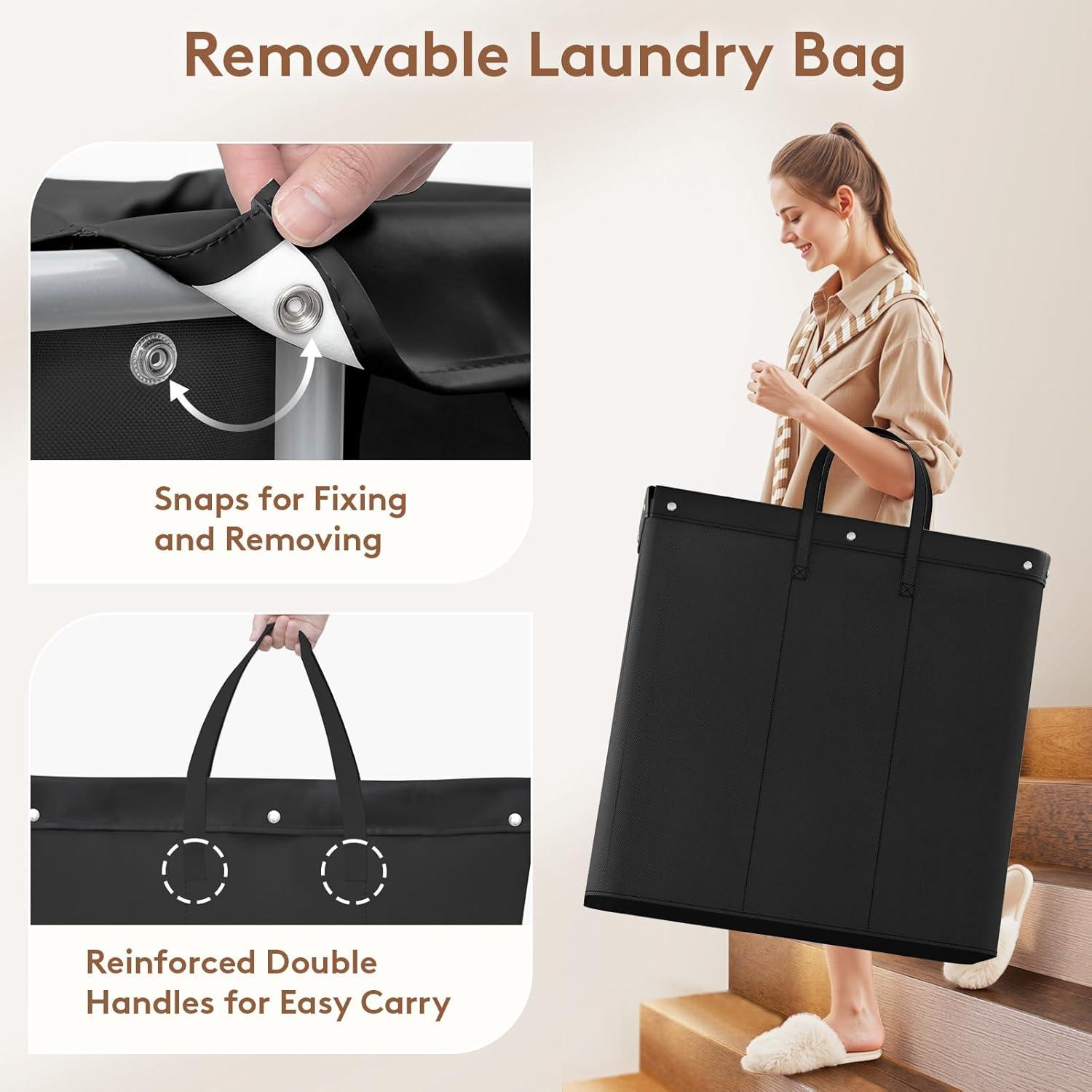 Removable and Fixed Laundry Bag: Simply unsnap to remove. Dual handles make carrying to the laundry room easy. Securely attached with snaps—stays in place. No slips, no hassle