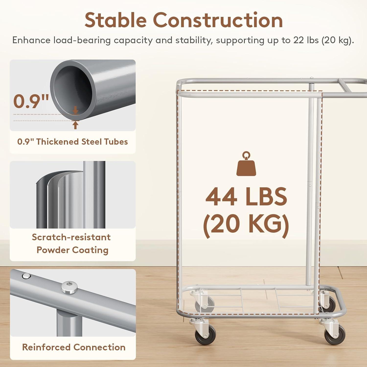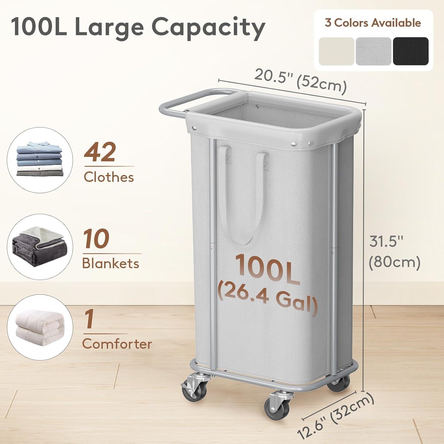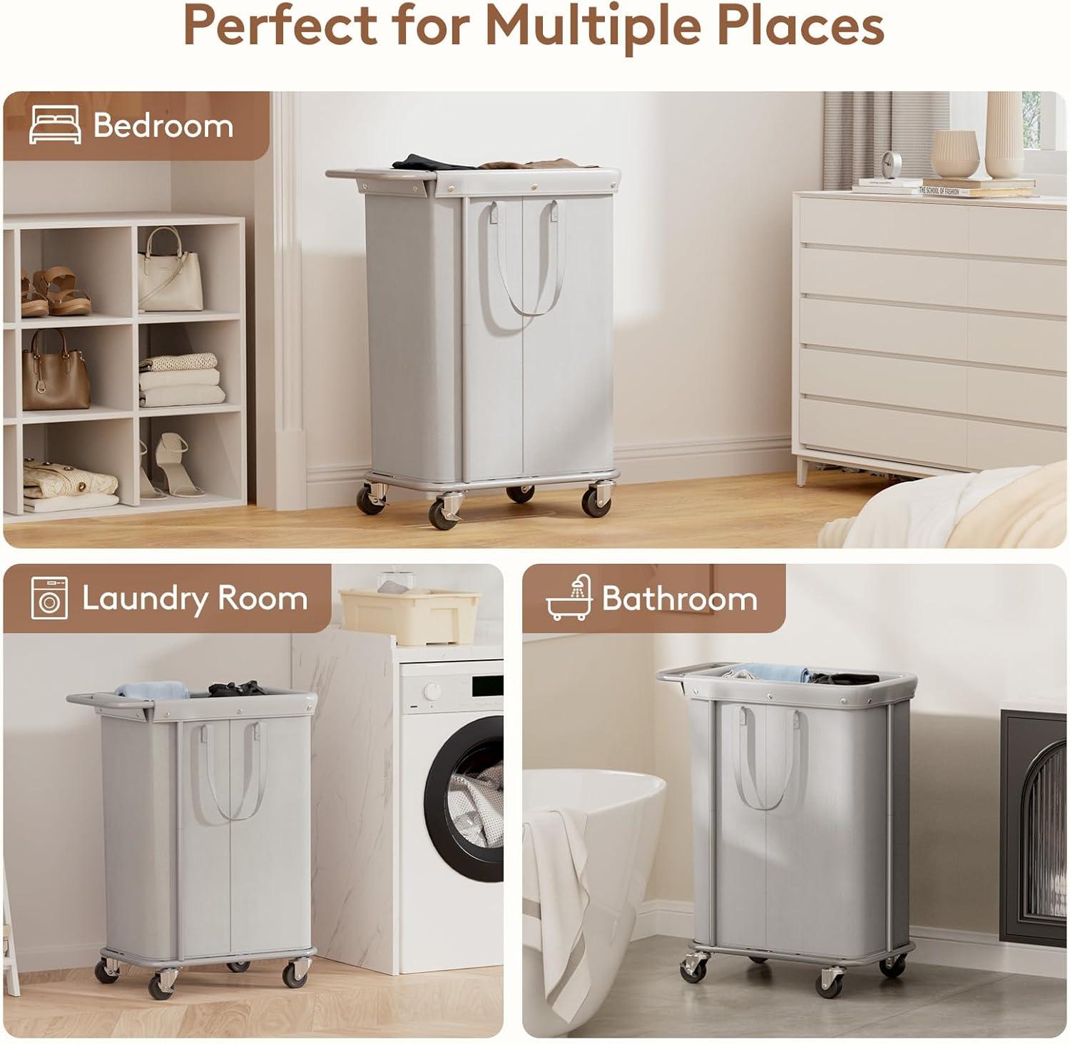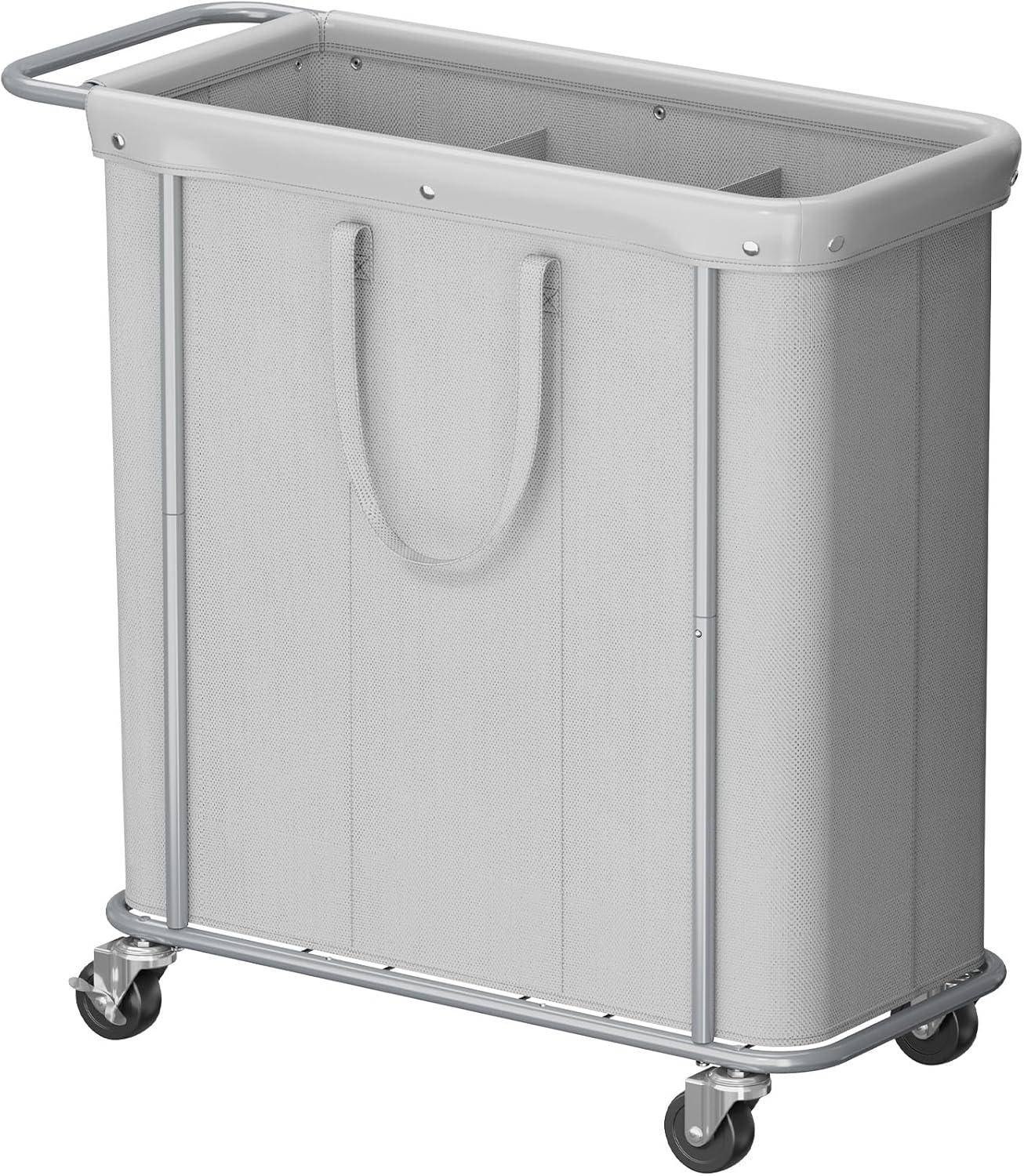 Lifewit 150L Large Laundry Basket with Wheels, Tall 2 Section Laundry Hamper Organizer, Rolling Laundry Cart with Steel Frame & Removable Bag for Luandry Room Bathroom Bedroom, White(Silver Gray)