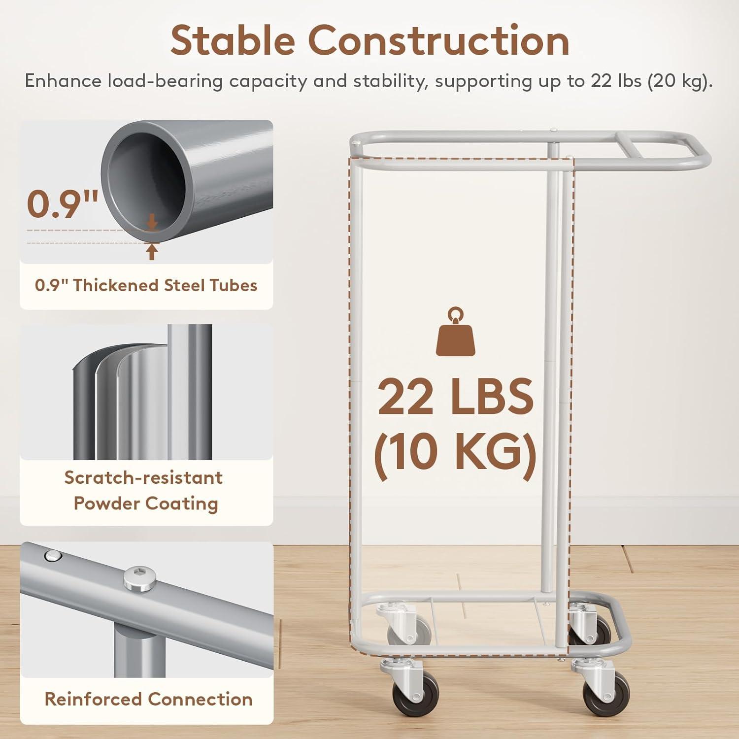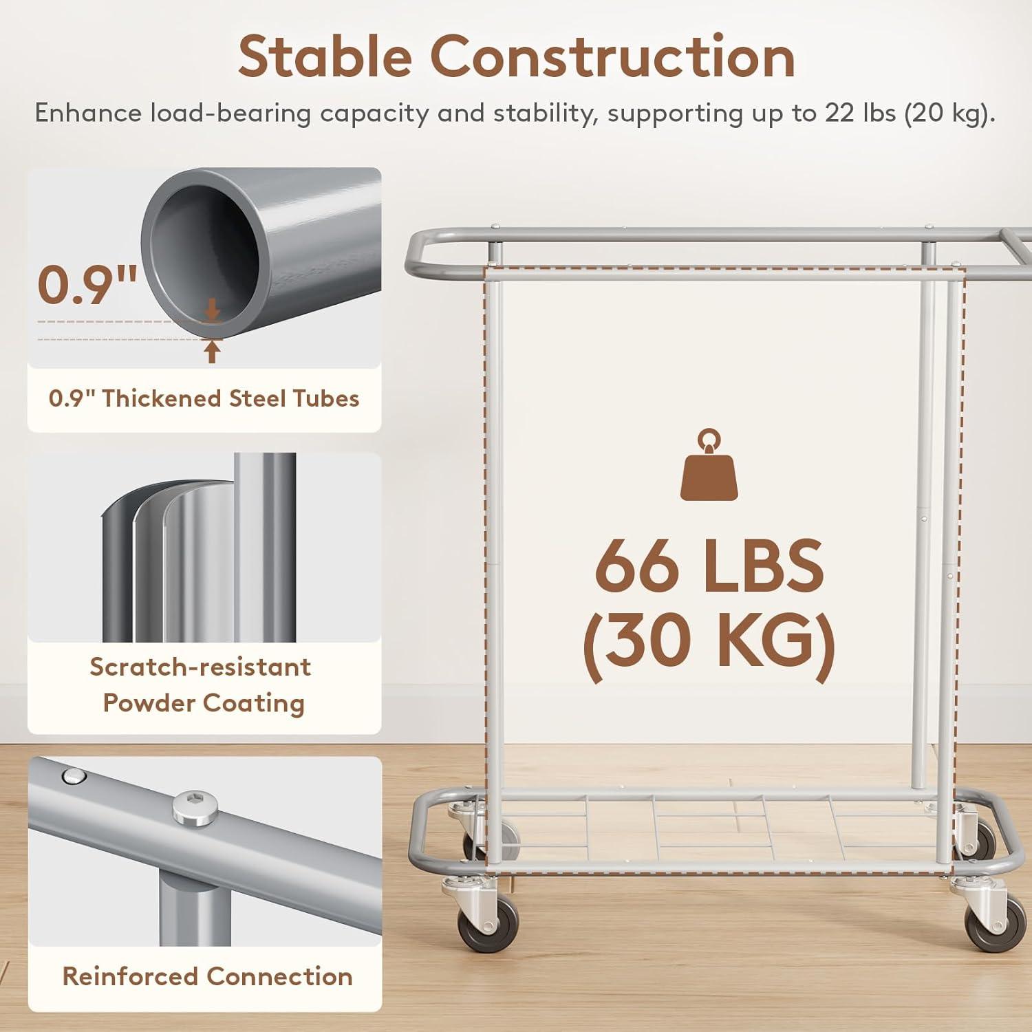 Lifewit 150L Large Laundry Basket with Wheels, Tall 2 Section Laundry Hamper Organizer, Rolling Laundry Cart with Steel Frame & Removable Bag for Luandry Room Bathroom Bedroom, White(White)