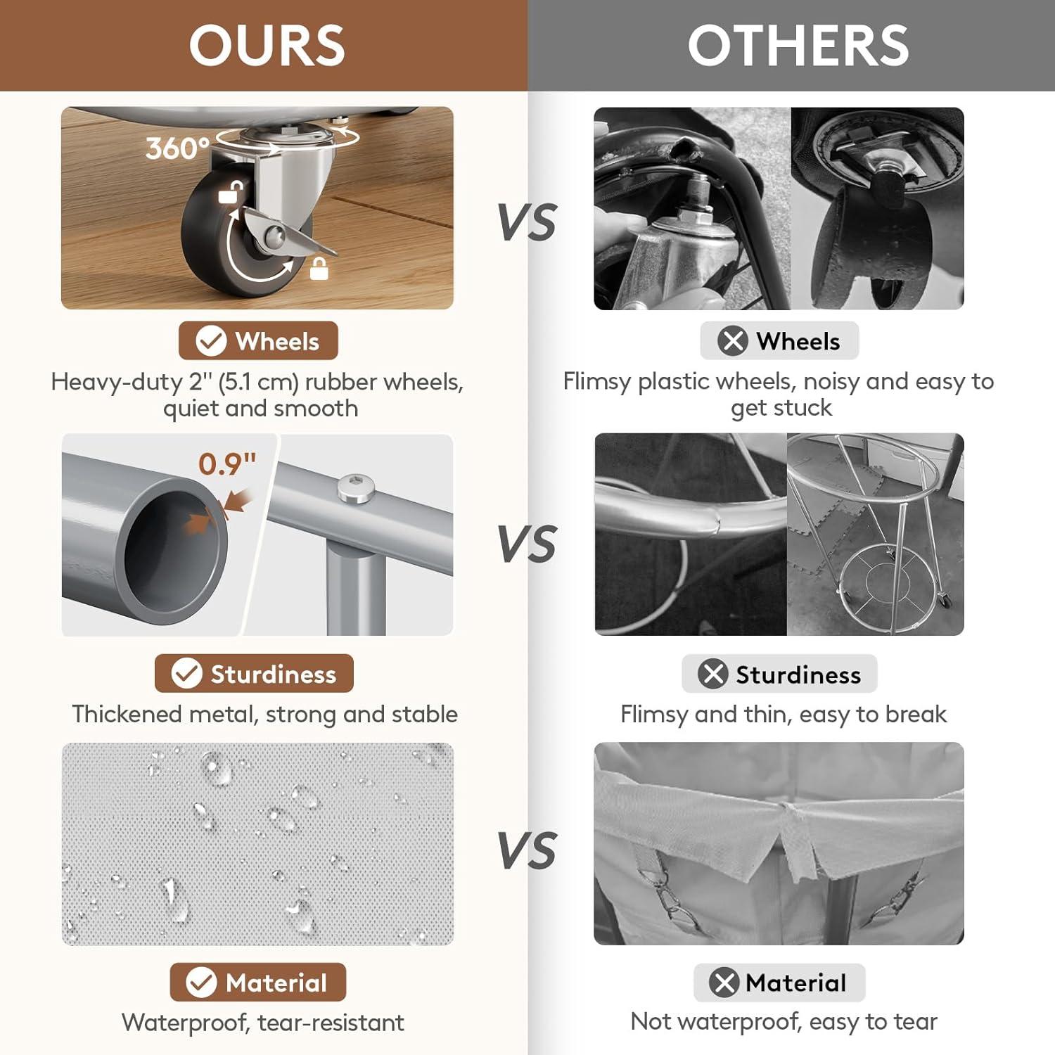 Easy to Move: Four 2-inch (5.1 cm) rubbe wheels and a side handle let you glide it anywhere—no bending. Built-in brakes lock for safety. Glide it from room to room to quickly tidy and store your items. Makes laundry day a breeze