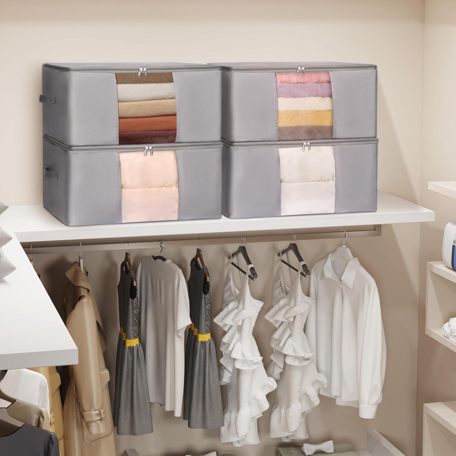 Lifewit 90L 4 Pack Under Bed Storage Containers, Large Capacity Blanket Storage Bags with Reinforced Handle, Organization and Storage for Comforters, Sheets, Clothes, Bedroom, College Dorm, Grey(Black)