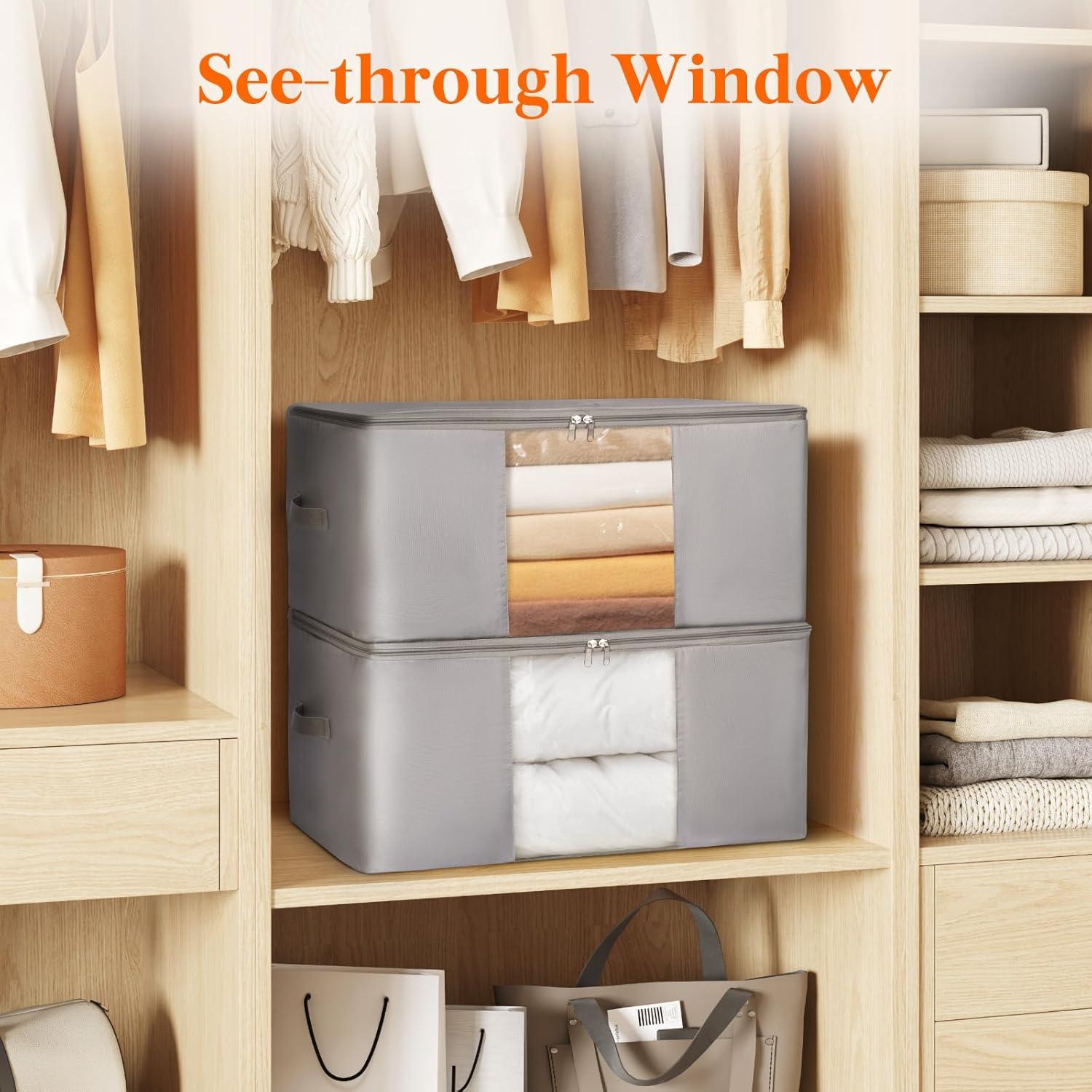 Lifewit Clothes Storage Bins with Metal Frame, Stackable Storage Box, Foldable Clothing Storage Bins with Lids, 40L Storage Bags Fabric Box Organizer with Clear Window& Zippers& Sturdy Handles 4 Pack(12)