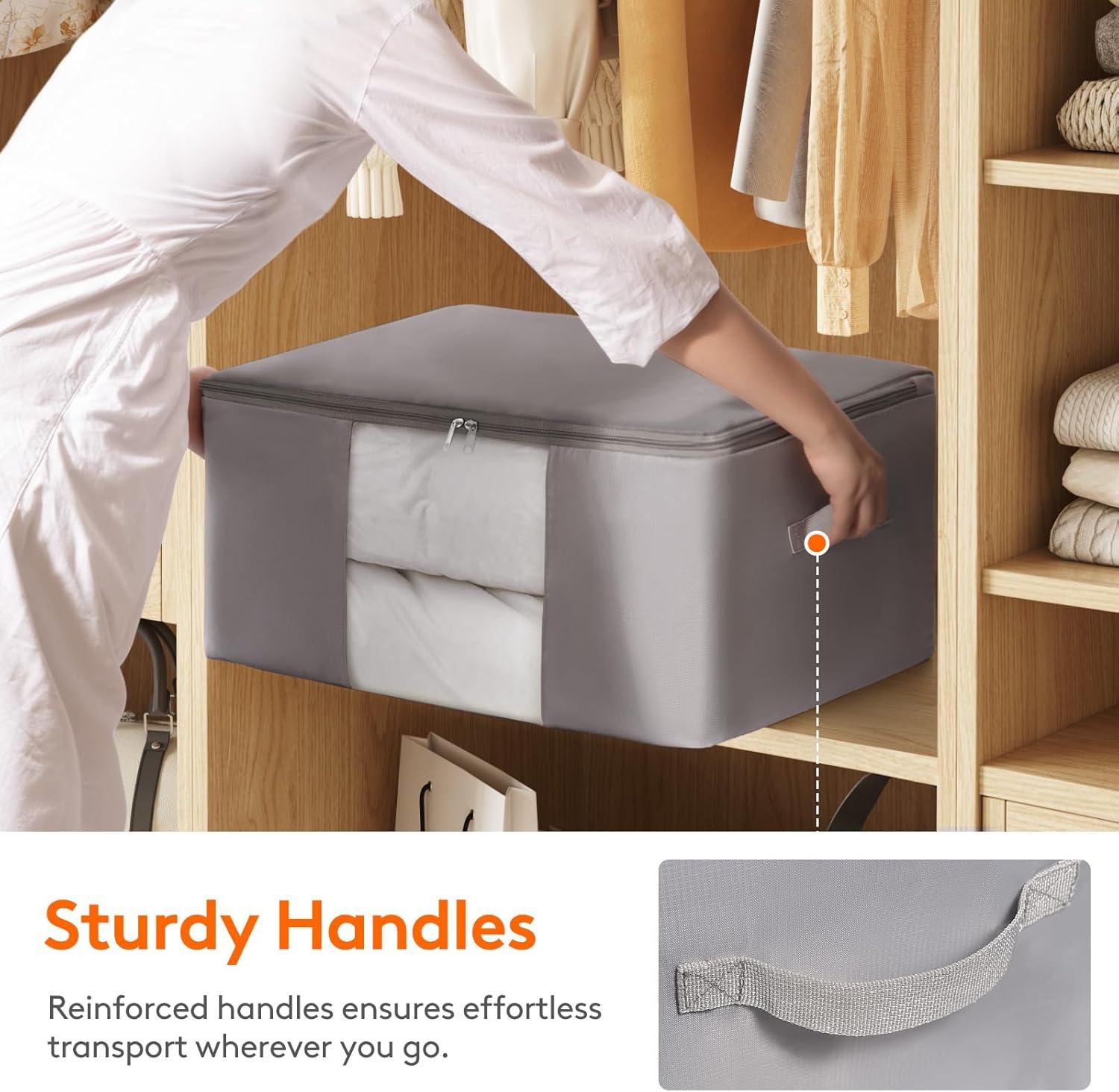Sturdy Handles: The handles are reinforced, ensuring they can carry heavy items without damage when moving or loading. These reinforced handles of the storage bags for bedding make it easy to transport your items
