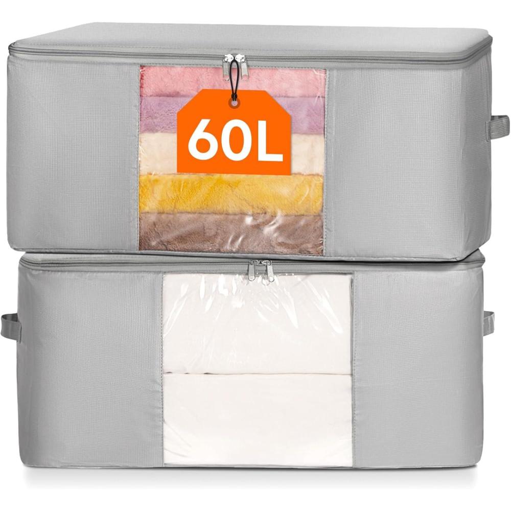 Lifewit 2 Pack Comforter Storage Bags, Folable Blanket Storage, Fabric Clothes Organizer Storage Containers with Zippers for King/Queen Comforters, Pillows, Blankets, Bedding, Quilt, Duvet, 60L(2)