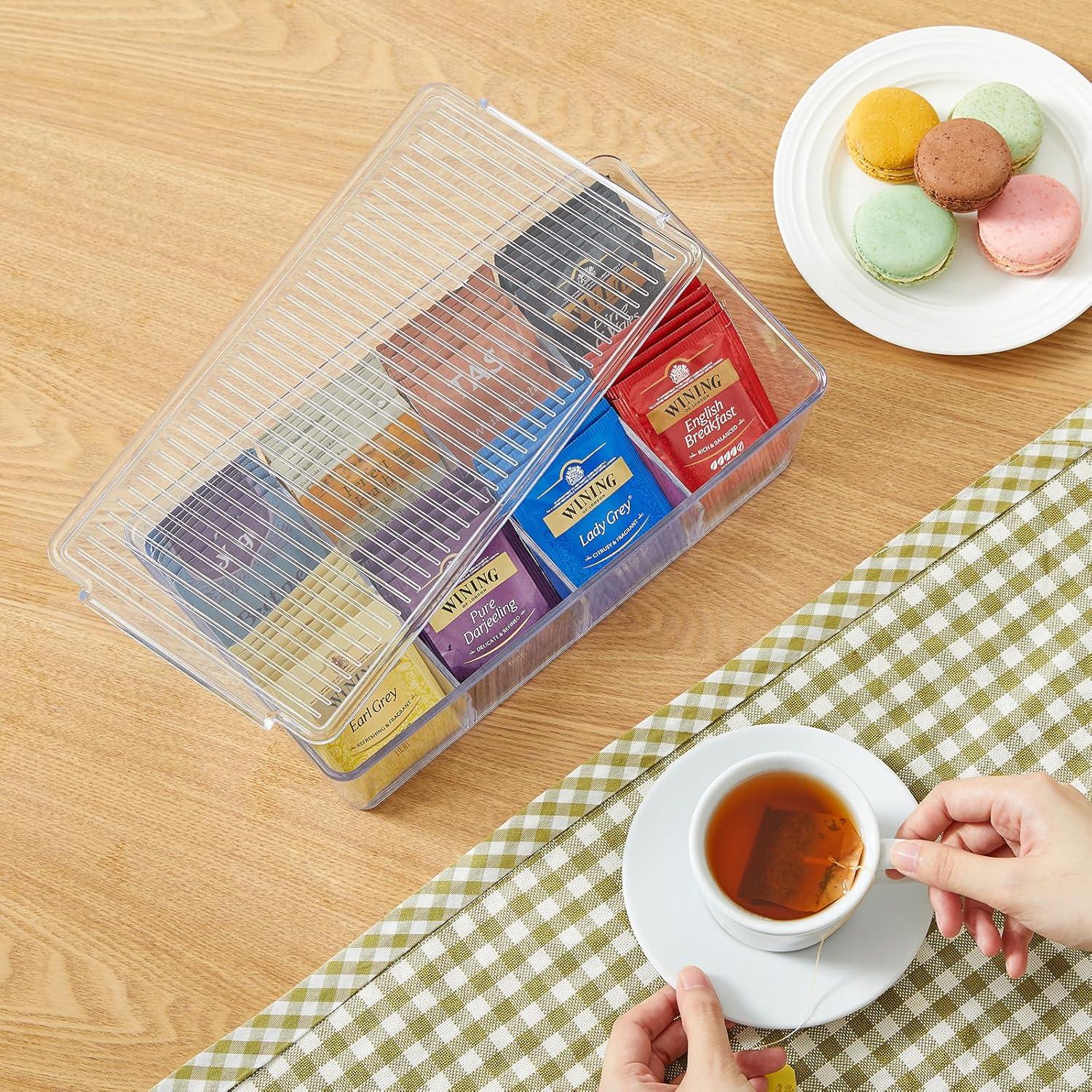 High Quality Material: The tea storage is made of long-lasting high-quality clear shatter-resistant material that allows easy viewing of what's inside, making it easy to find your items. Please clean these bins by hand with mild soap and warm water and do not put in the dishwasher.