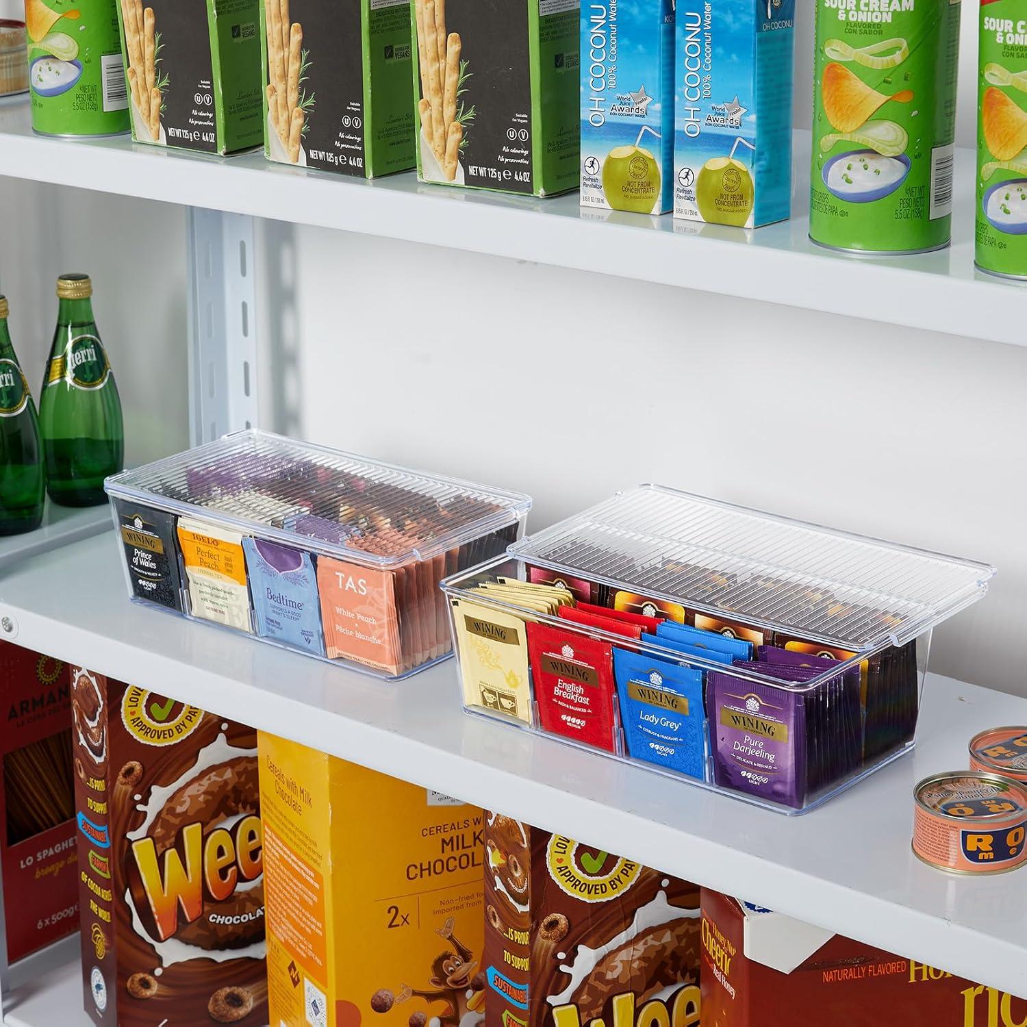 Stackable Design: With its practical stackable design, this tea bag storage is made of sturdy and high-quality materials. With good sustainability, you can place it side by side or stack it, which helps to maximize the use of space. Dimensions are: 11.5 x 6.1 x 3.7 inches (lid included).