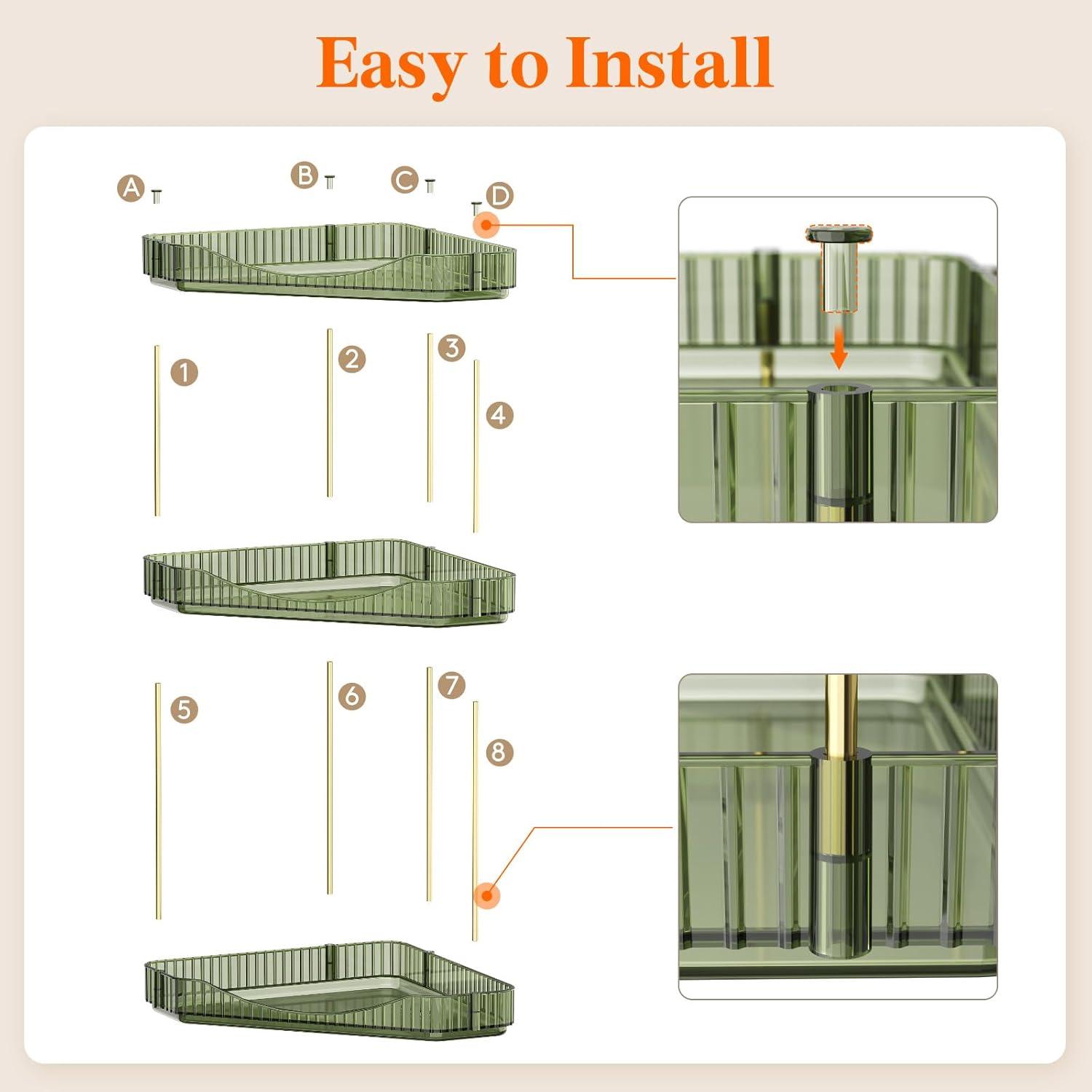Easy to Install and Sturdy: The bathroom organizer countertop is reinforced with metal brackets on each side, ensuring a more stable and solid structure; no need for screws or drilling, just insert the metal poles into trays, and it's good to go.