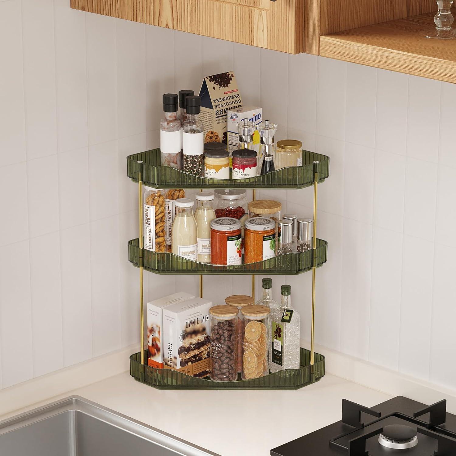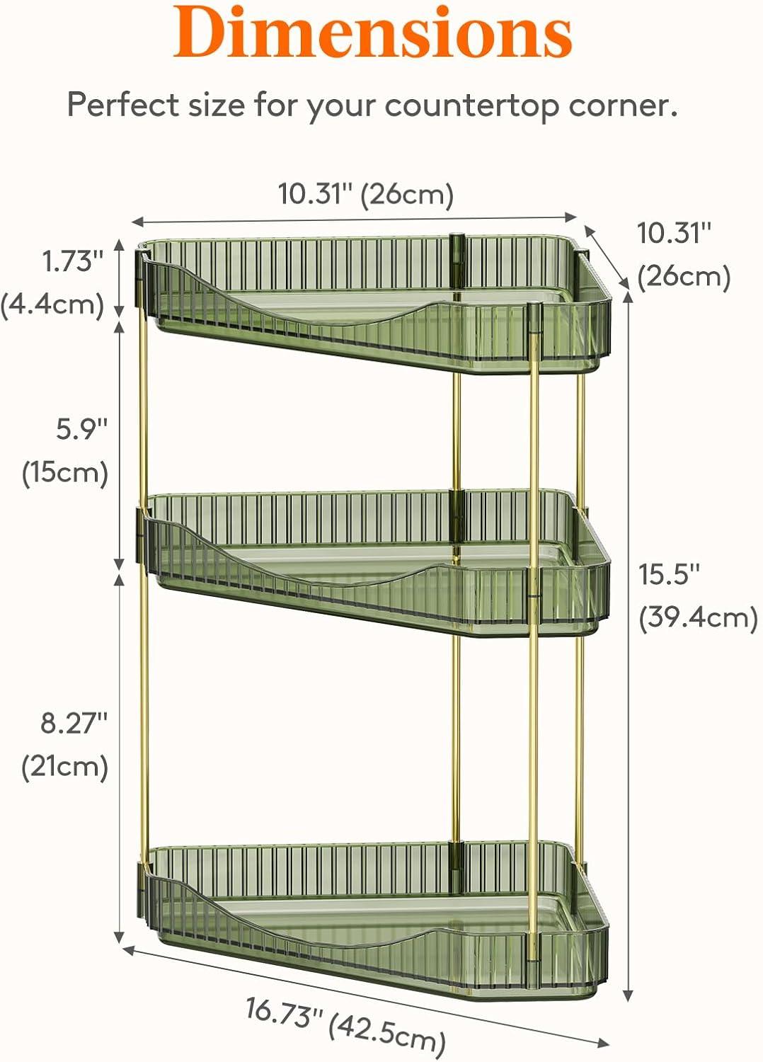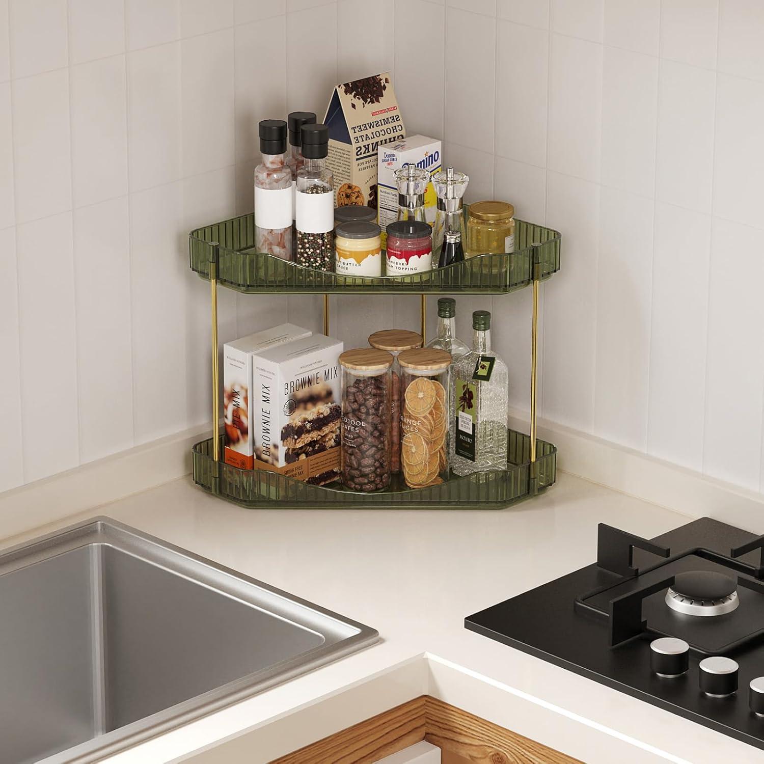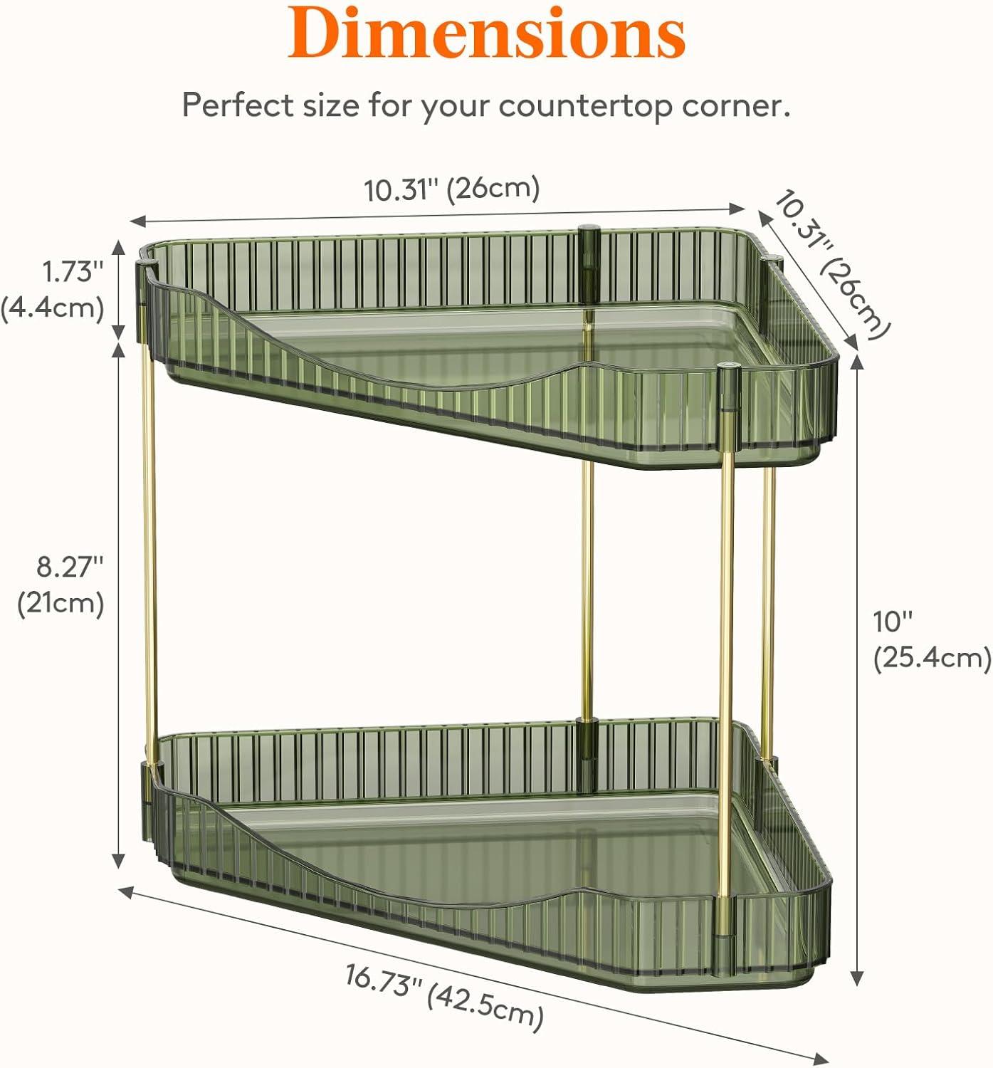 imageLifewit 2Tier Corner Bathroom Counter Organizer Plastic Makeup Skincare Organizers Storage Countertop Sink Vanity Trays Perfume Cosmetic Shelf in Bedroom Dresser Kitchen ClearGreen