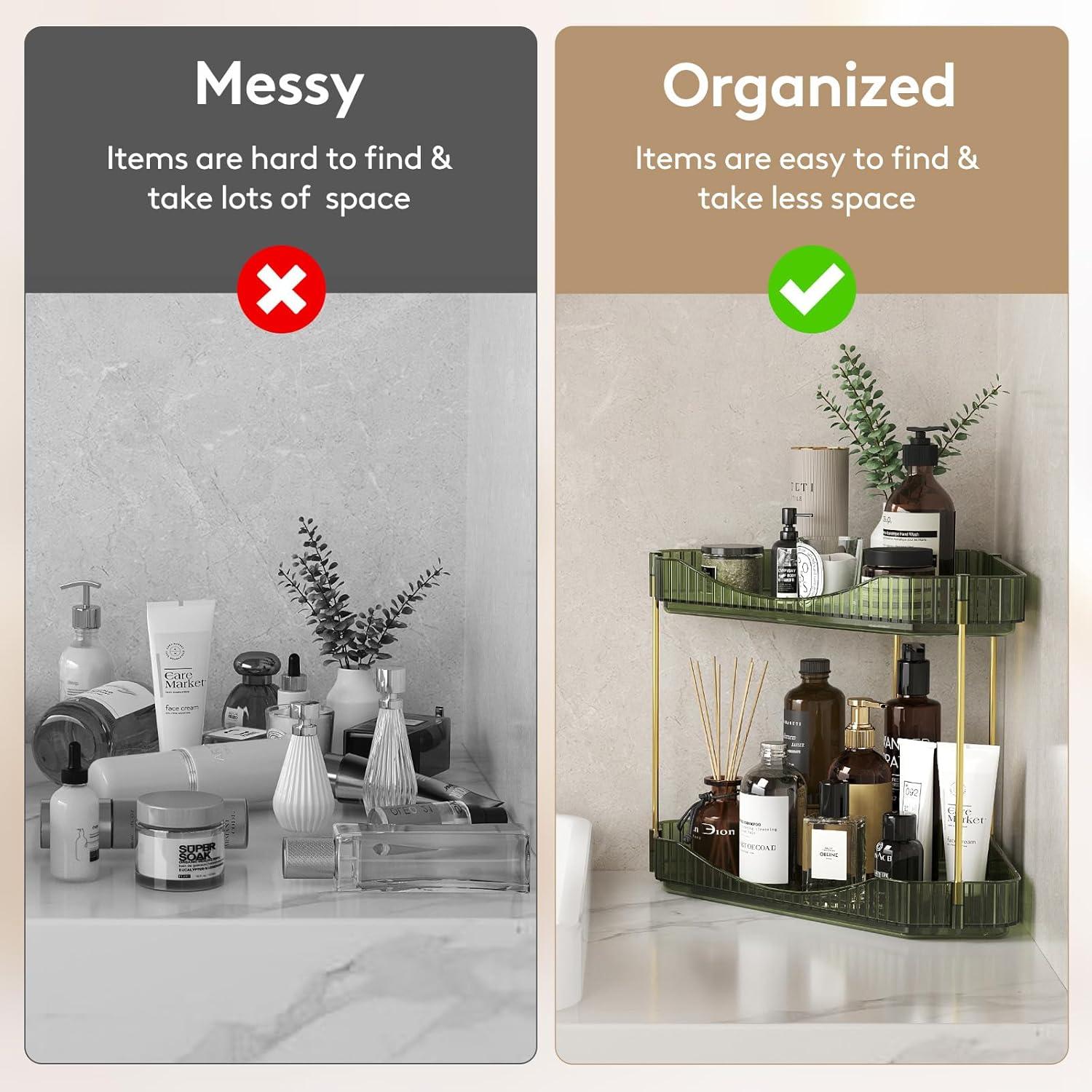 Lifewit 2-Tier Corner Bathroom Counter Organizer, Plastic Makeup Skincare Organizers Storage Countertop, Sink Vanity Trays Perfume, Cosmetic Shelf in Bedroom, Dresser, Kitchen (Clear)(Green)