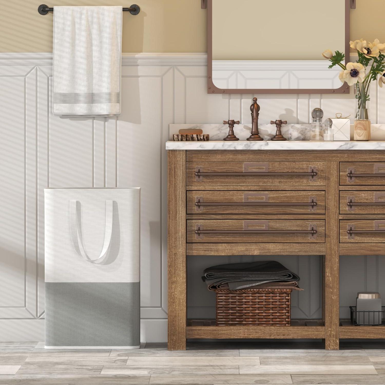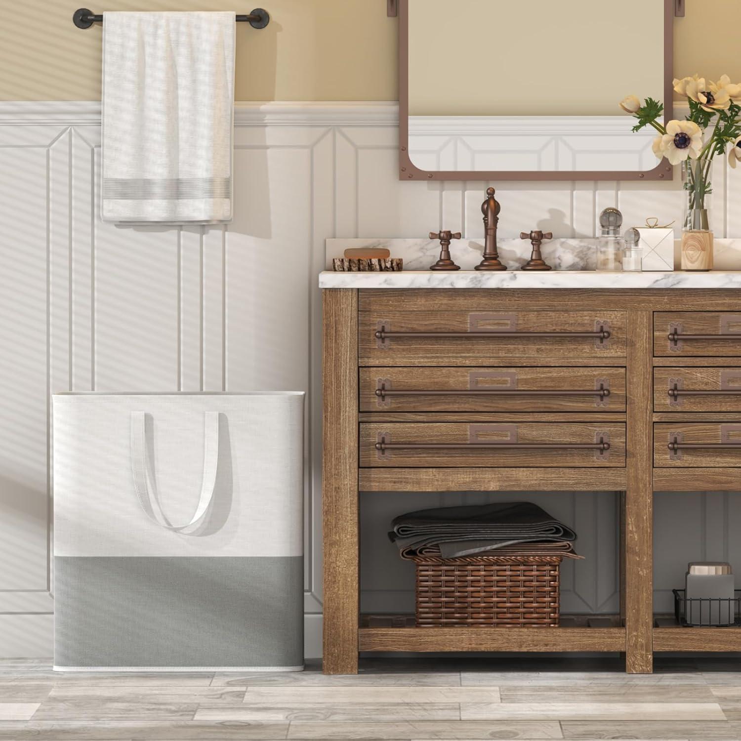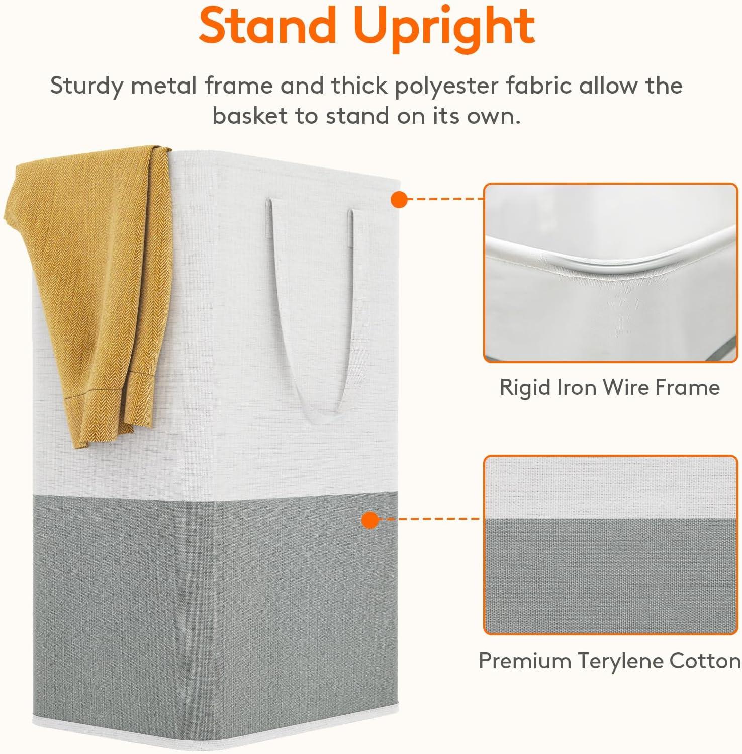 Stand Upright: Our hampers for laundry are thoughtfully crafted with reinforced top edges, expertly sewn using strong wire and resilient polyester fabric. This guarantees that the basket effortlessly stands upright, providing both stability and ease of use. Whether filled with laundry or empty, our basket maintains its sturdy structure, remaining upright for extended periods of time.