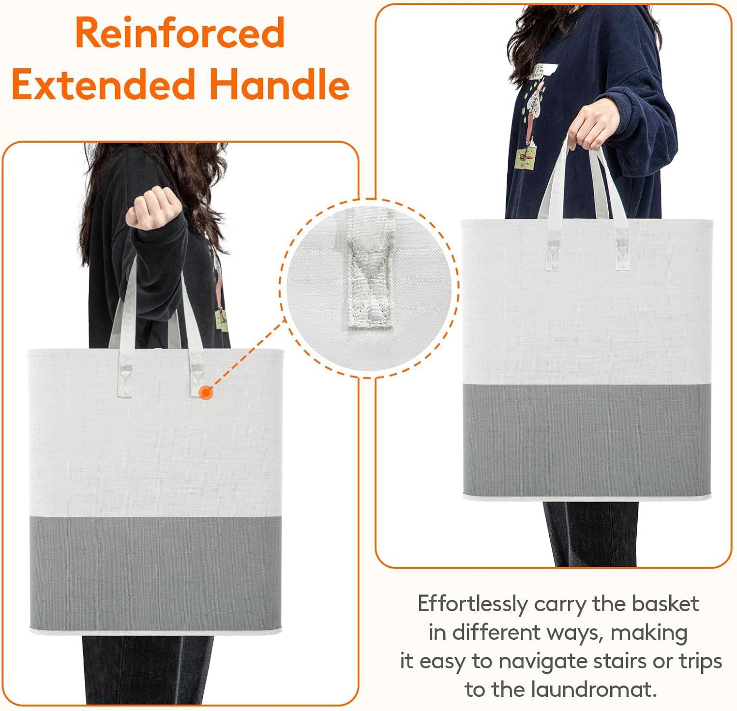 Reinforced Extended Handle: Equipped with reinforced long handles for effortless carrying, the two handles are designed for seamless transportation, allowing you to carry the dirty clothes hamper with ease in different ways. Whether you need to navigate stairs or make regular trips to the laundromat, our basket’s handles make the journey smooth and hassle-free. For utmost strength, the handles are reinforced with strong stitching, ensuring exceptional durability and reliable performance.