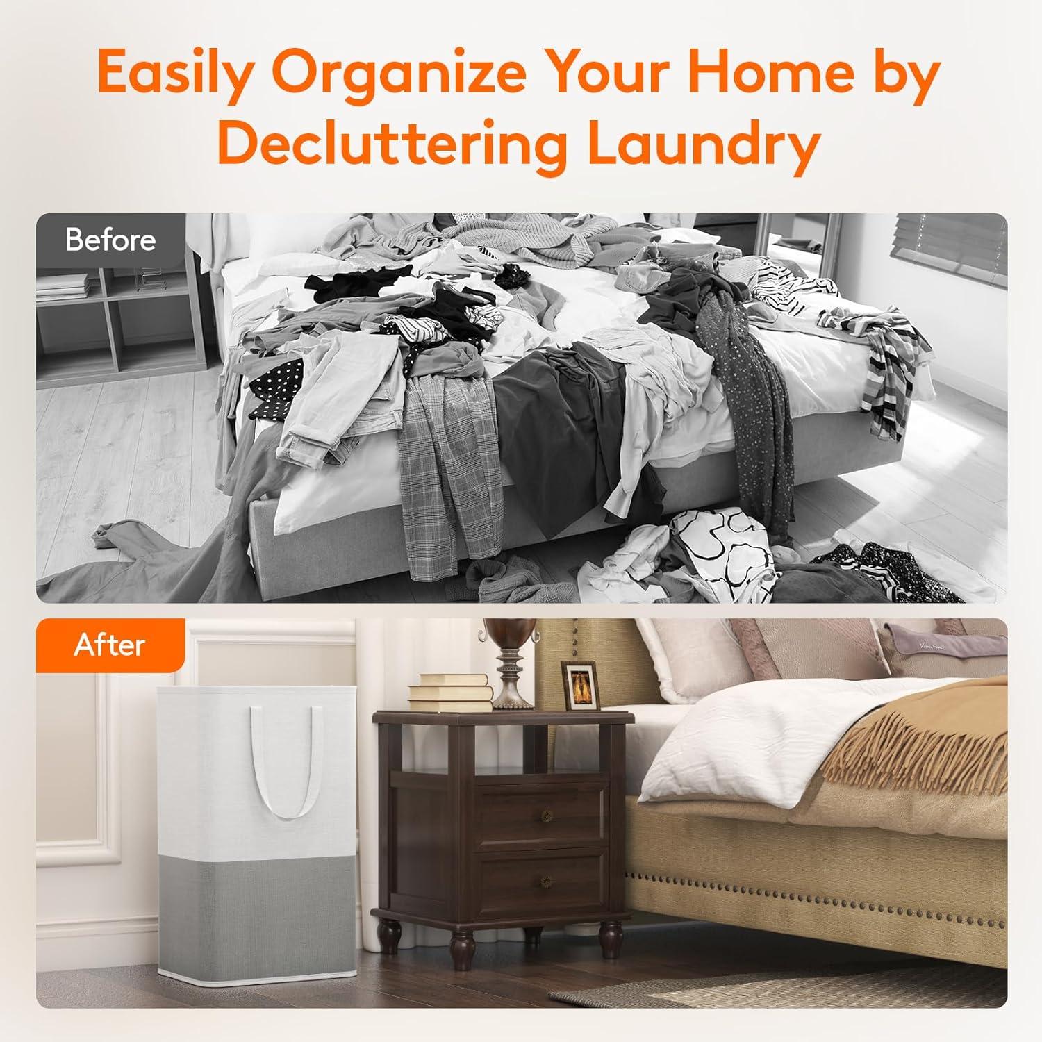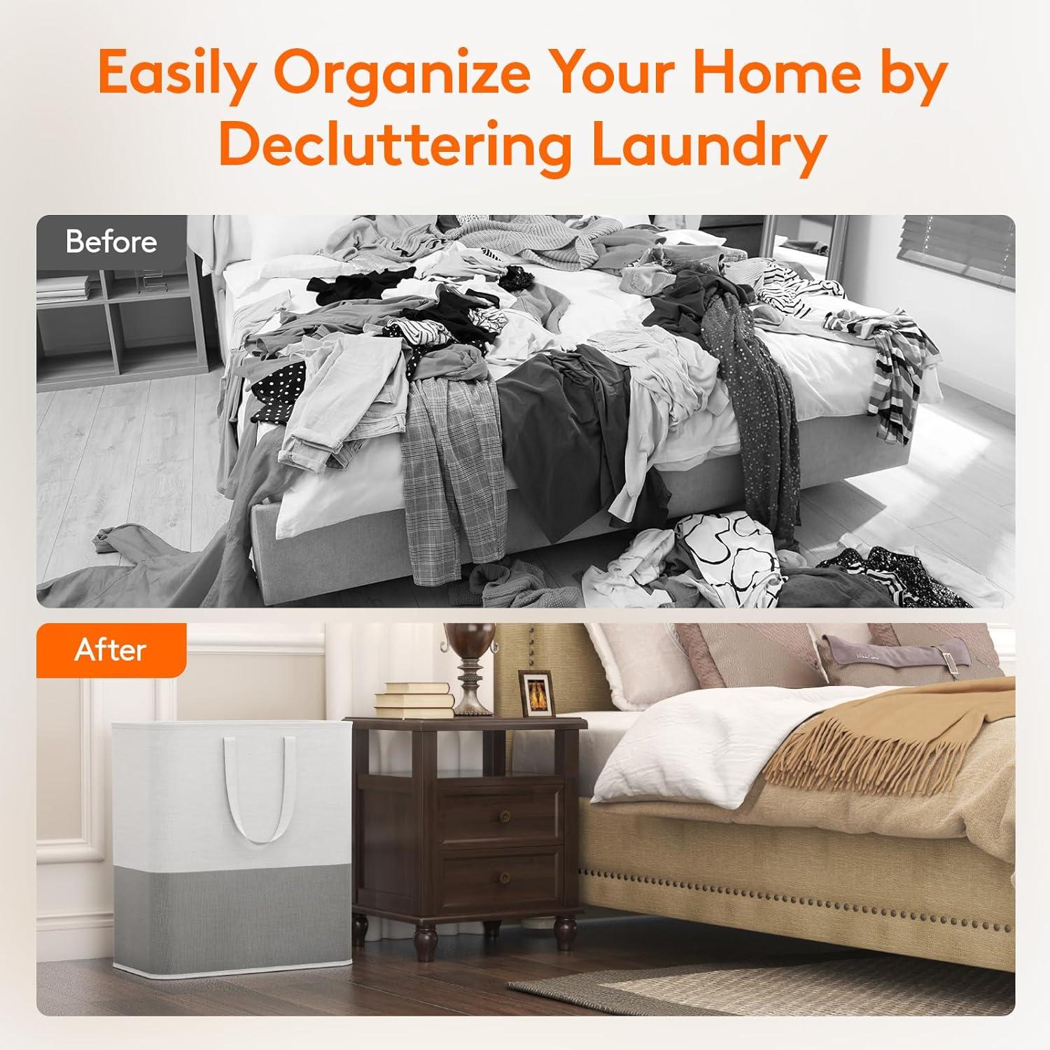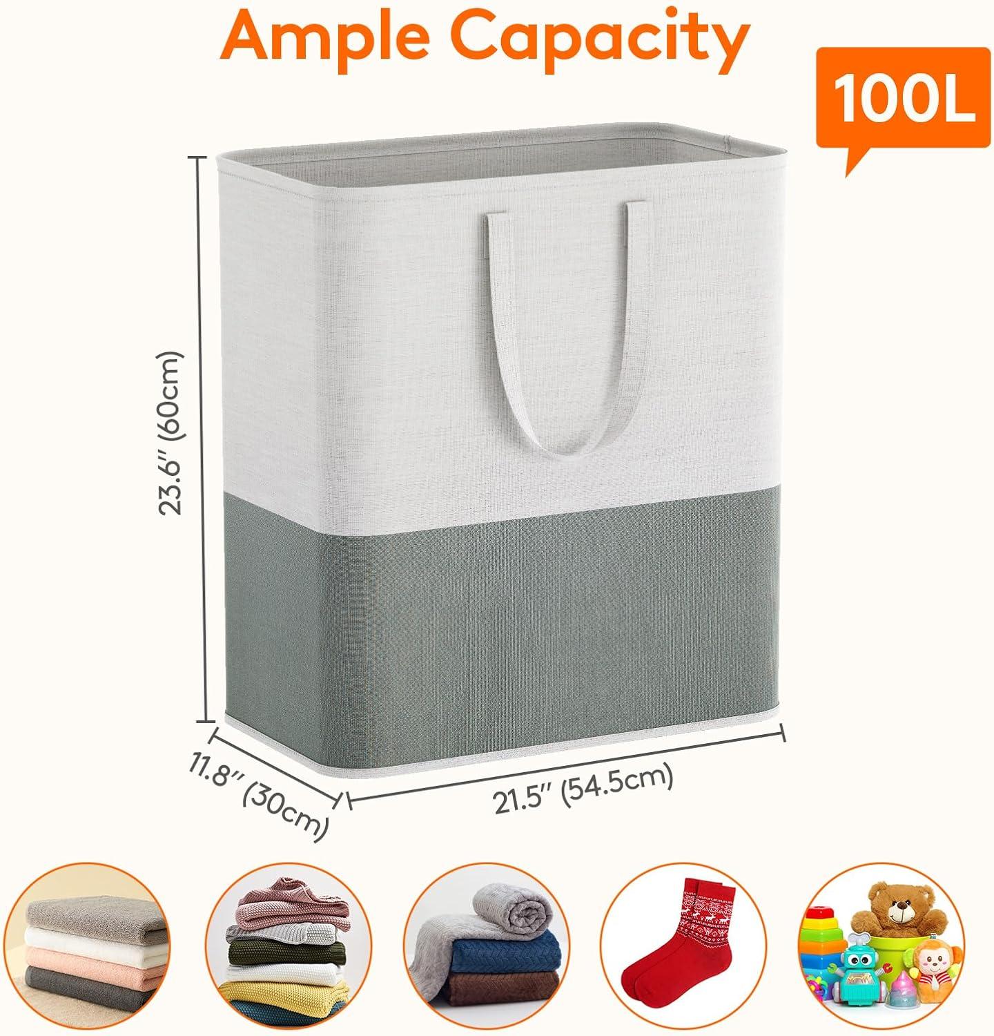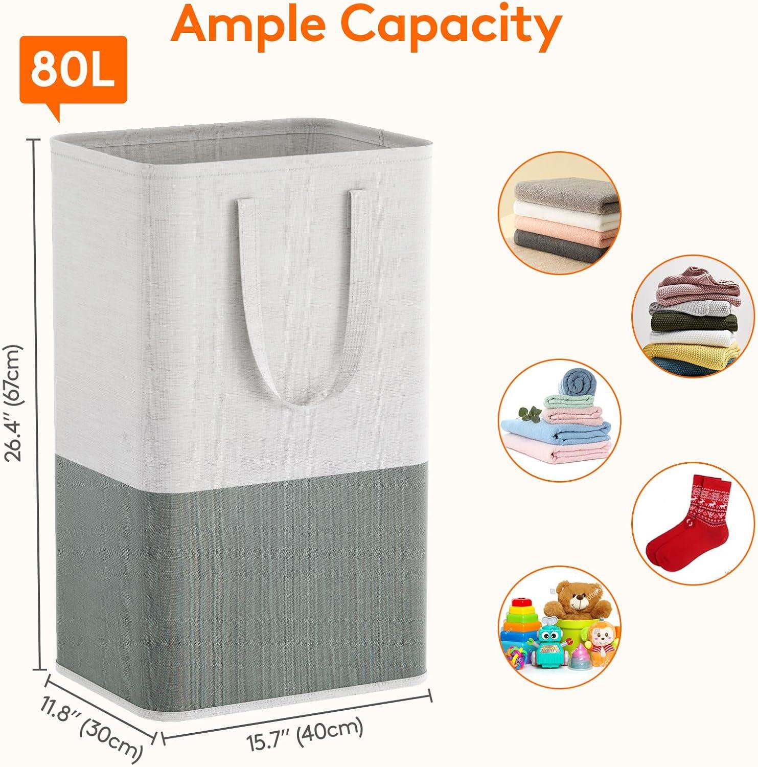 Ample Capacity: Each laundry basket is generously sized at 17.3″ (44cm) x 12.2″ (31cm) x 23.6″ (60cm) and boasts an impressive capacity of 80L. With two laundry bins included in the set, you’ll have plenty of room to effortlessly store and sort your laundry, transforming your living space into a clutter-free and well-organized haven. Elevate your laundry routine with our exceptional laundry basket set that offers unmatched storage capacity.