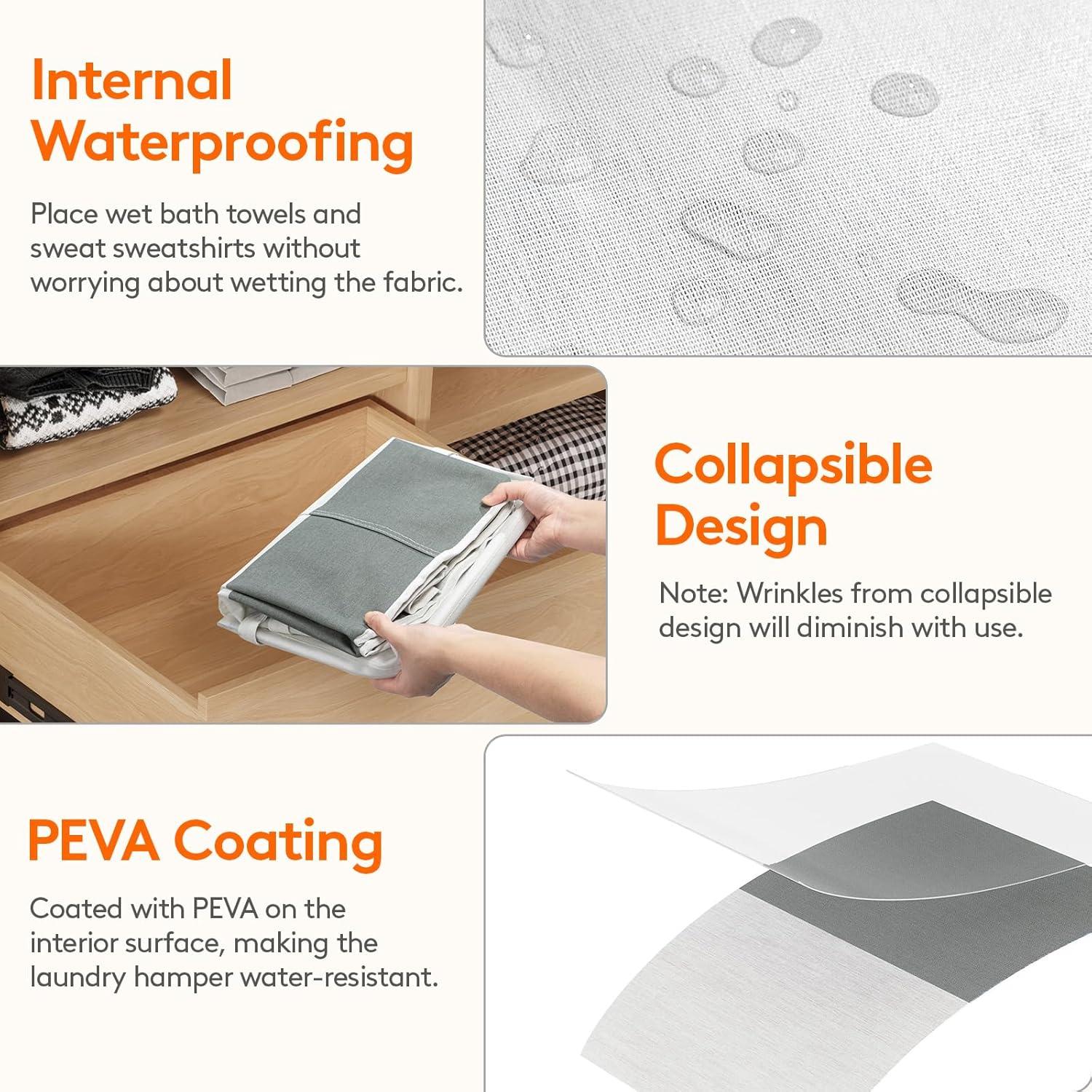Waterproof Material: Crafted from premium polyester material. With its waterproof coating, this laundry bin safeguards your belongings from moisture, ensuring they remain dry and well-protected. Furthermore, the leak-proof cotton lining provides an additional layer of protection, preventing any liquid from seeping through when wet items are placed inside the basket.
