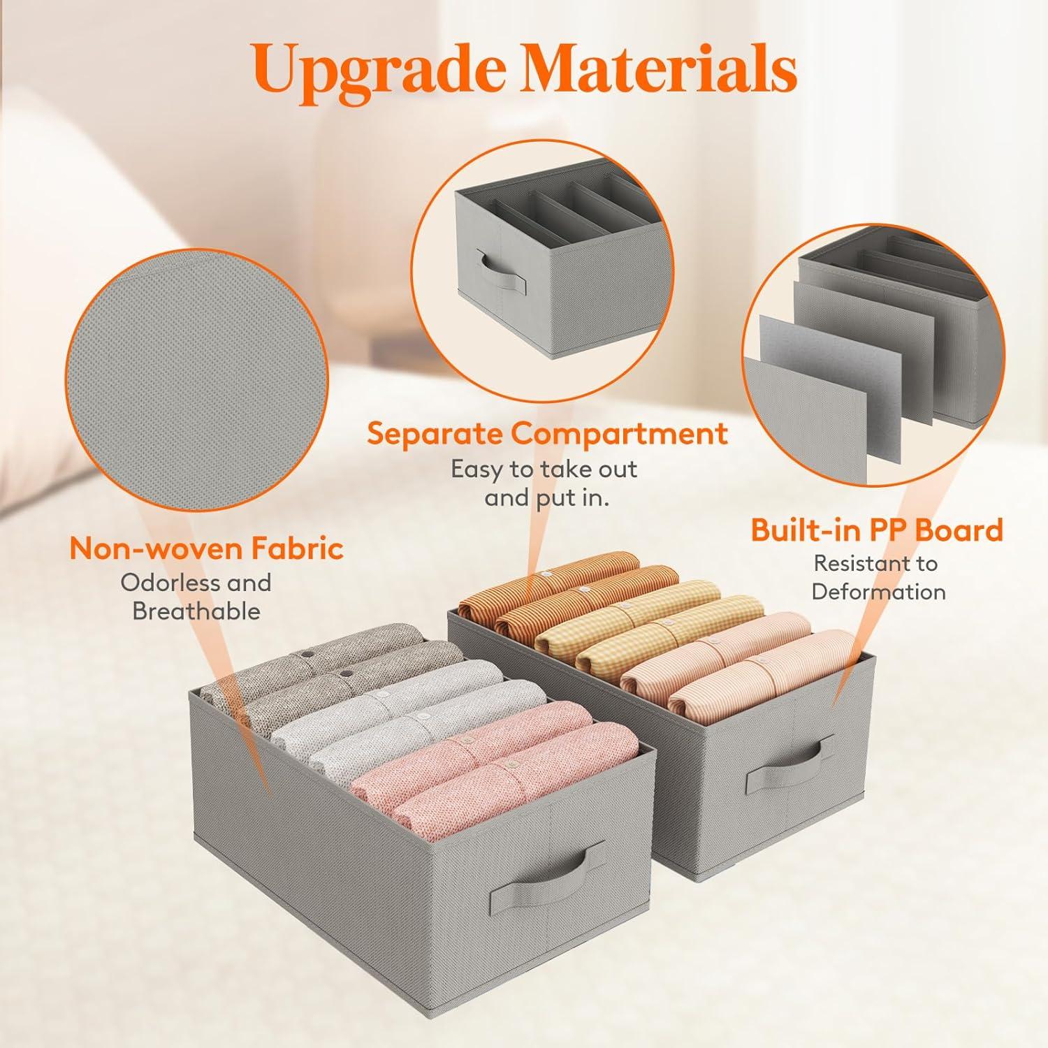 Lifewit 3 Pack Clothes Organizer, 6 Grids Closet Jean Storage Bins with Handles and Support Boards, Foldable Drawer Organizer for Sweater, Pants, T-shirt, Dress, Grey, Size 16.5”x10.6”x7.1”(4)