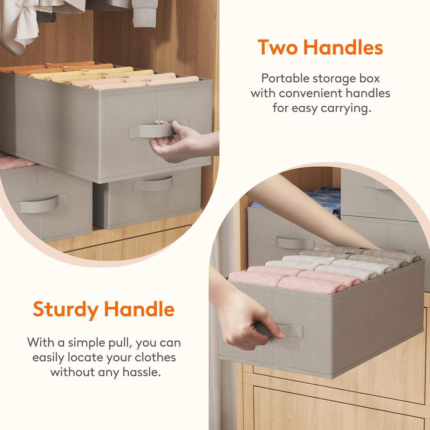 Lifewit 3 Pack Clothes Organizer, 6 Grids Closet Jean Storage Bins with Handles and Support Boards, Foldable Drawer Organizer for Sweater, Pants, T-shirt, Dress, Grey, Size 16.5”x10.6”x7.1”(6)