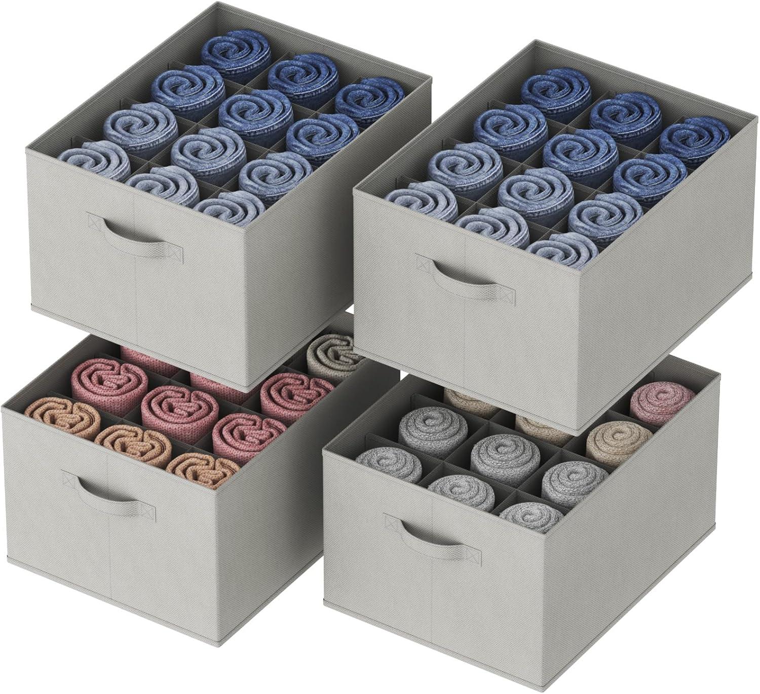 Lifewit 3 Pack Clothes Organizer, 6 Grids Closet Jean Storage Bins with Handles and Support Boards, Foldable Drawer Organizer for Sweater, Pants, T-shirt, Dress, Grey, Size 16.5''x10.6''x7.1''(4)