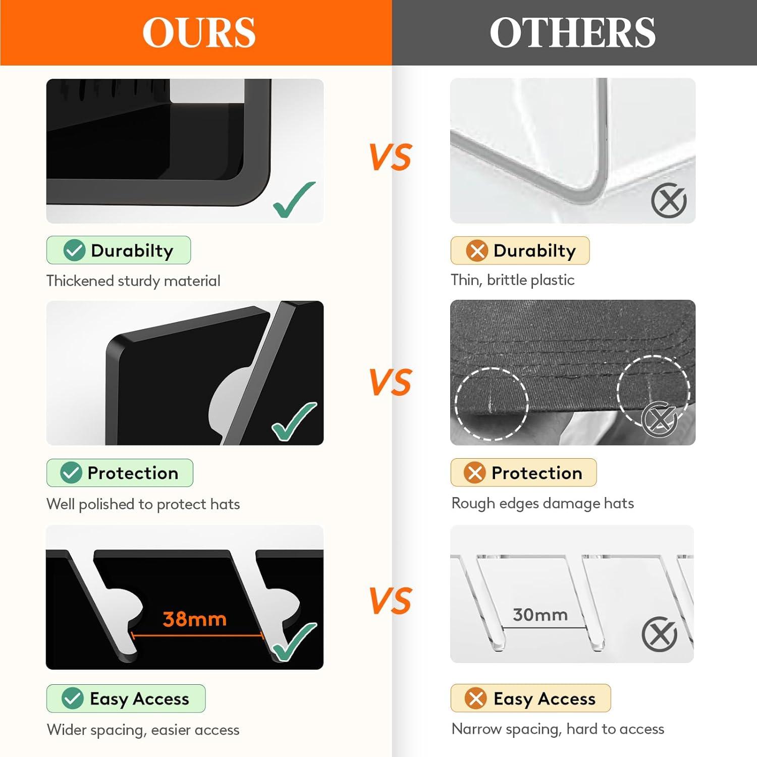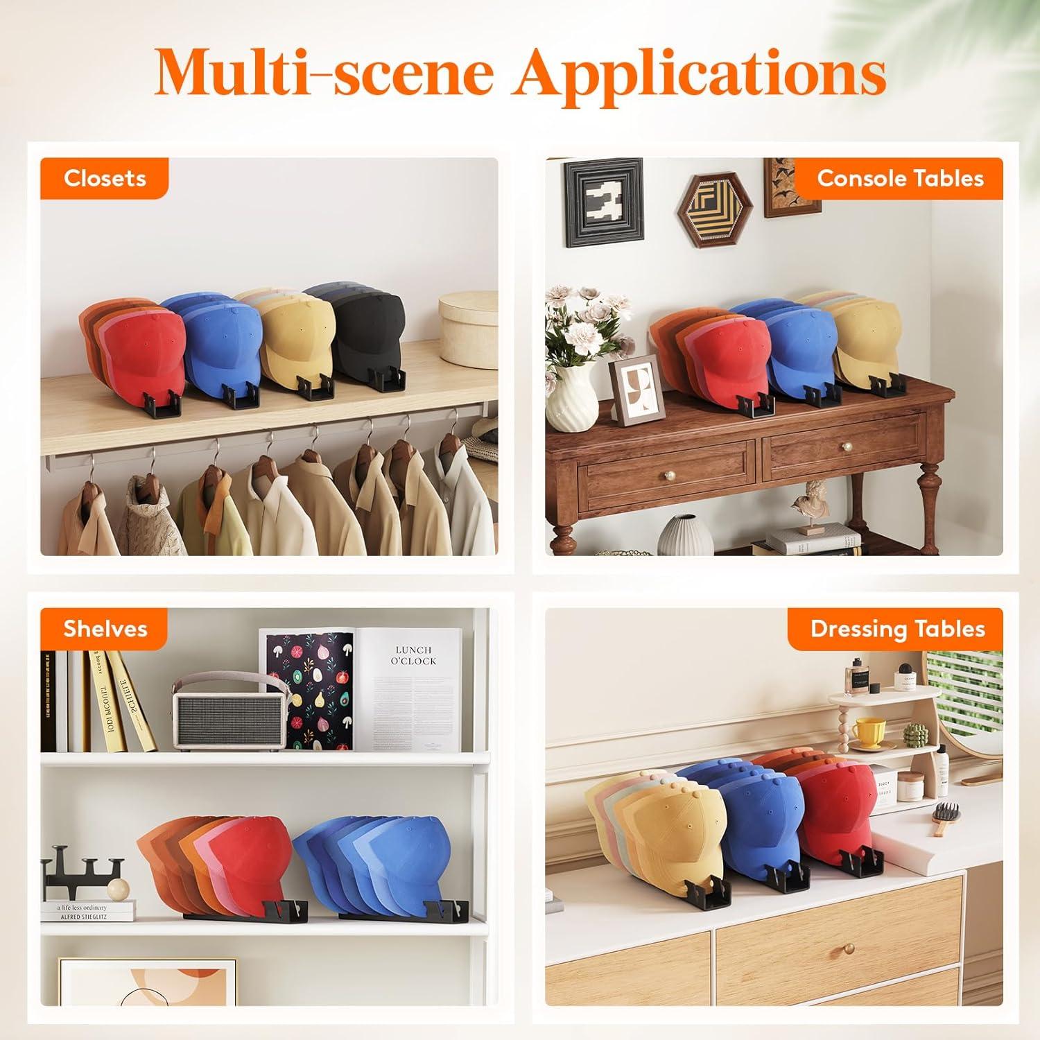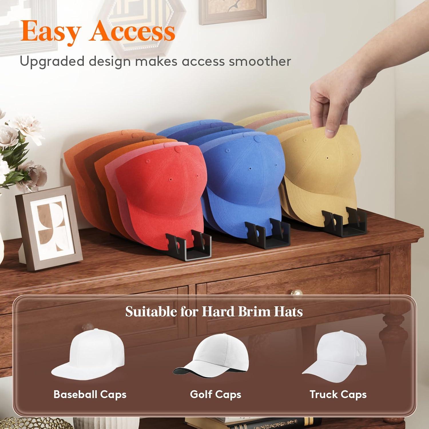 Space-saving Caps Storage: Transform cluttered spaces into organized havens; each hat organizer holds up to 7 baseball caps, helping you efficiently store and display your favorite collections; perfect for closets, shelves, living rooms, bedrooms, and dressers