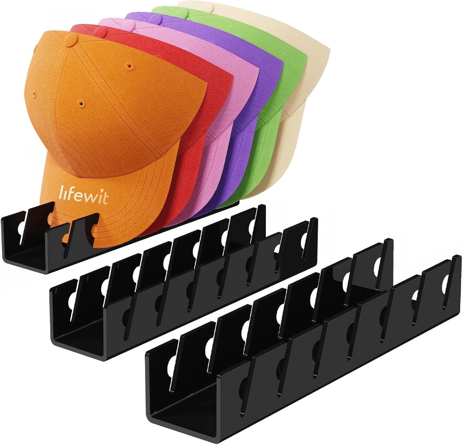 Lifewit 3 Pack Hat Organizer for Baseball Caps, Hat Storage Rack for 21 Ball Caps, Hat Stand Shelf for Trucker Hat and Golf Cap in Closet, Bedroom, Dresser, Clear(Black)