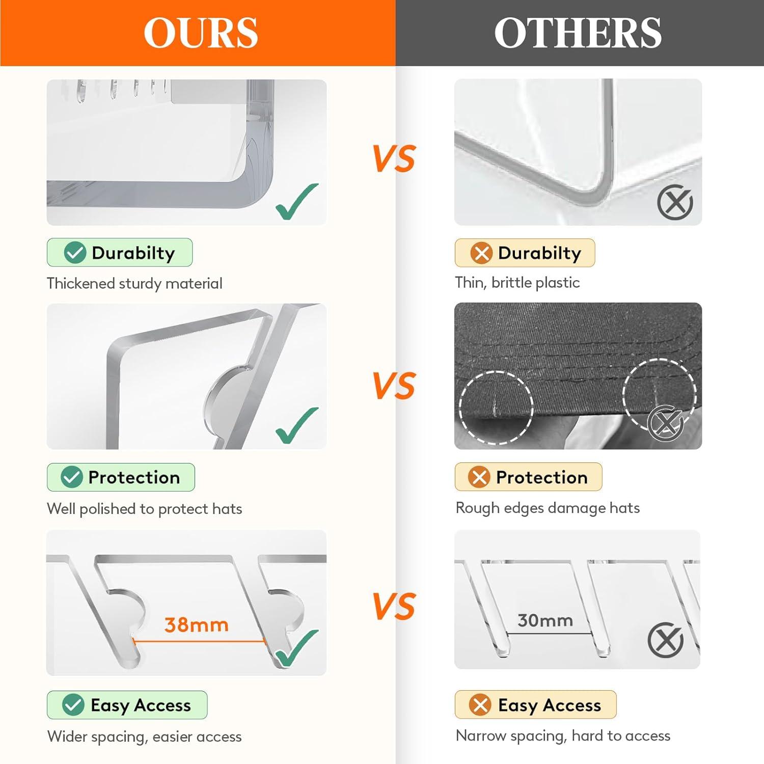 Ready to Use: Enjoy the convenience of a hassle-free setup—no assembly or drilling required; this makes the hat organizer the ideal solution for renters, preserving your walls while saving you valuable time