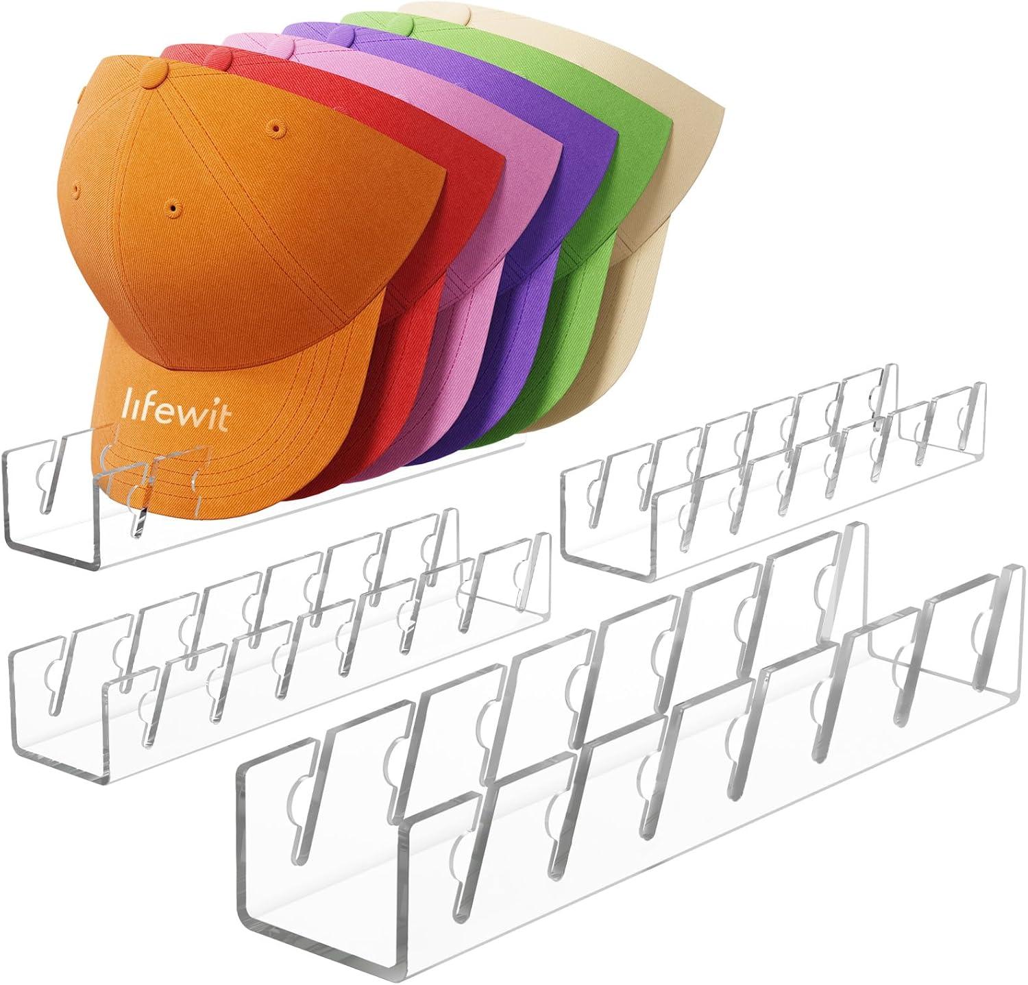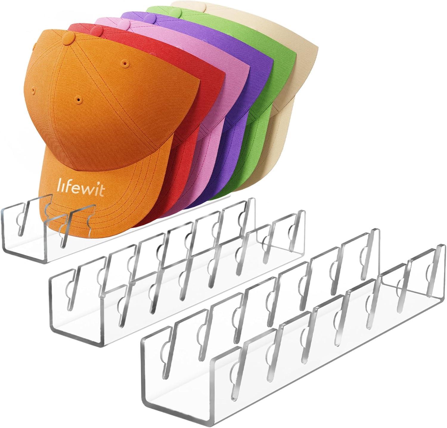 Lifewit 3 Pack Hat Organizer for Baseball Caps, Hat Storage Rack for 21 Ball Caps, Hat Stand Shelf for Trucker Hat and Golf Cap in Closet, Bedroom, Dresser, Clear(Clear)