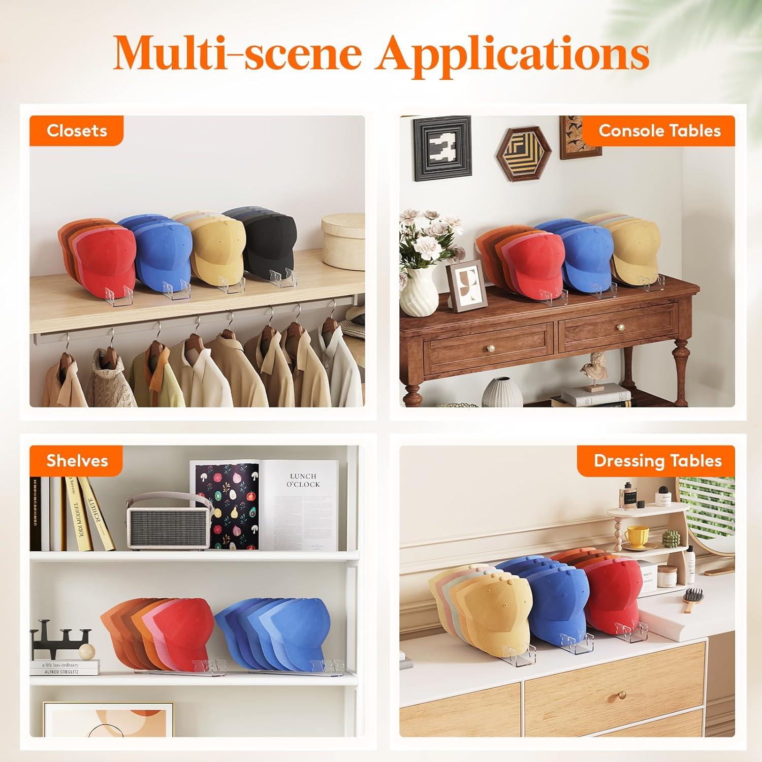 Space-saving Caps Storage: Transform cluttered spaces into organized havens; each hat organizer holds up to 7 baseball caps, helping you efficiently store and display your favorite collections; perfect for closets, shelves, living rooms, bedrooms, and dressers