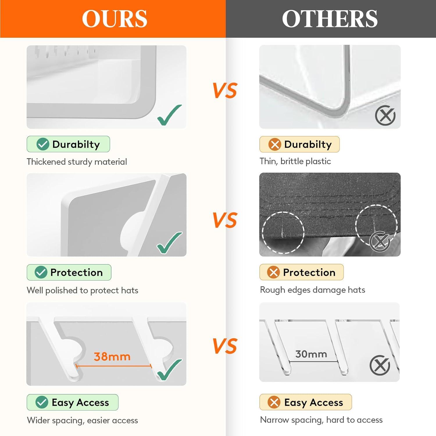 Space-saving Caps Storage: Transform cluttered spaces into organized havens; each hat organizer holds up to 7 baseball caps, helping you efficiently store and display your favorite collections; perfect for closets, shelves, living rooms, bedrooms, and dressers
